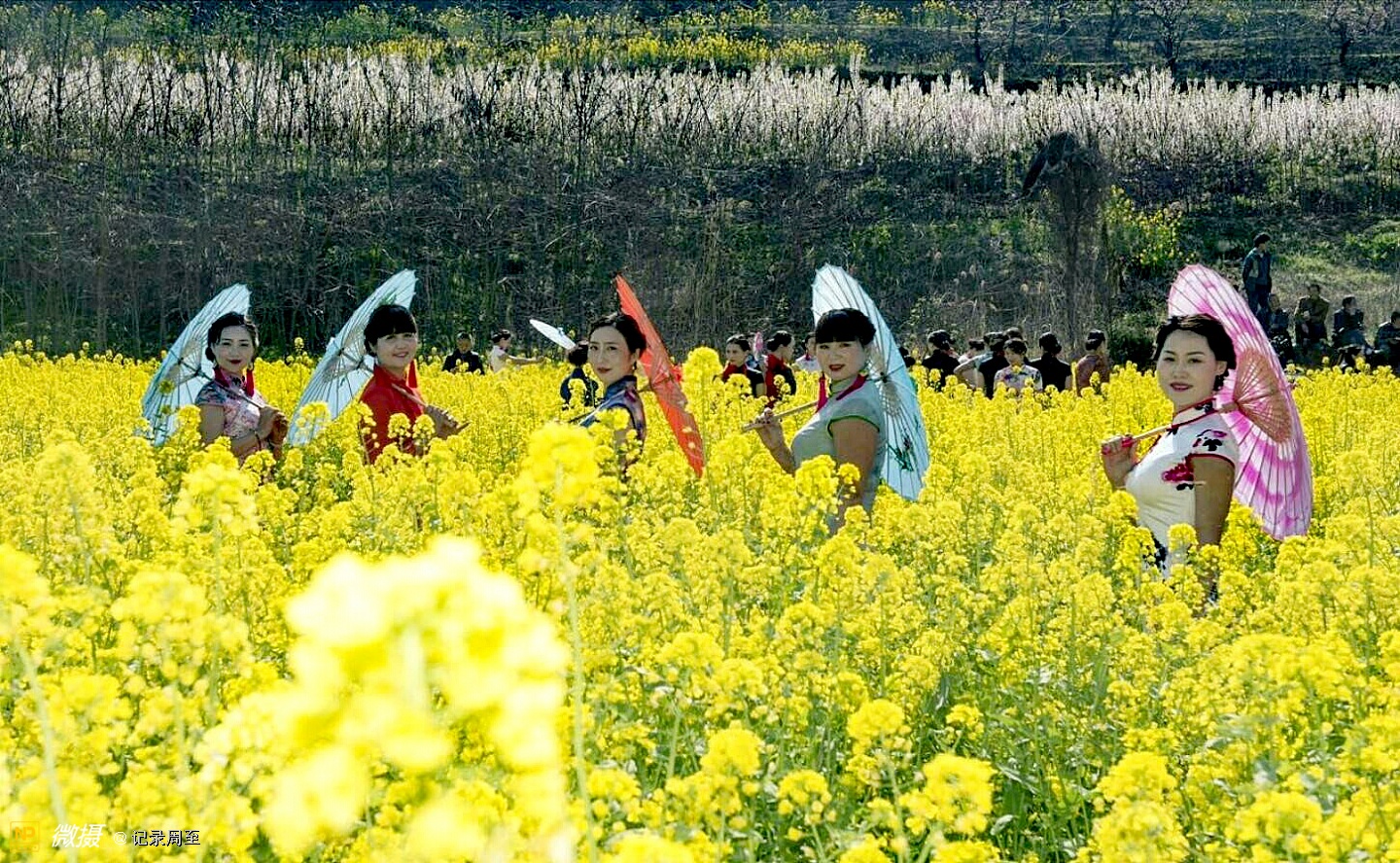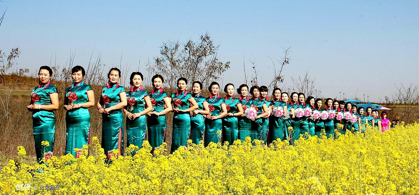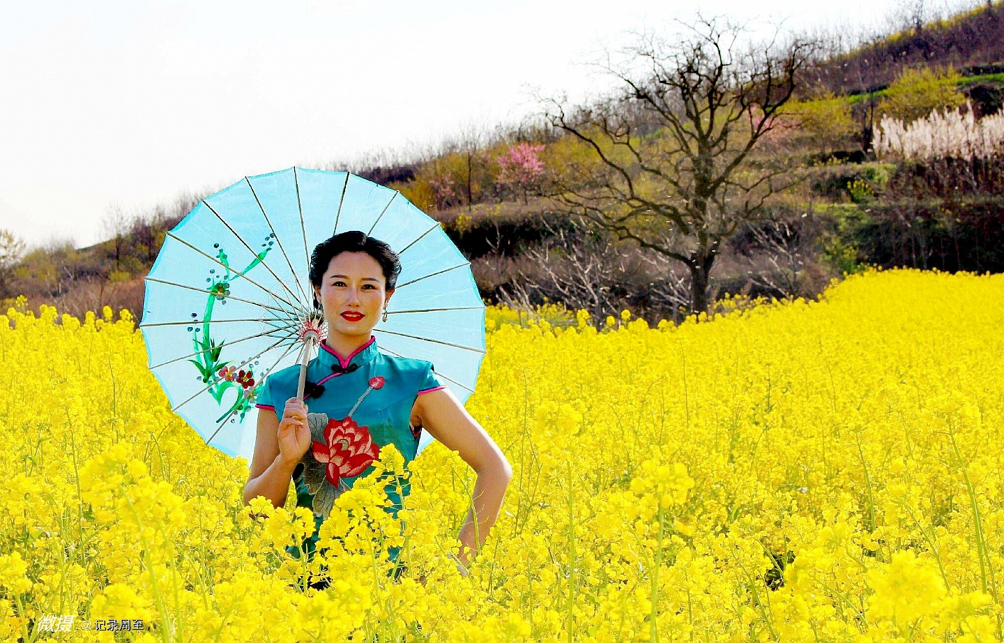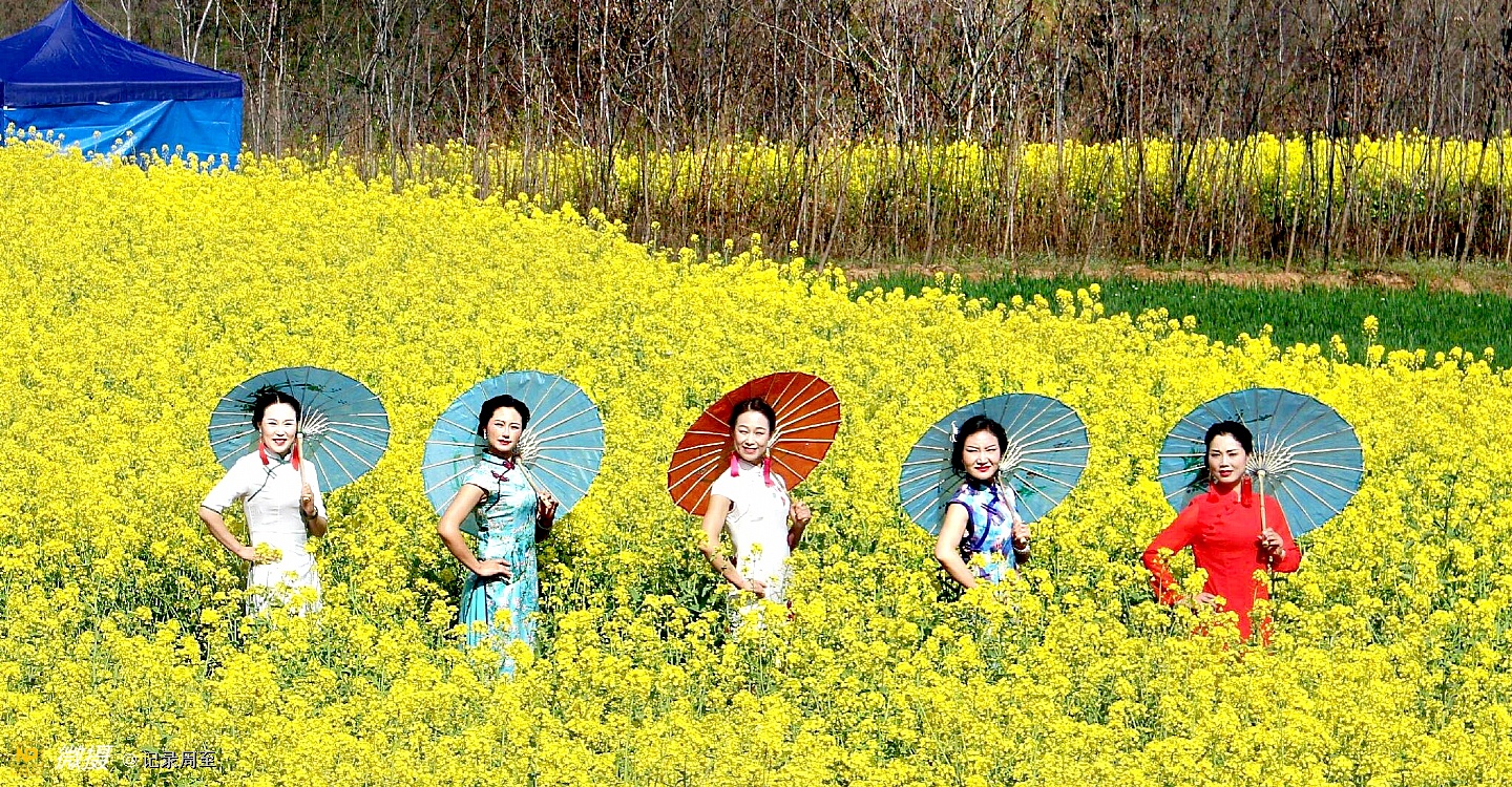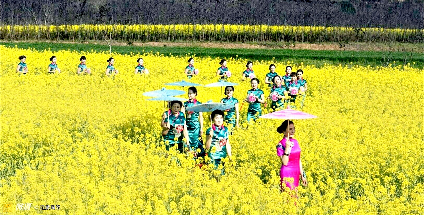 【周至油菜花海邂逅旗袍美女,约不?】周至县旗袍协会的30位佳丽,来到西南塬区油菜花海观景点——农林村,将广阔的油菜花海作为t台,她们或手撑纸伞,或手握团扇,畅游花海,与金灿灿的油菜花构成了一道靓丽的风景线。