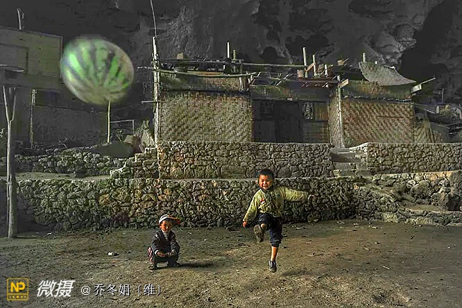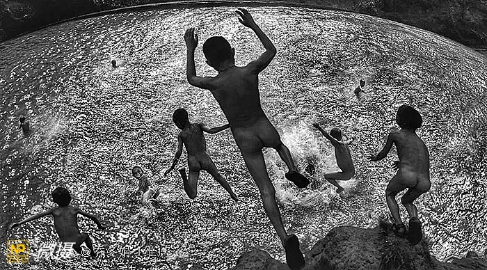 跳水:在大凉山的一条小河,男孩和女孩们都这样赤身裸体地一次又一次跳水嬉戏。站在这个土坡上拍摄了几百张跳水的照片,孩子们调皮地用捧水洒向我的相机,交流和互动的同时思考着画面的组织,现在看到的宏大场景模仿鱼眼镜头拍摄的效果是通过后期制作出来的,假如这种东西不称之为照片,不知道该叫什么了,我想叫多底片合一照片为好。
