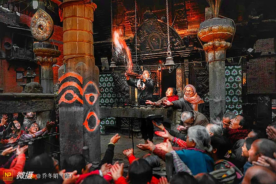 尼泊尔4:这个庙宇非常的小,在尼泊尔类似的庙宇很多很多,上午他们把水洒在柱子上,柱子反弹回来的水是各位希望承接到的圣水,信徒们都在等着这一时刻。这也是我需要的这一刻,拥挤中举起相机盲拍,焦点区域模式选择在自动,这点是提高慢拍成功率的要素之一。