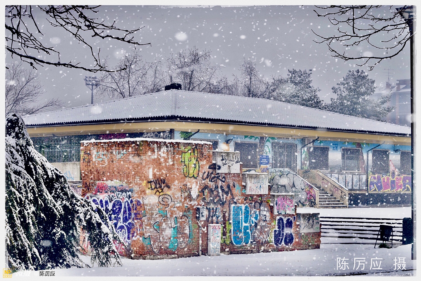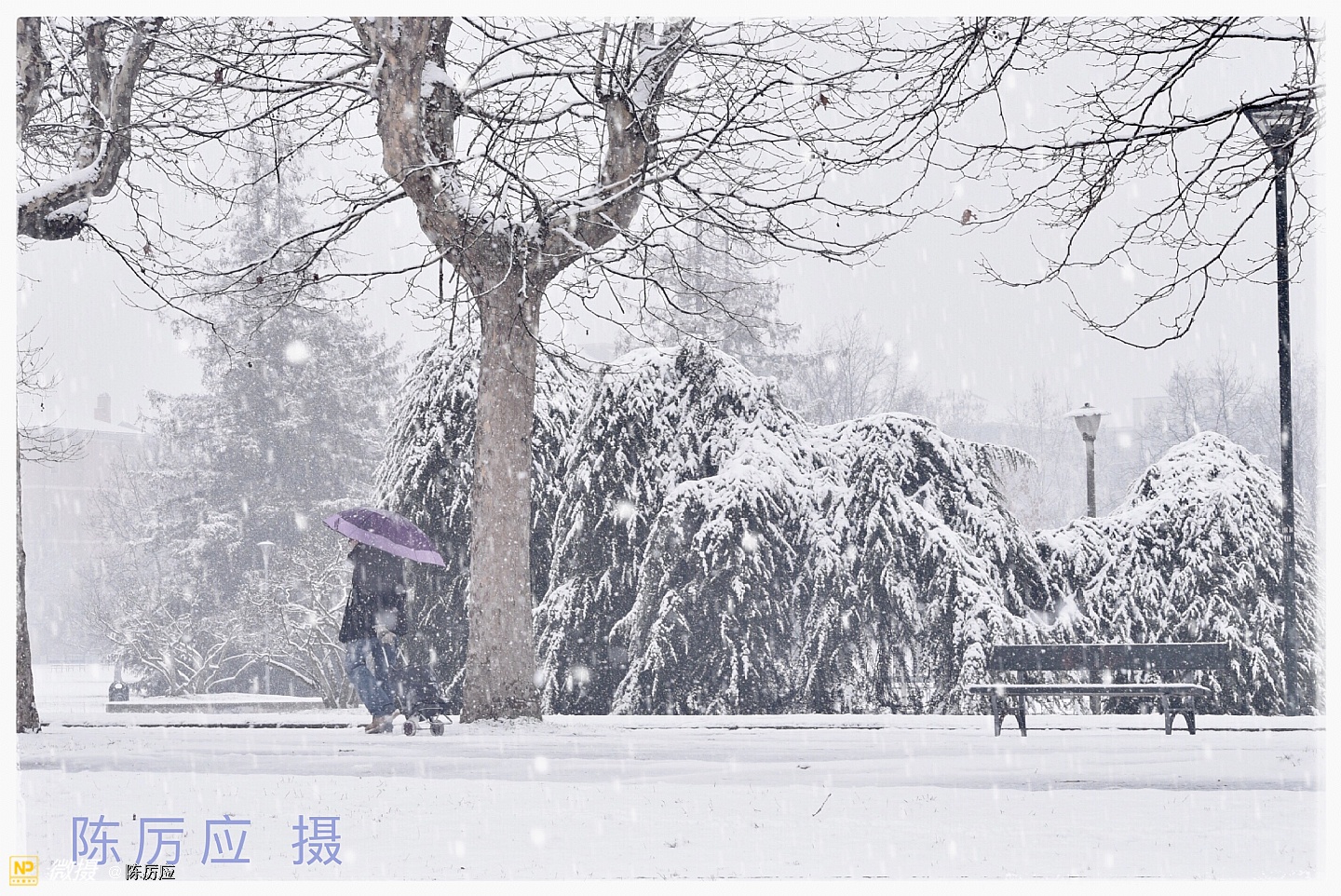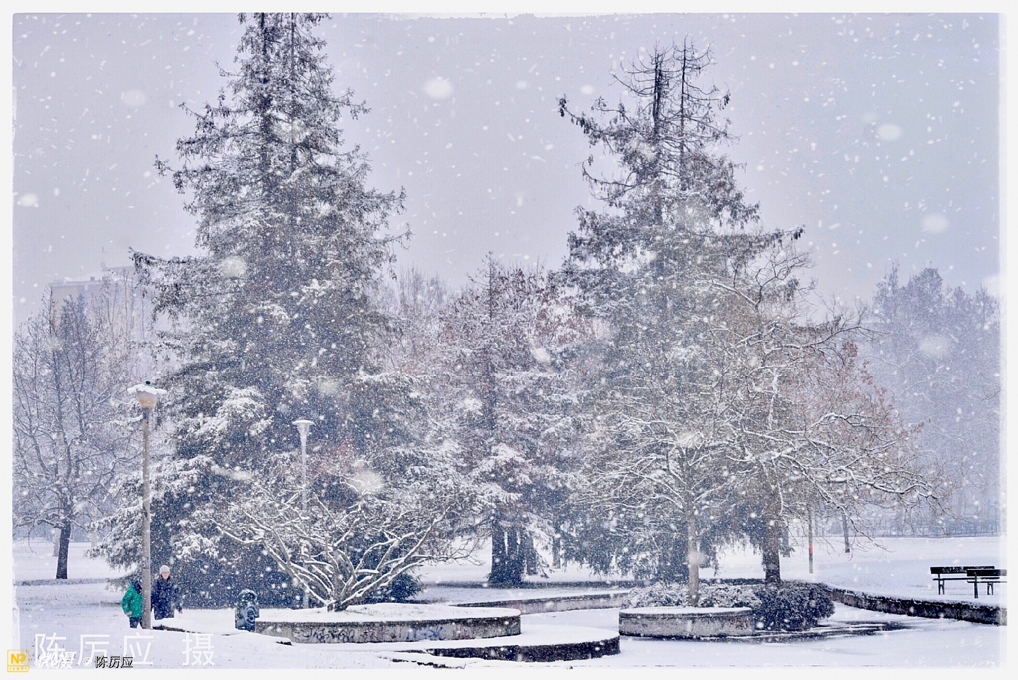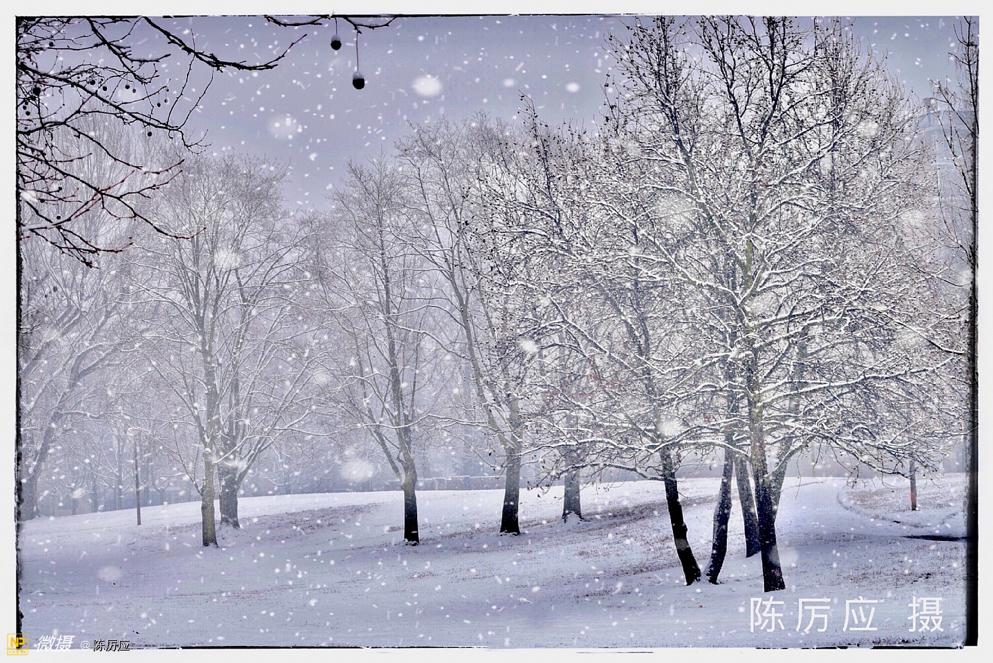 昨天中午在停雪之前,把酒吧门关了,去后公园拍雪景。 雪下下停停快一个多星期了,是乎有点厌烦了!天气太冷了,今天是最后一天了,我还是去看看,一只手拿红伞,一只手拿相机,相机还要包着,进公园一看,哇哦!好漂亮的春雪,似乎被迷住了,只顾着看了,细细的春雪,亲吻着脸颊,仿佛冬天里吃冰激淋似甜甜的,,雪下着最大的时候,白茫茫的一片,朦朦胧胧的,像水墨画一样富有层次和意境,焕然若梦。 这时很少有人走动,只有遛狗的人。地面平平的厚厚一层覆盖着,像是走进一个白色的世界,纯净的,晶莹剔透的,宛如昙花盛开。 春雪它是个浪漫的,幻想的世界。就是一边落一边就化了,美总是在一刹那的时候。雪停了!就像昙花谢了! 我正准备去上班了。树上的黄鹂鸟在叫我了!我就给你也拍个照吧!一会儿太阳就出来了。过一会儿太阳下山了,