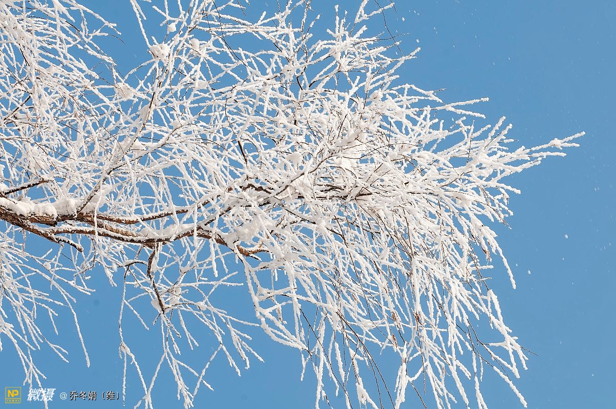 那粘满霜雪的柳树上尽是树挂,像是一根根银条悬挂在树上,格外壮观。(左成)