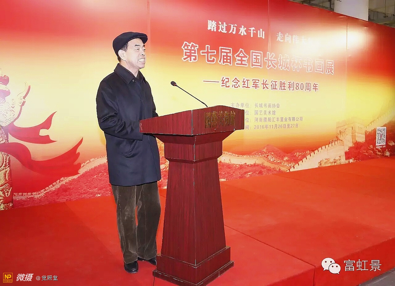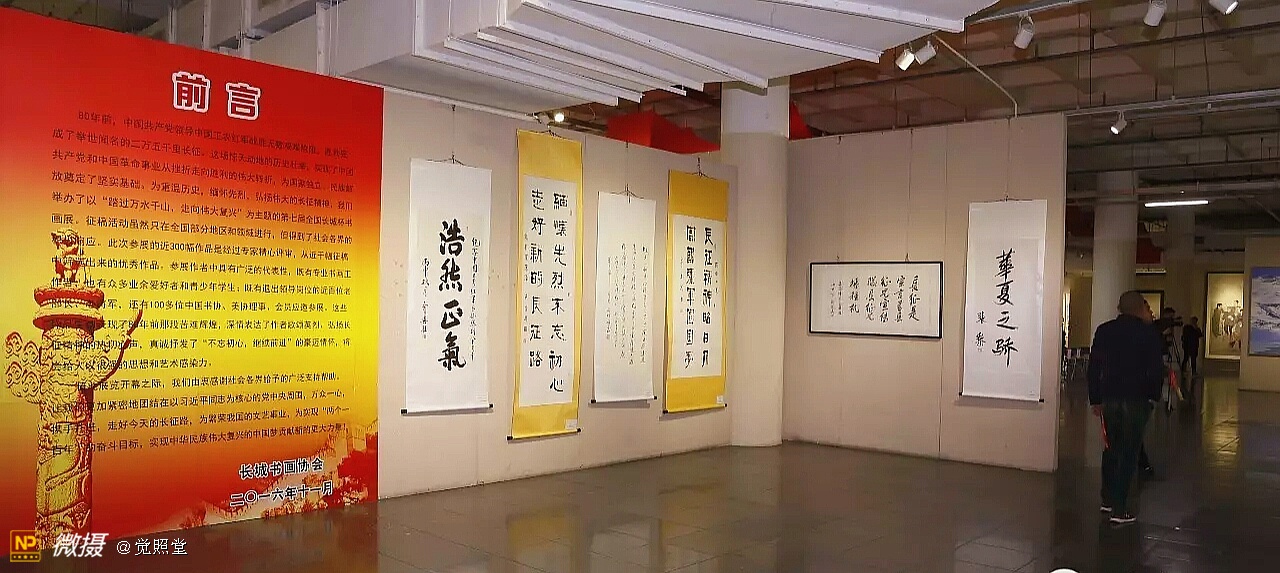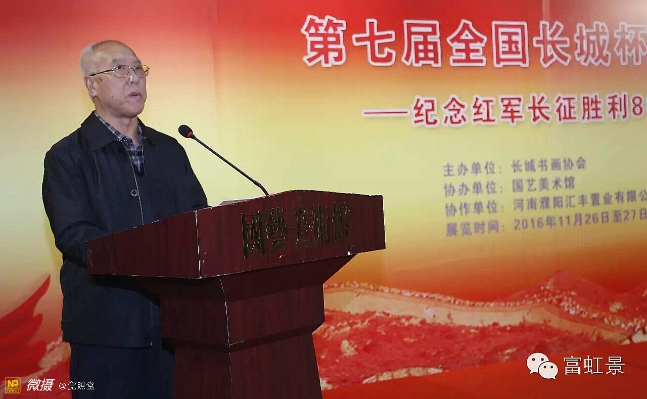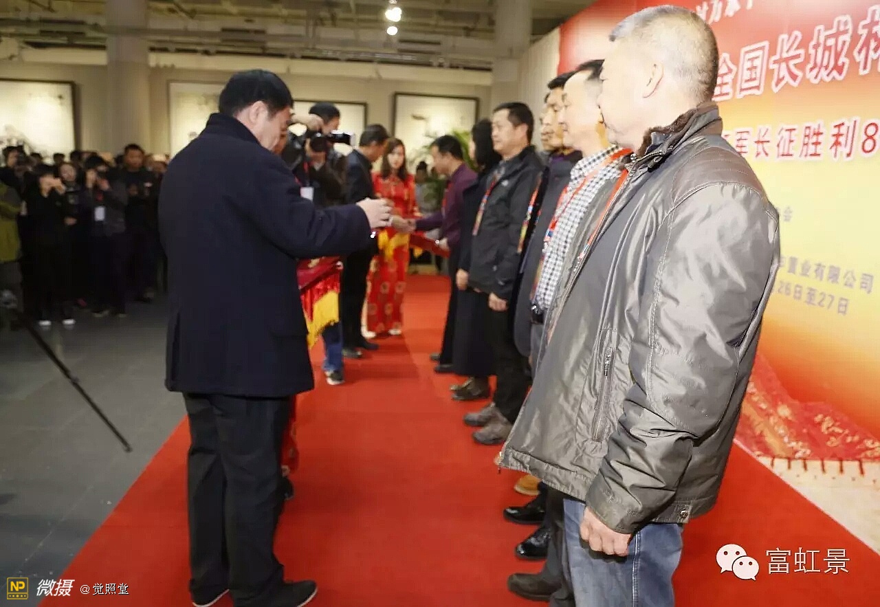 长城创伟业,翰墨赞英雄。为重温历史,缅怀先烈,弘扬伟大的长征精神,走好新的长征路,长城书画协会今年六月启动了纪念红军长征胜利80周年暨第七届长城杯书画展作品征集活动。经过近半年的认真准备,以“踏过万水千山,走向伟大复兴”为主题的第七届全国长城杯书画展,今天在北京国艺美术馆隆重开幕