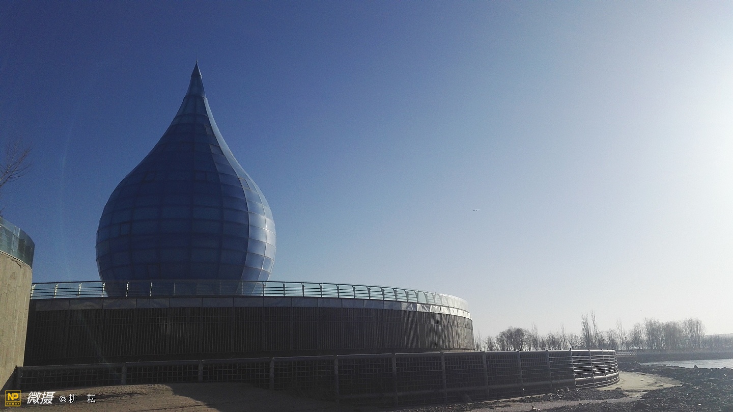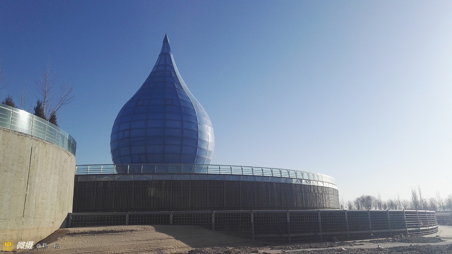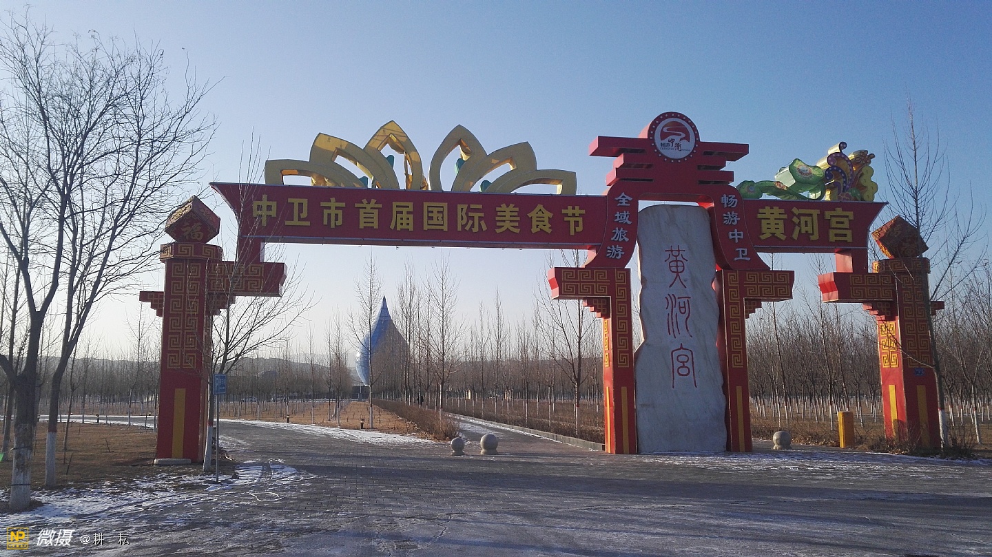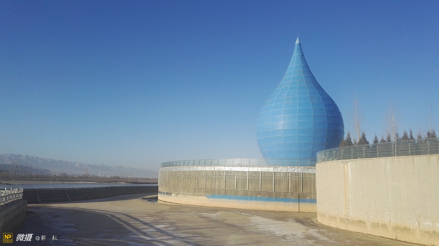 黄河宫位于宁夏西部城市中卫市黄河北岸。抬头远望,九曲滔滔黄河水,似一条金色的彩带,舞动着,自西向东从公园南部缓缓流过。中卫地区自古就有"天下黄河富宁夏,首富中卫"之说,也是宁夏"黄河金岸"城市经济带中的一颗璀璨明珠。黄河宫主体建筑高36.9米,创意采用唐朝诗人李白"黄河之水天上来"的诗词寓意,将黄河之水凝练成水滴建筑形态。建筑里沿内壁有人行观景坡道,中间设电梯和80多平方米的观景台。水滴主体建筑下就是黄河博物馆。????展