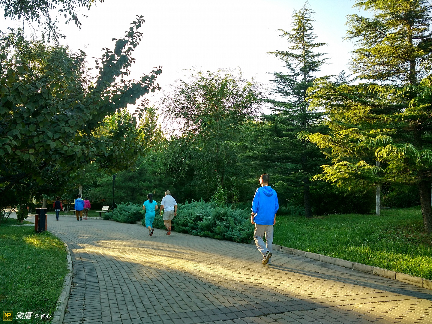 公园里晨练的人们。
