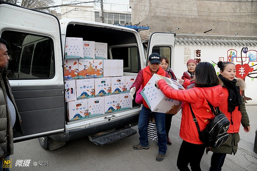 爱心车队司机和志愿者装车、整理、检查、登记,不顾长途颠簸疲惫,就立即和等候学校师生,开始卸车搬运温暖包,整理活动现场
