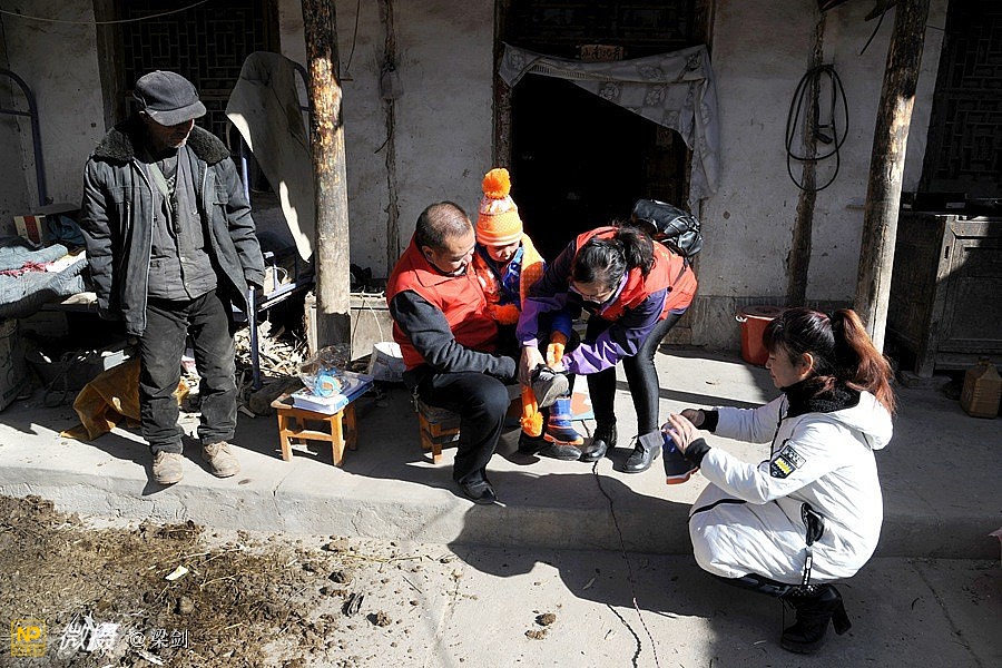 在寒风凛冽中爱心捐助活动接近尾声,爱心志愿者冯积科老师,也是驻下川村扶贫干部扶贫工作队队长兼第一书记,再次带领志愿者走进贫困村民家中,送去爱心物品和现金