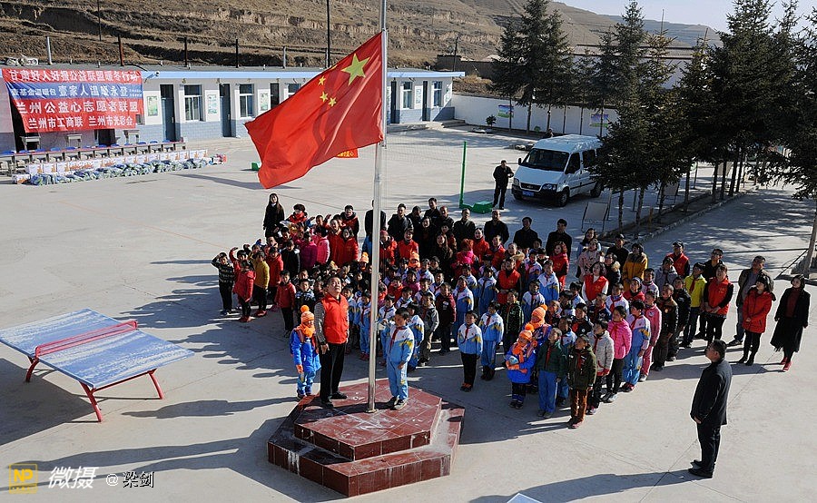 为了更好贯彻落实党在十九大会议精神,确保贫困人囗和贫困地区和全国一道进入全面小康社会,兰州市工商联,兰州市光彩会负责人、兰州公益心志愿者联盟的志愿者、学校师生和部分村民一起举行了庄严升国旗,全体参加活动人员齐唱国歌,五星红旗在旗手和护旗手升起,我的心情是无比激动,让我们大家共同努力继续奉献自己的爱心,帮助残疾.孤寡、空巢老人和贫困家庭的孩子,让他们生活的更加幸福快乐!坚持扶贫先扶智,扶贫必扶志的伟大理念,让下川村在步入小康社会的道路上不掉队