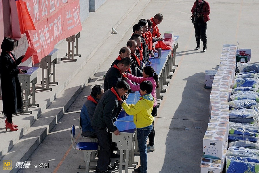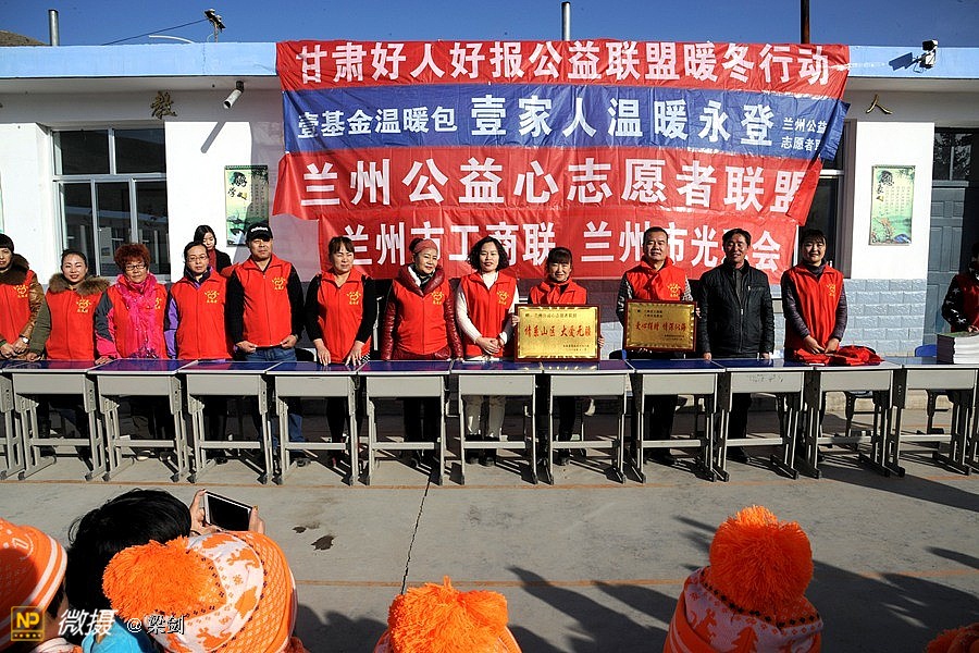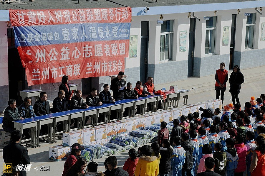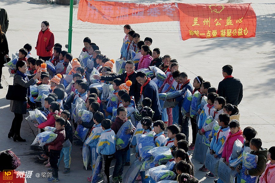本次捐送的有壹基金的温暖包四十个,兰州能源投资公司,兰州市工商联,兰州市光彩会的领导,和兰州公益心志愿者联盟志愿者,带去八十三套学生棉校服学习书籍用具,价值三万余元的物资。同时还给十二位老师每个人赠送了一条象征中国红的围巾