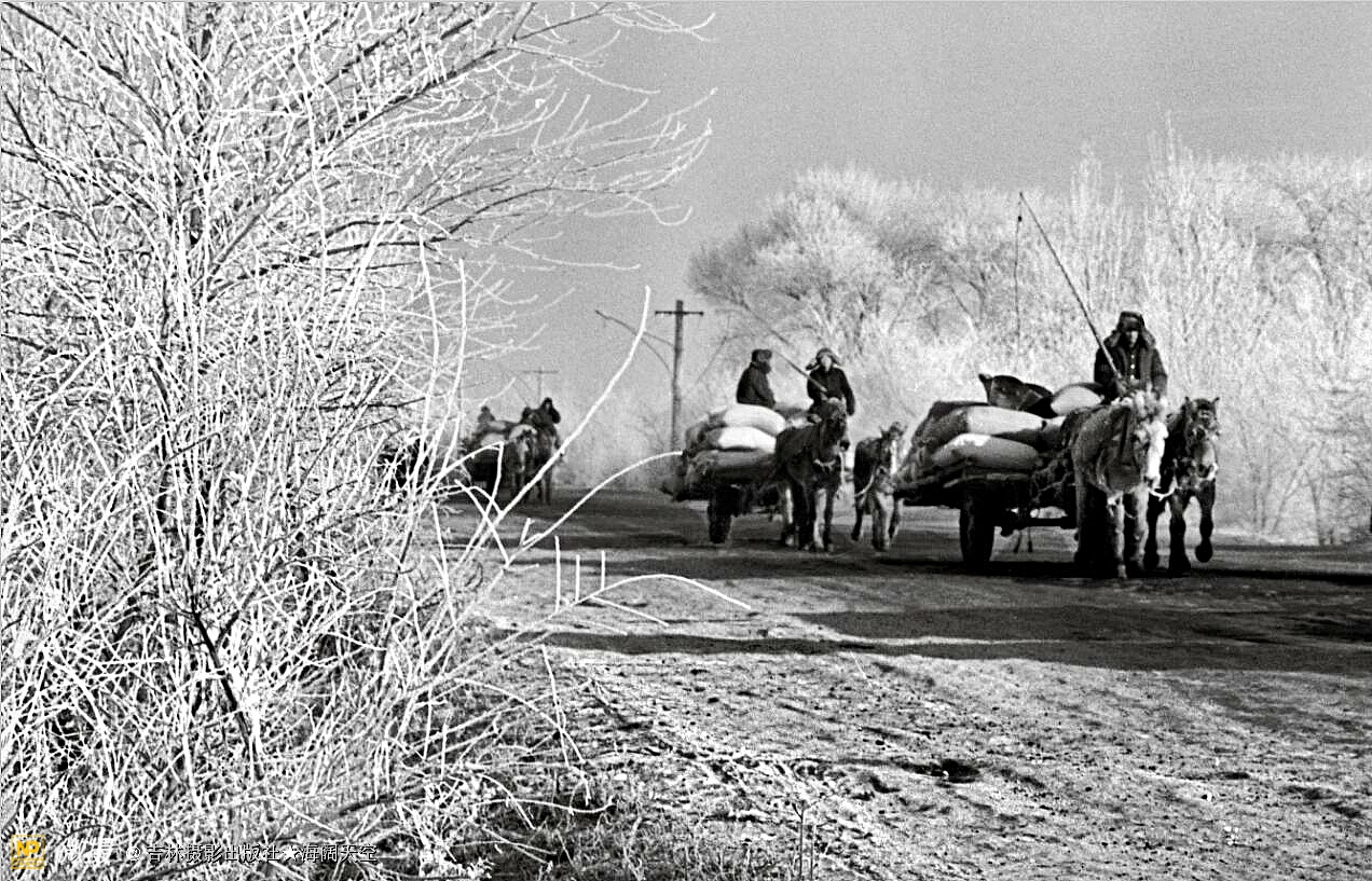 披星戴月,踏雪挂霜。挨冷受冻的农民赶着自家大车送公粮。