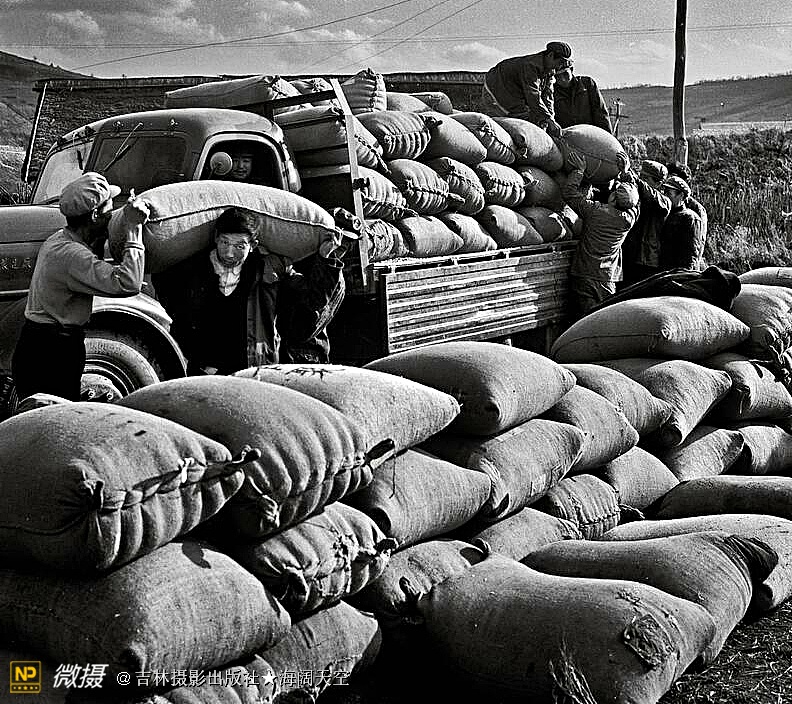 畜力车落伍,一些农户逐渐开始用卡车运粮,红石公社八家大队四社社员金爱嫫卖了3500多公斤余粮。