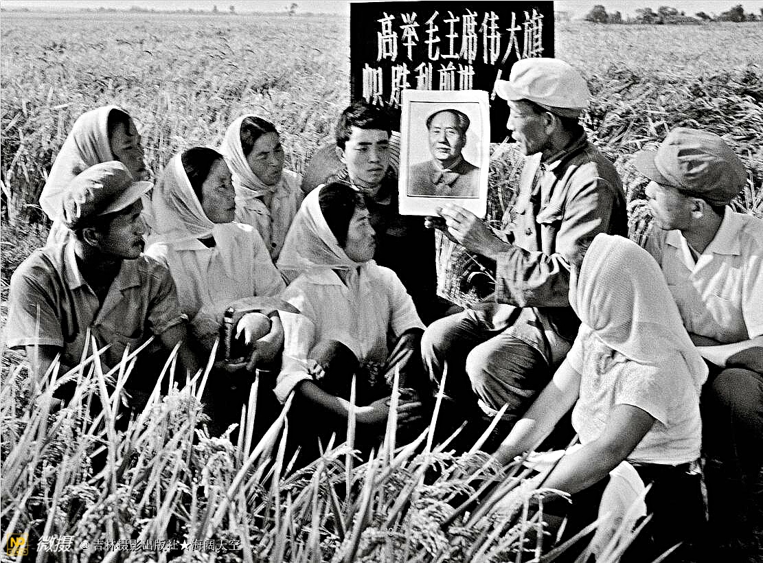 在田间劳动的人民公社社员,悼念刚刚逝世的毛泽东主席。