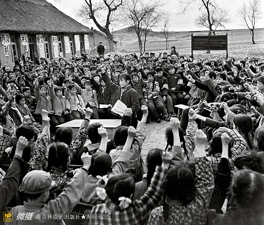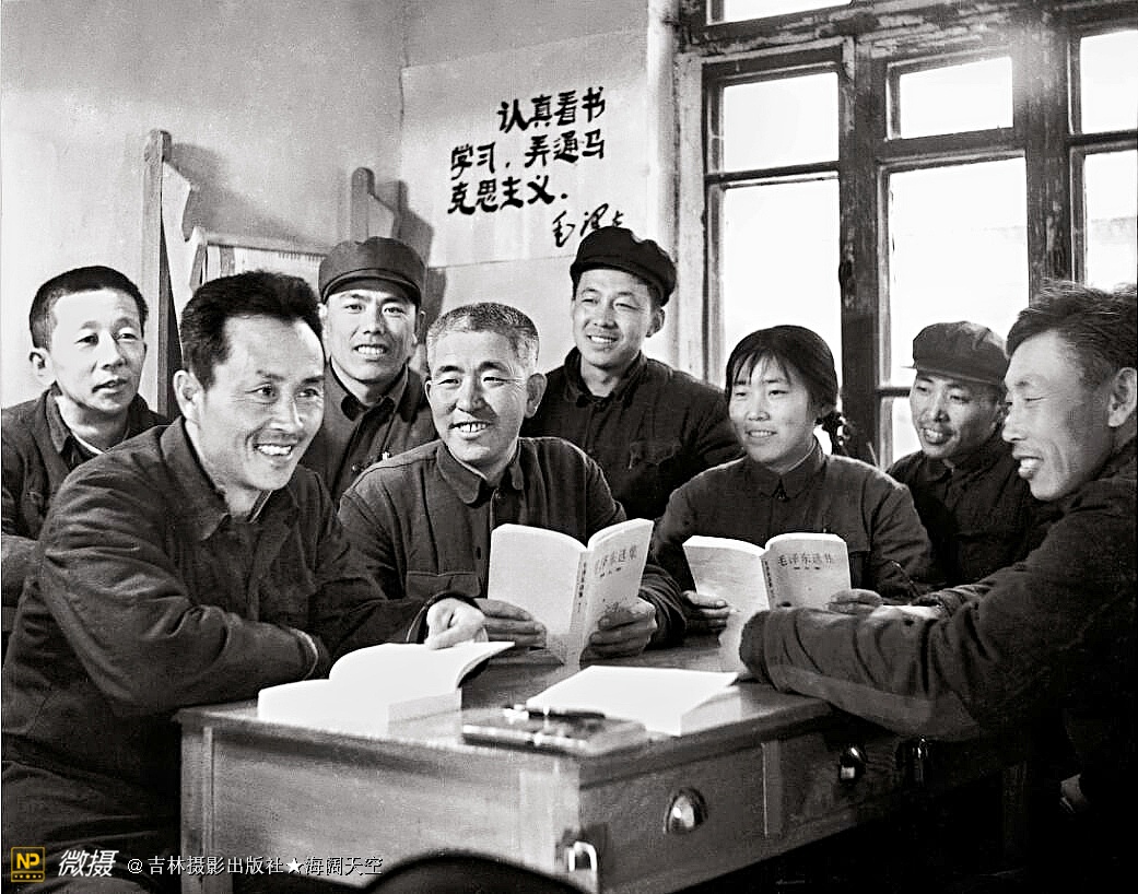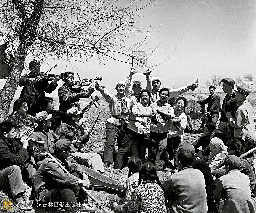 “毛泽东思想宣传队”在田间地头上为农民演出。