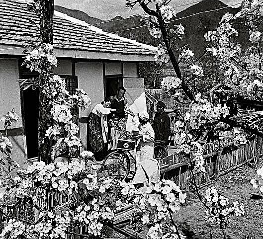三合公社北兴村, “赤脚医生”走乡串户去巡诊。