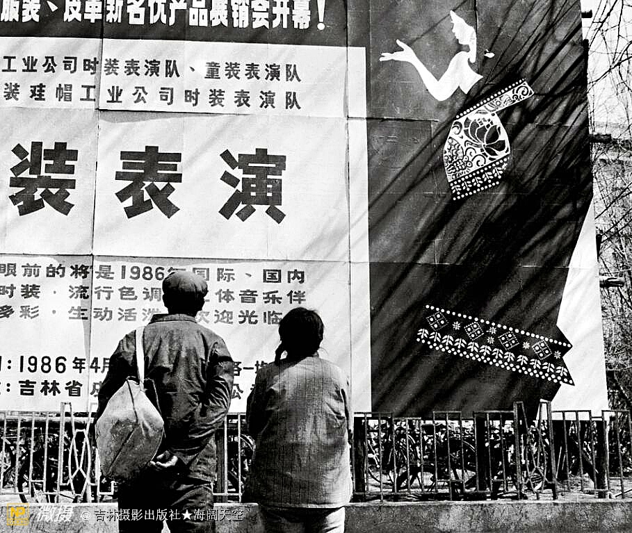 一对农民夫妻,被抢眼的时尚广告吸引。