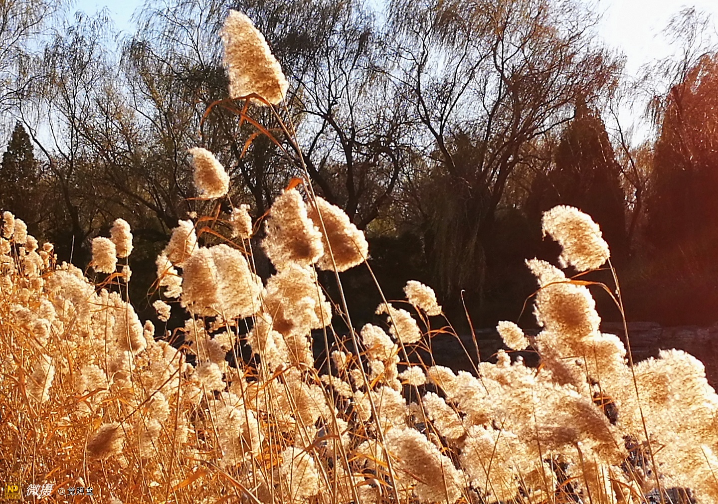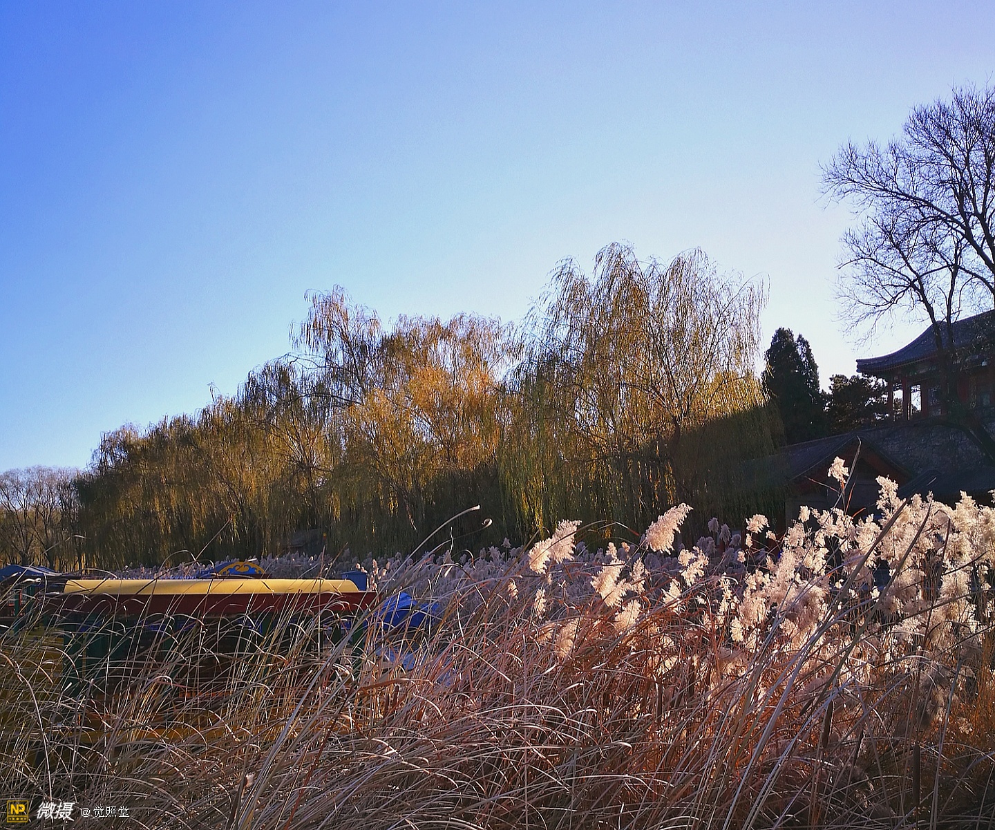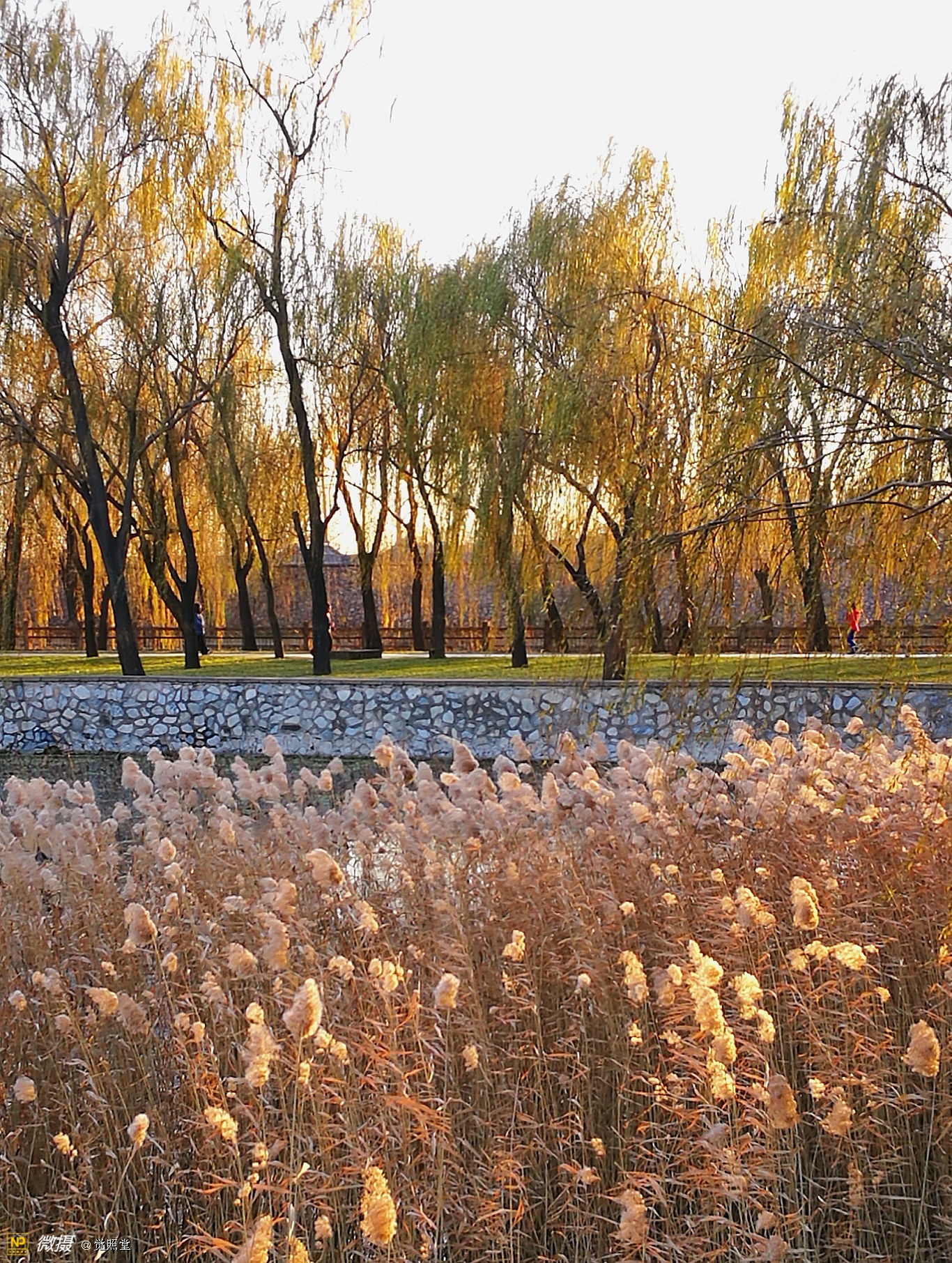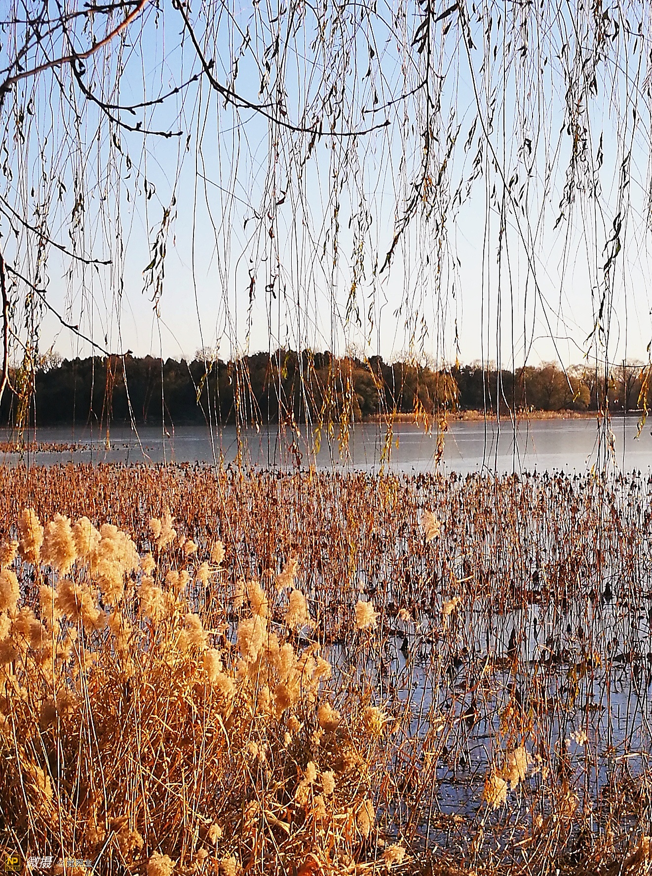 我漫步在这秋日的暖阳里,看头上的天空,看远处的高楼,以及远处依稀可见的山,看湖光塔影、亭台楼榭、看夕阳下的芦苇、残荷。有阳光陪衬,一切如此美好。金色风光惹人醉,更是惹得摄影人沉醉。