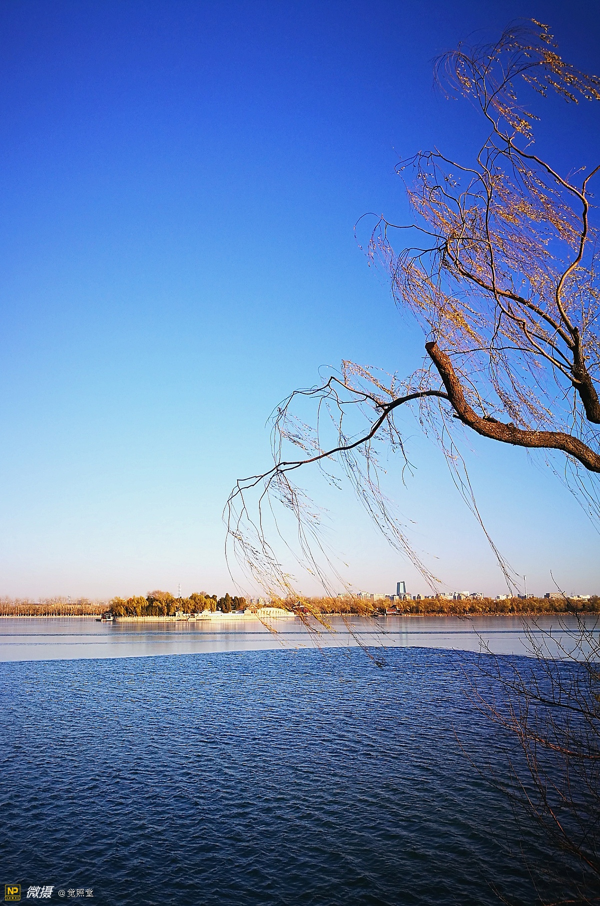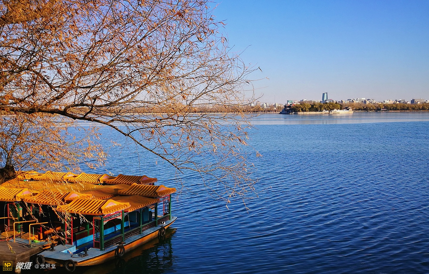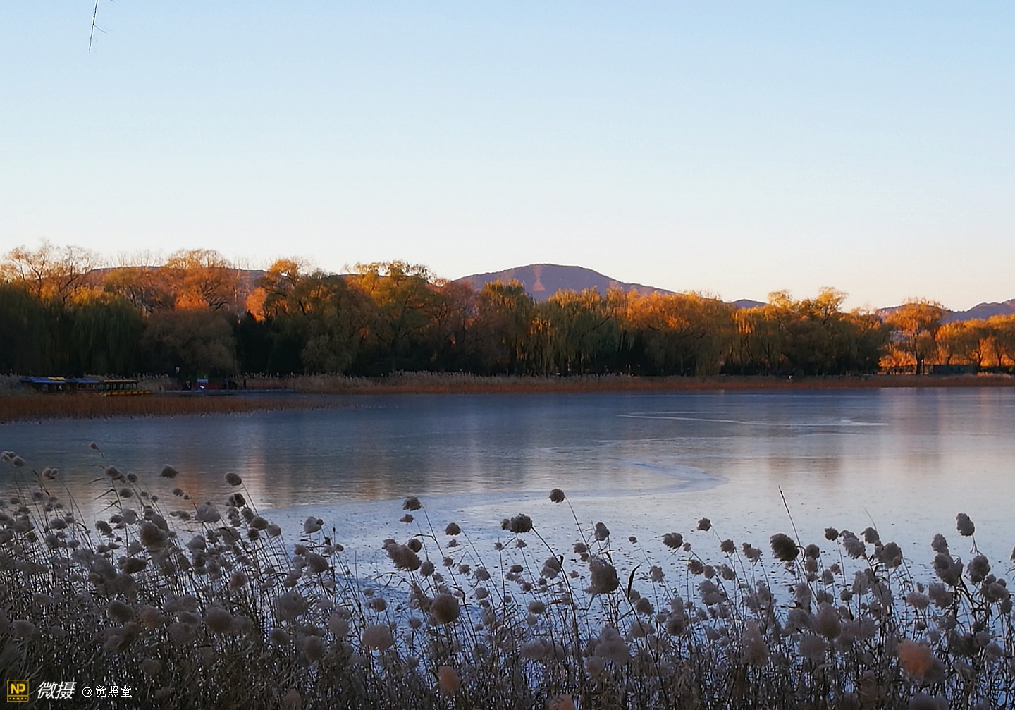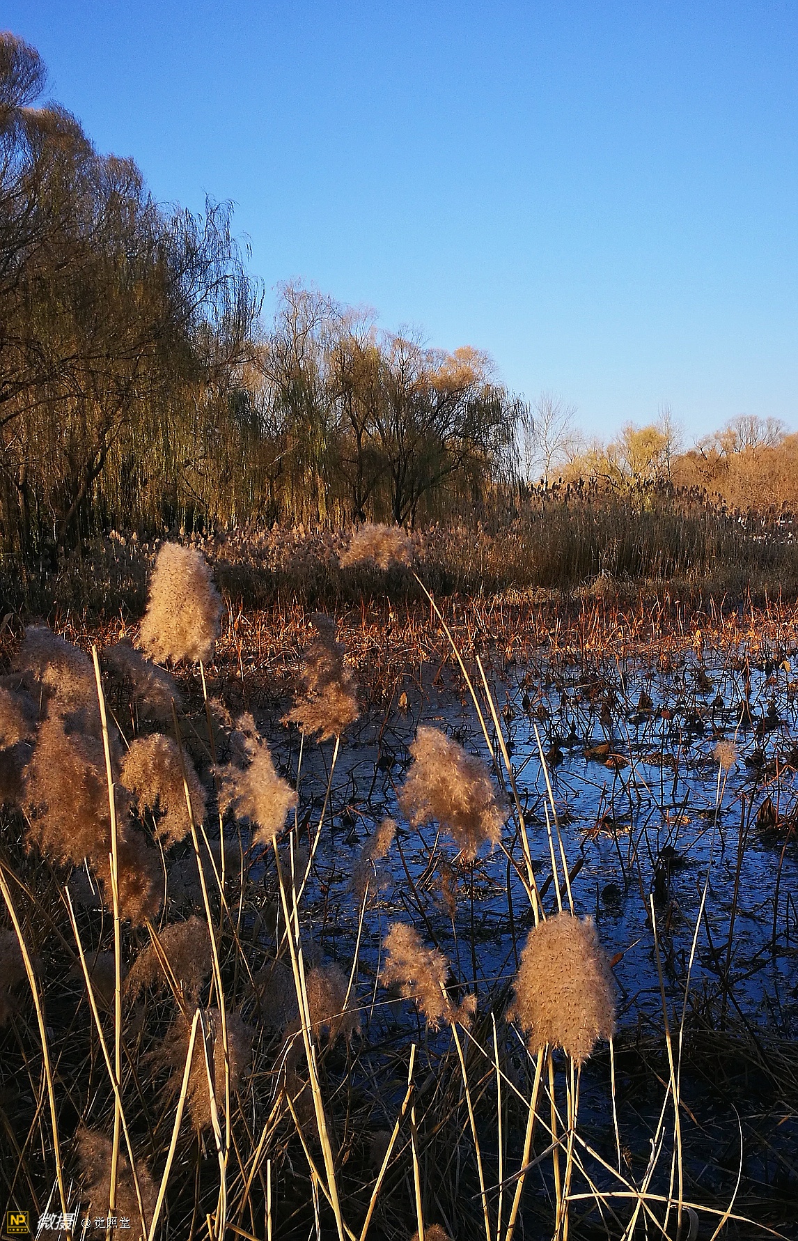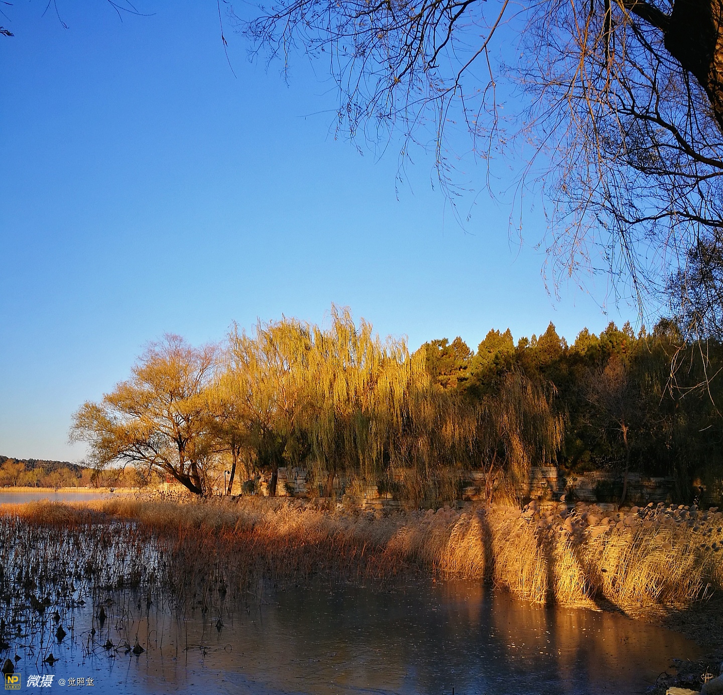 我漫步在这秋日的暖阳里,看头上的天空,看远处的高楼,以及远处依稀可见的山,看湖光塔影、亭台楼榭、看夕阳下的芦苇、残荷。有阳光陪衬,一切如此美好。金色风光惹人醉,更是惹得摄影人沉醉。
