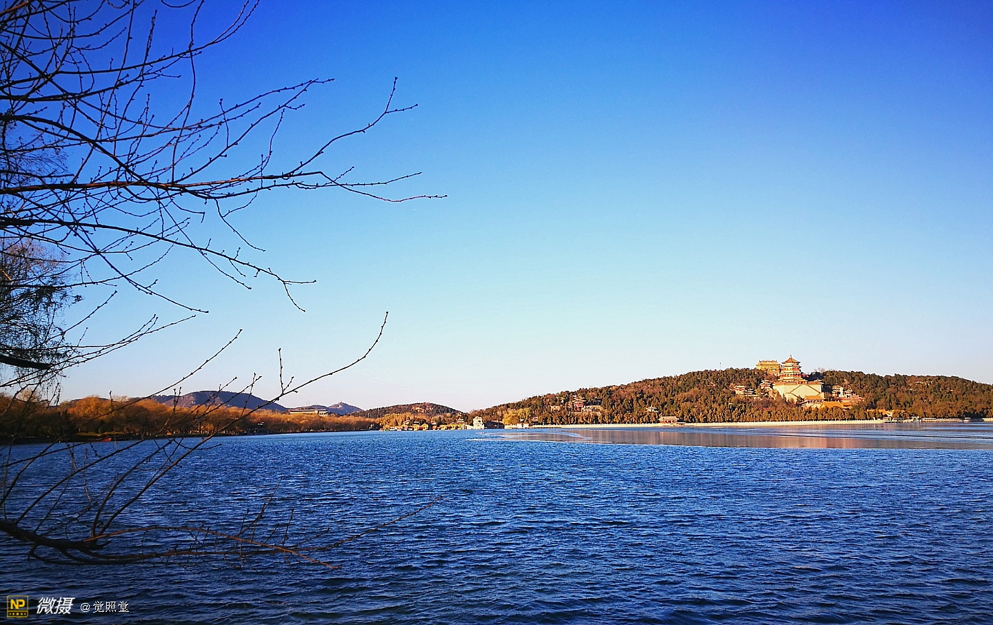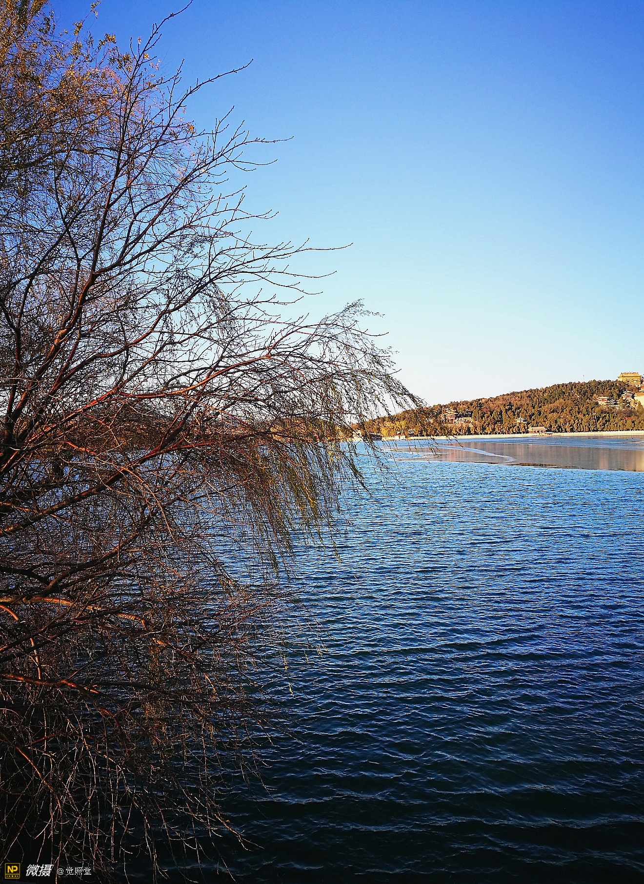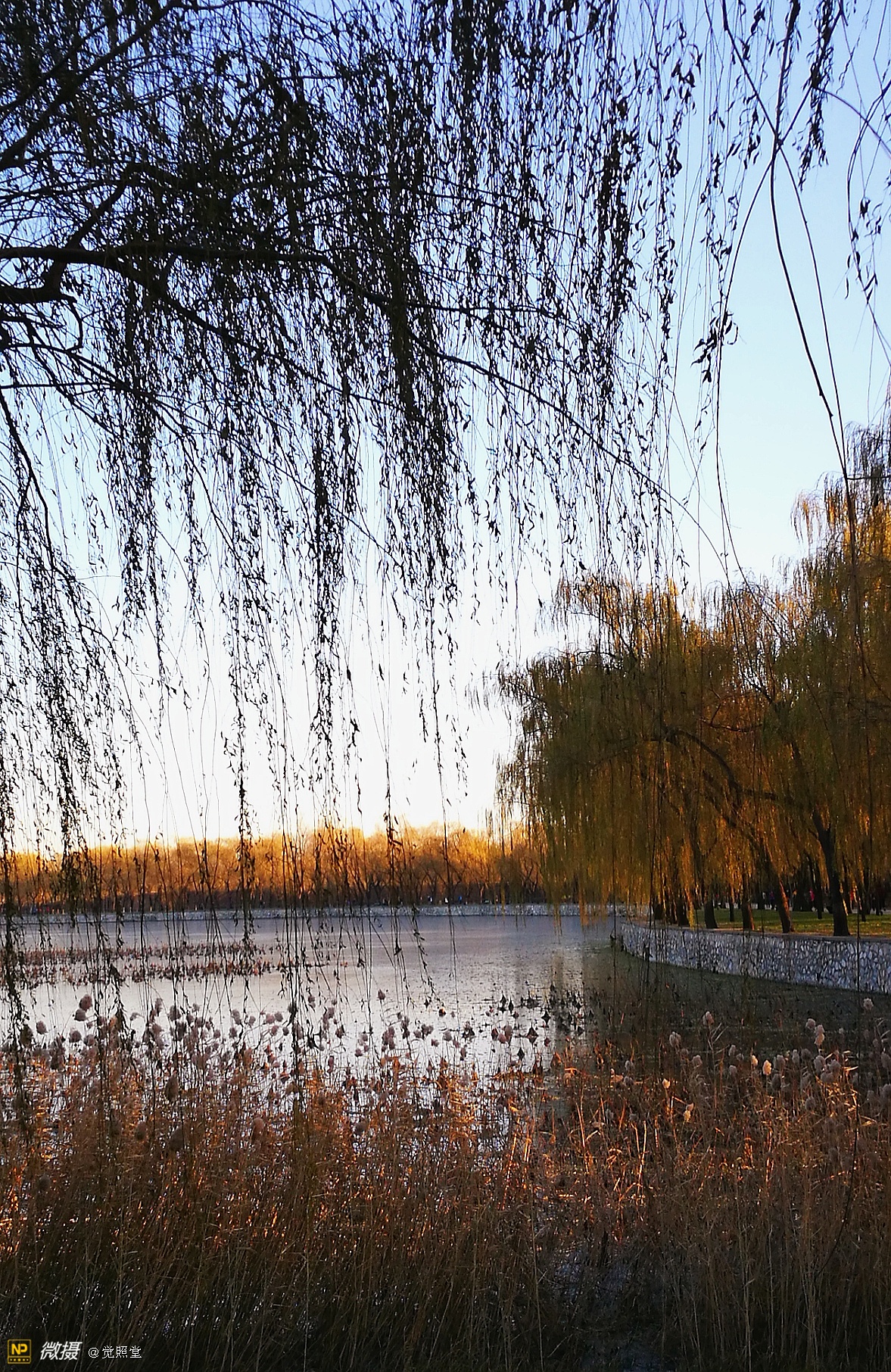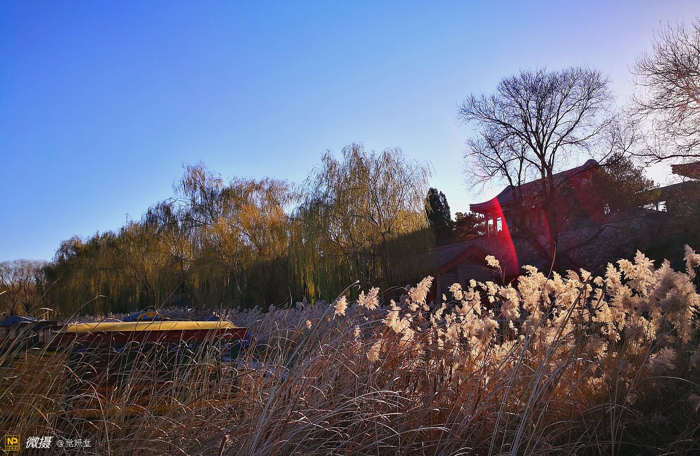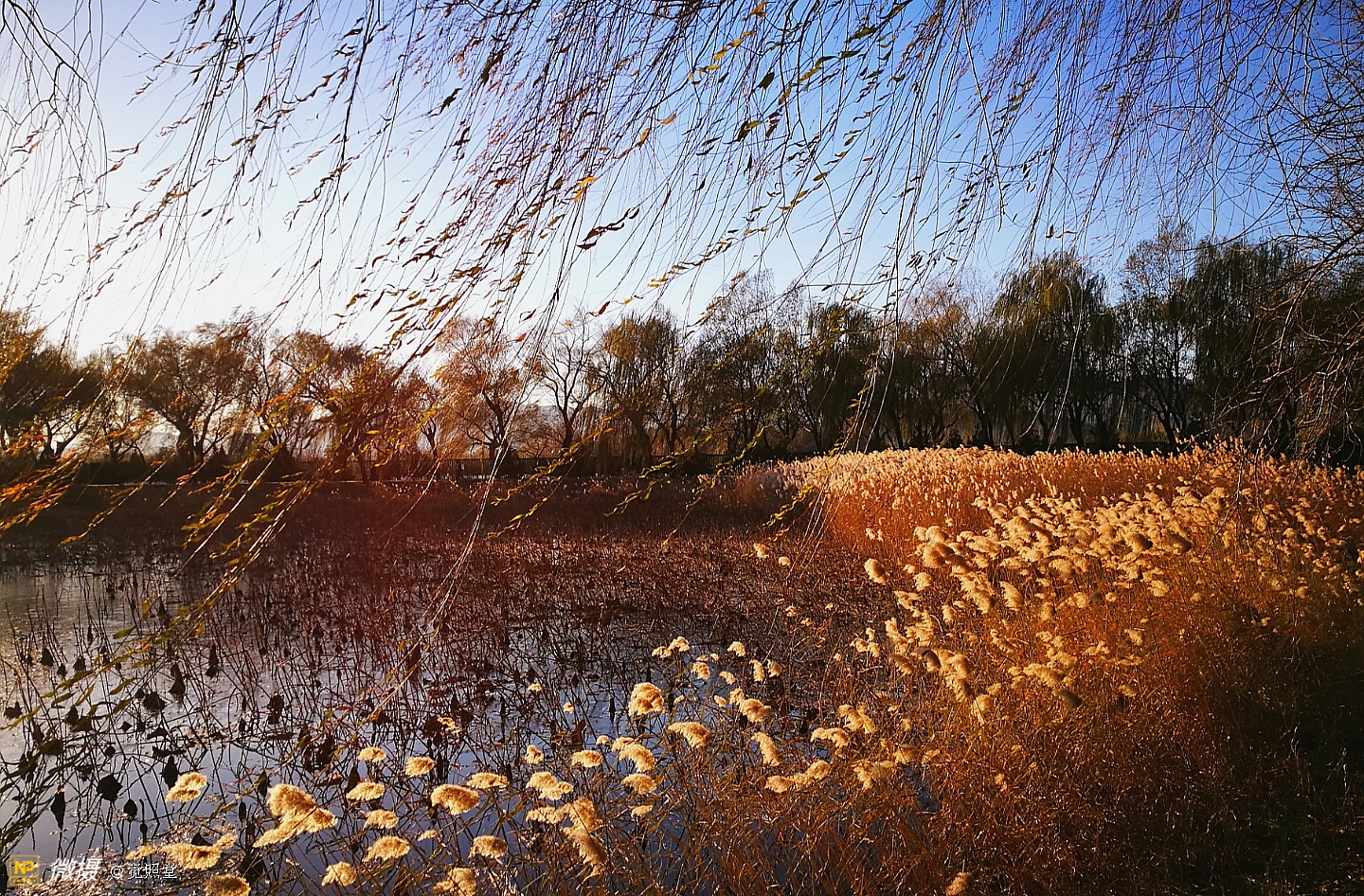 我漫步在这秋日的暖阳里,看头上的天空,看远处的高楼,以及远处依稀可见的山,看湖光塔影、亭台楼榭、看夕阳下的芦苇、残荷。有阳光陪衬,一切如此美好。金色风光惹人醉,更是惹得摄影人沉醉。