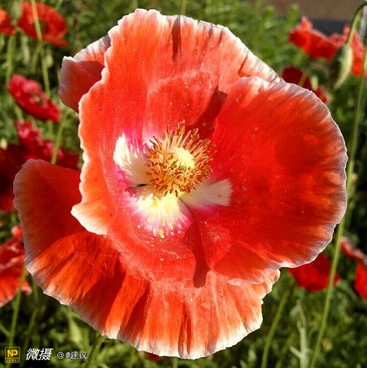 虞美人属罂粟科罂粟属一、二年生草本植物,它的学名是Papaver rhoeas,别名丽春花、赛牡丹、小种罂粟花、蝴蝶满园春。原产欧、亚大陆温带,世界各地多有栽培,比利时将其作为国花。兼具素雅与浓艳华丽之美,二者和谐地统一于一身。其容其姿大有中国古典艺术中美人的丰韵,堪称花草中的妙品。