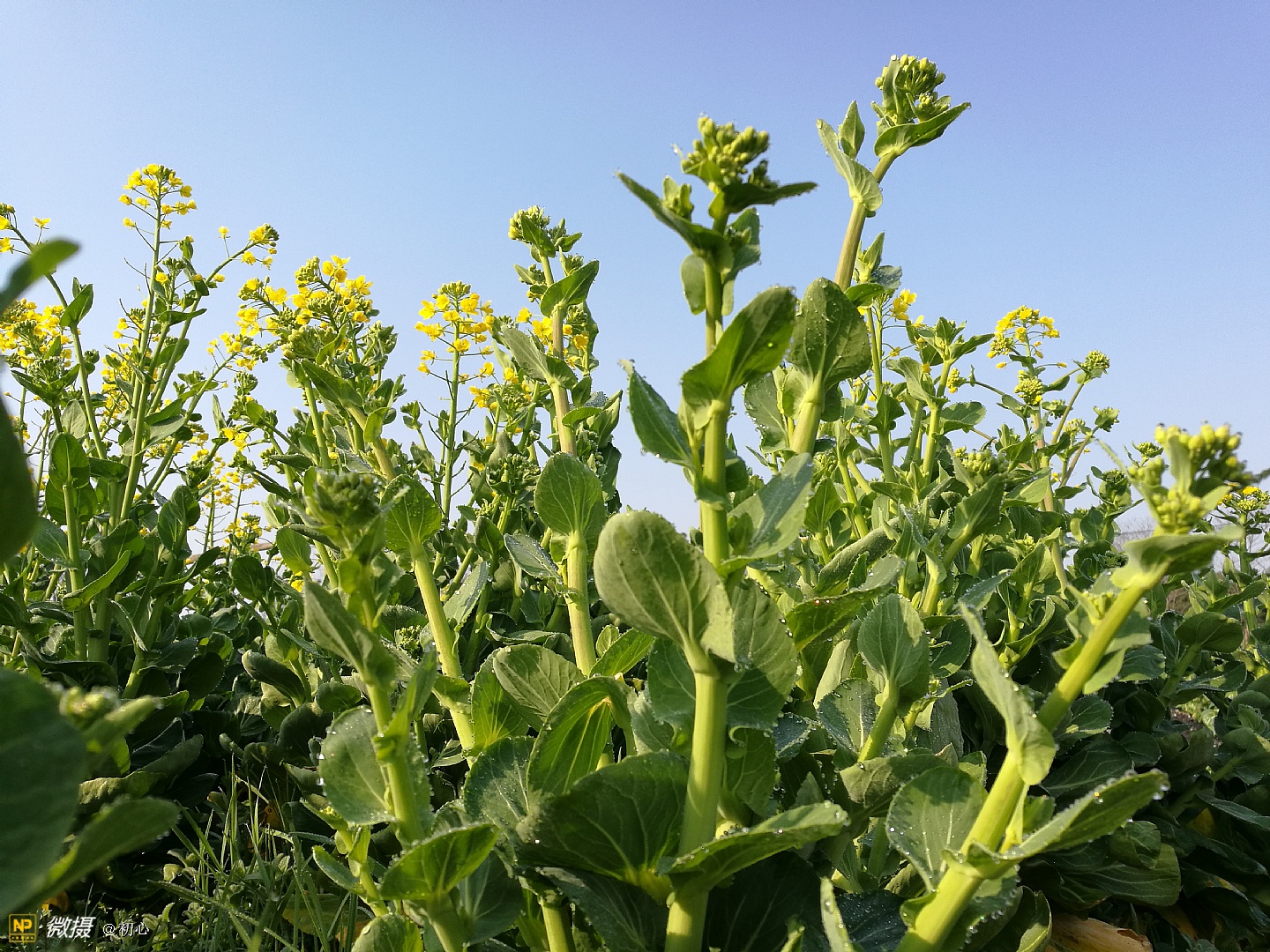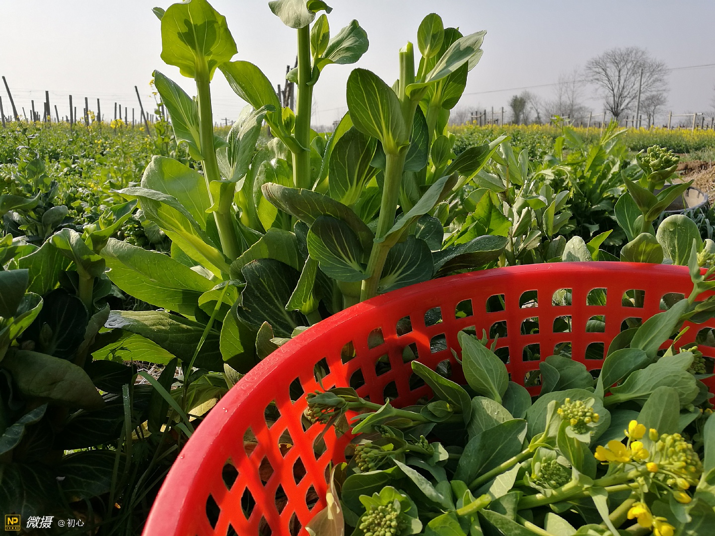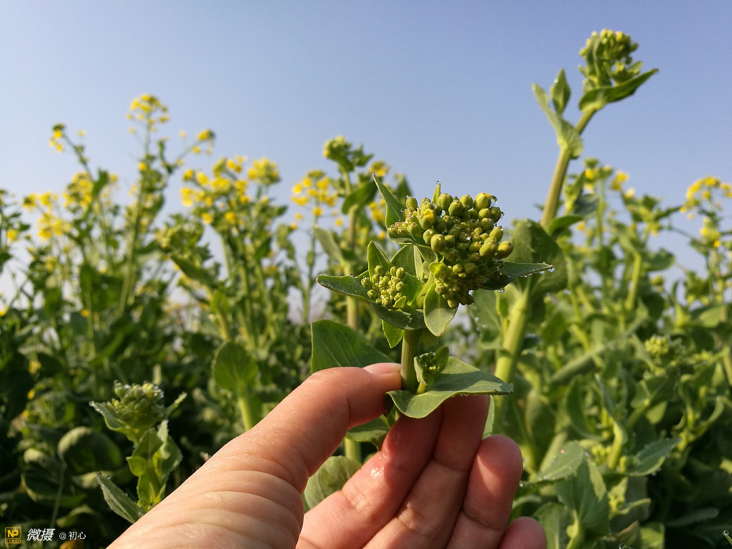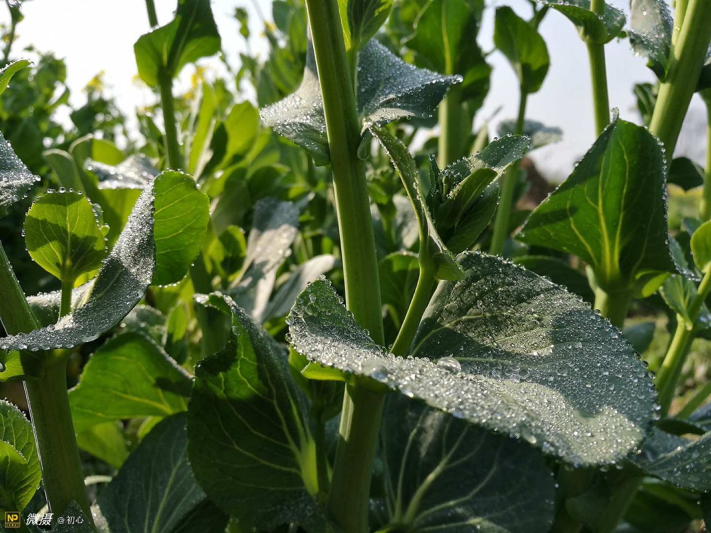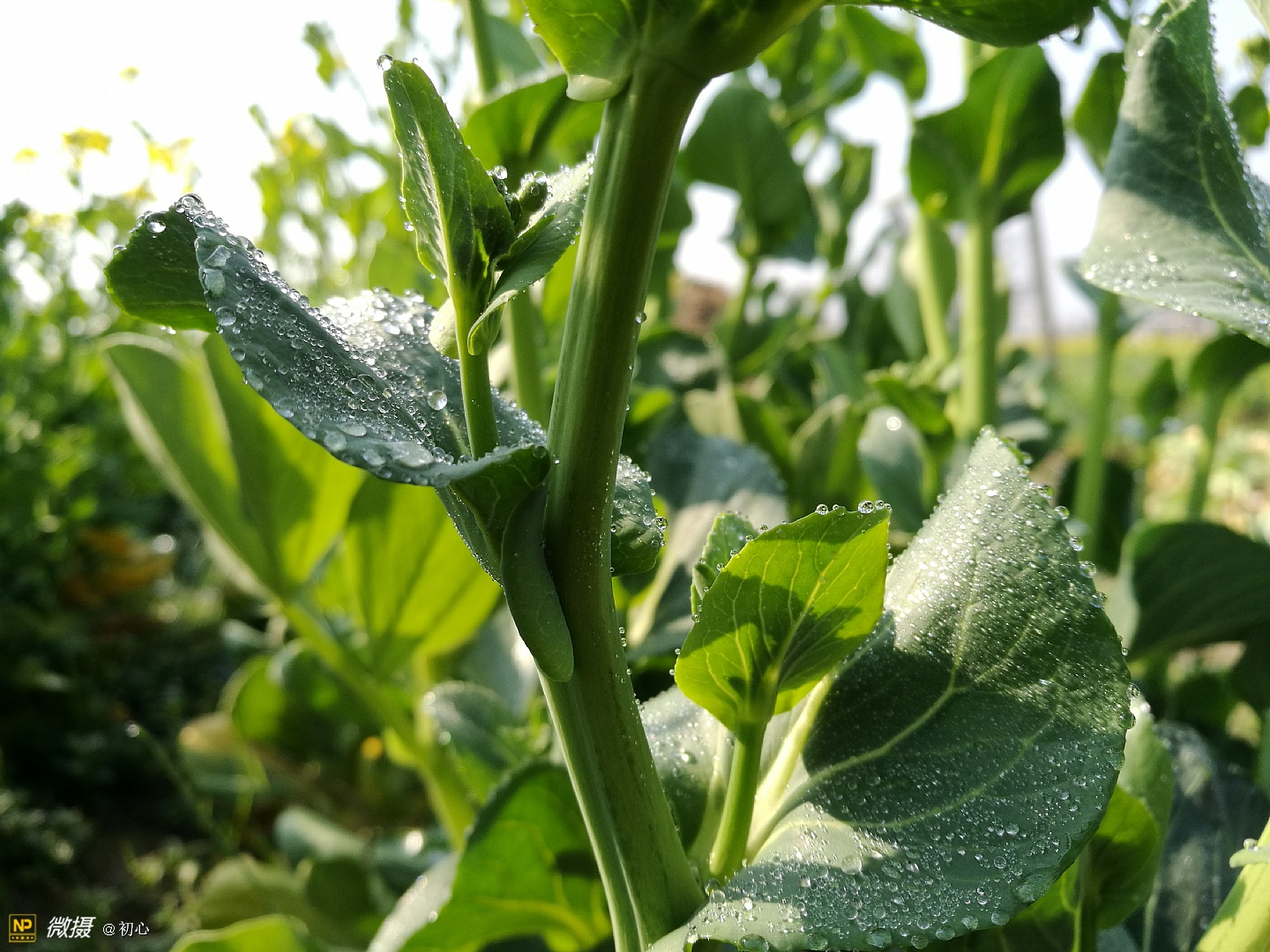 粗壮的菜苔,你看,叶子上还带着露珠。