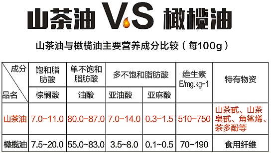 山茶油与橄榄油营养成分对比