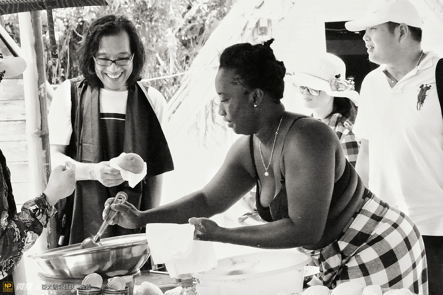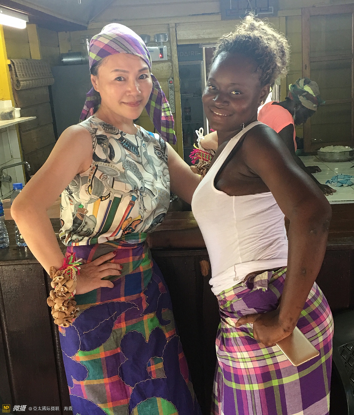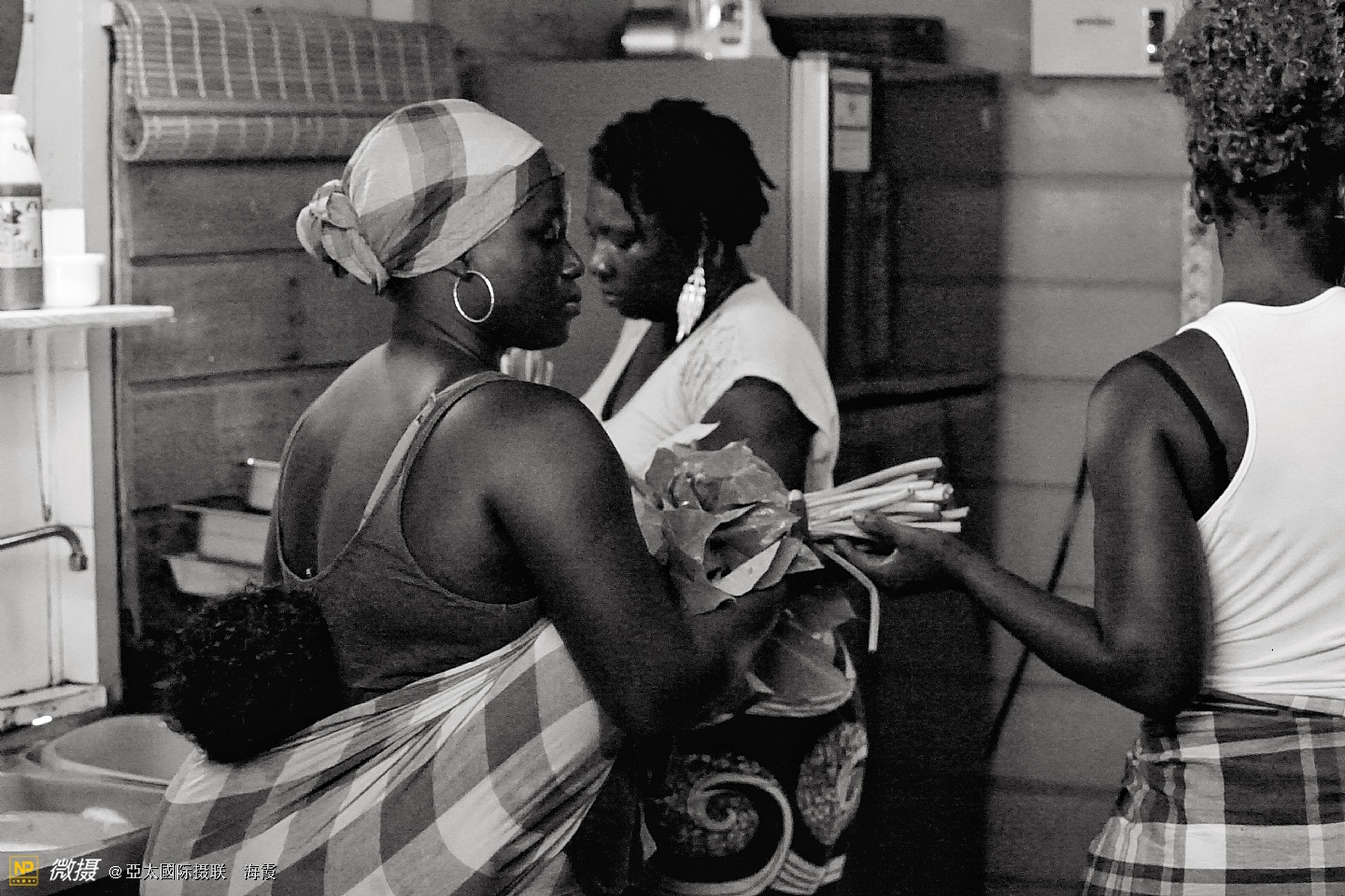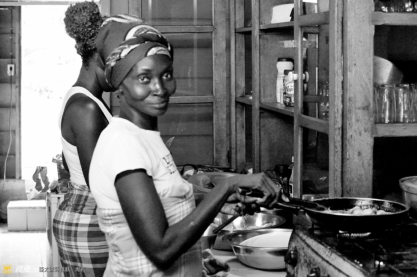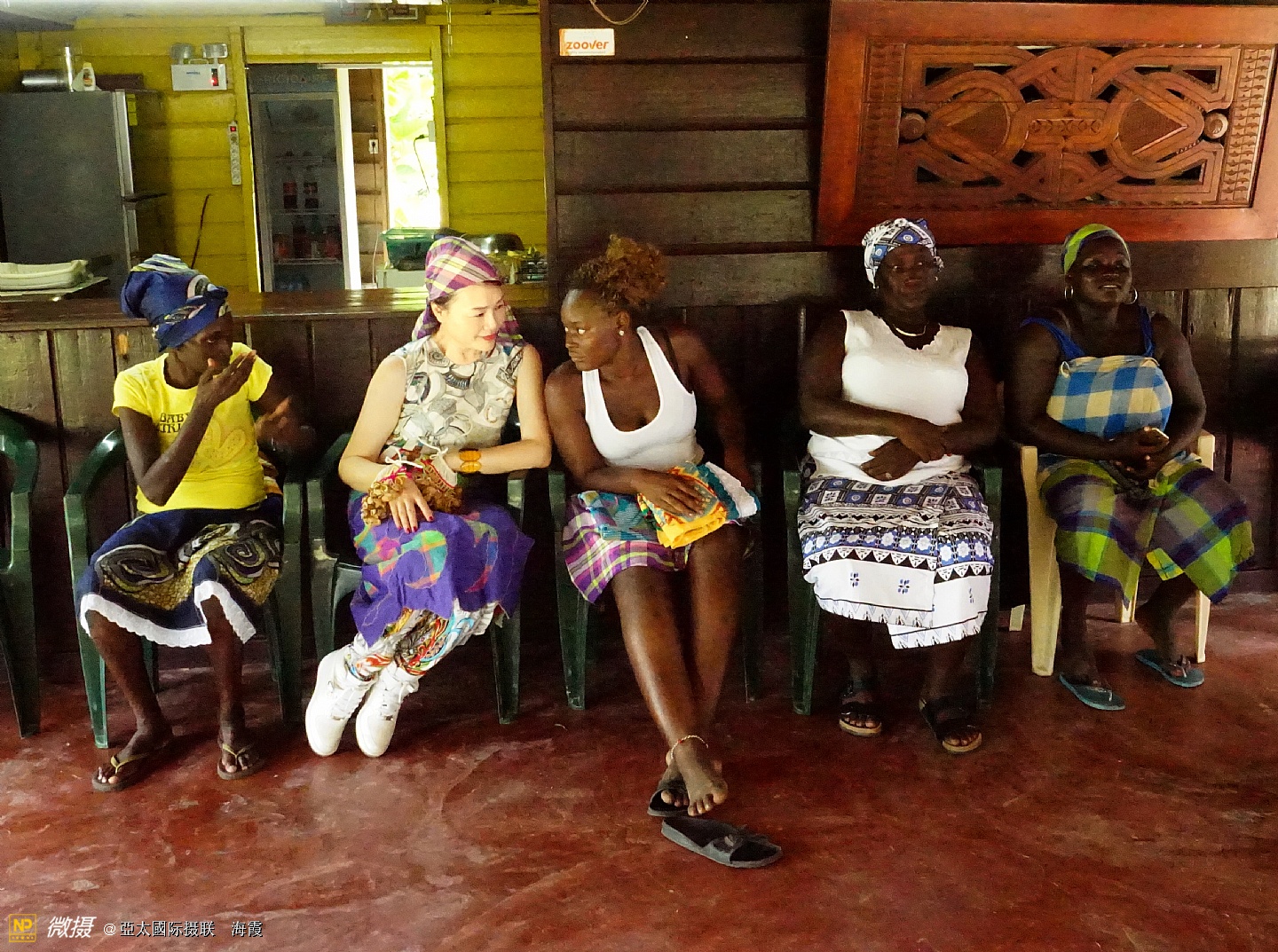 驱车來到一個當地較大的菜市場,我問為什麼來這裡,他說要自己買菜,到那個地方做飯吃,我當時想這是怎樣的一個地方啊?還要買菜?心裏有點範嘀咕,也沒問什麼,之後驅車一個半小时来到Santigron位于萨拉马卡河上的丛林中,距离帕拉马里博市区约30公里的地方,一下車就看到一個漂亮的原始木房子,里面有幾個農妇在洗我們拿來的菜,此景正是我想看到的,迅速拿起相機,把她們收入到我的鏡頭,她們有些人配合,有些人不配合,照時要和他們先溝通,否則他們會很生氣,哈哈!這說明他們也是一個愛美的民族,也希望展現出自己美好的一面,不想把丑的一面展現出去。說話之間,飯菜就做好了,自助餐,雖然簡單,但還是挺好吃的。