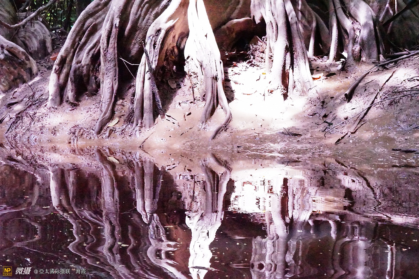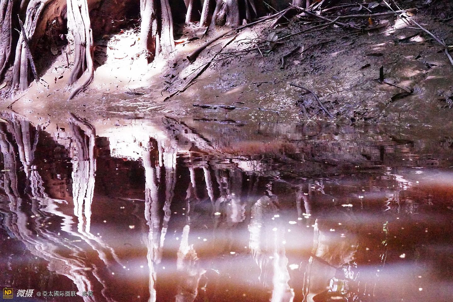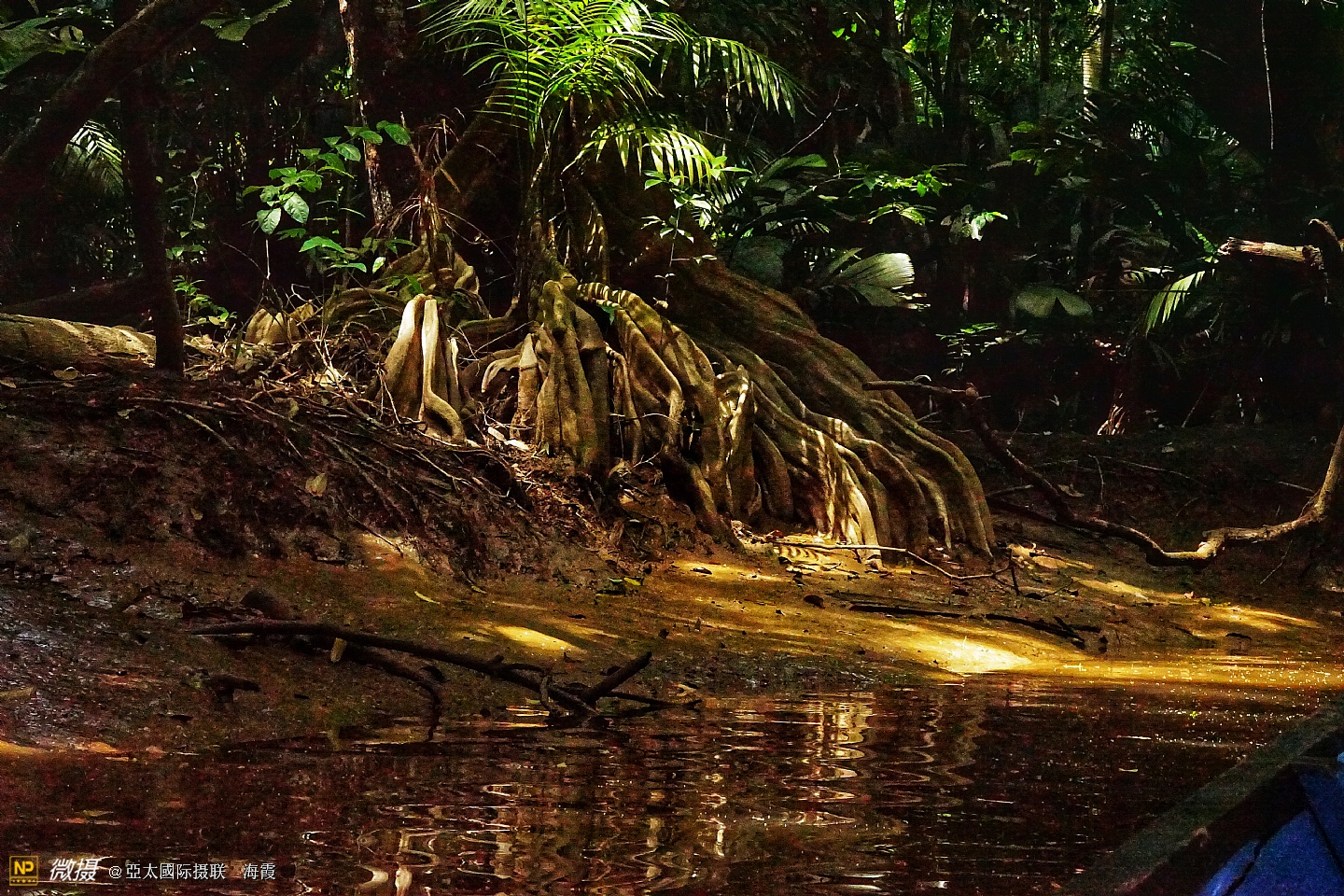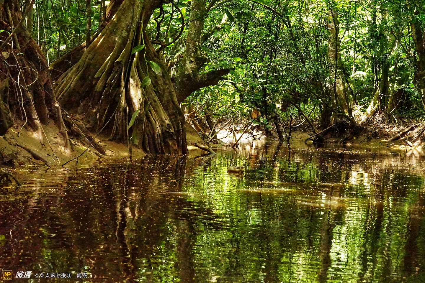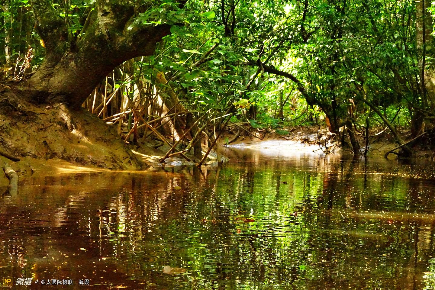 首先導游架小木船带我们游覽,在穿越河流的船游途中,我們看到了猴子、野鳥及大魚,中间穿过狭窄的小树林,里面美极了,第一次看到了可乐河,水的颜色和可乐相似,所以叫可乐河。