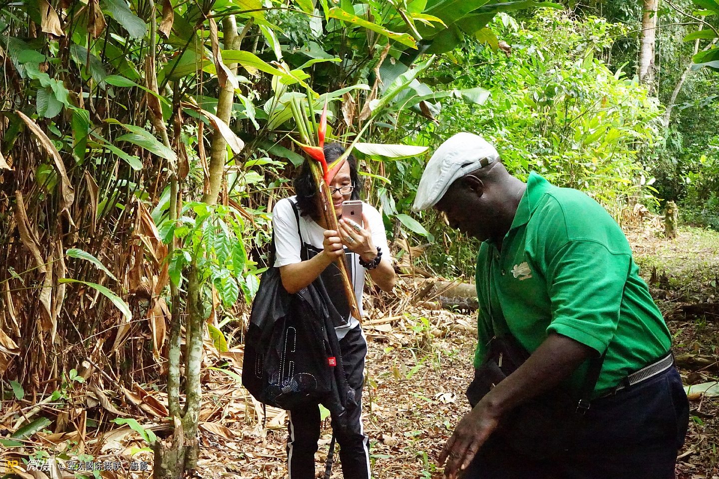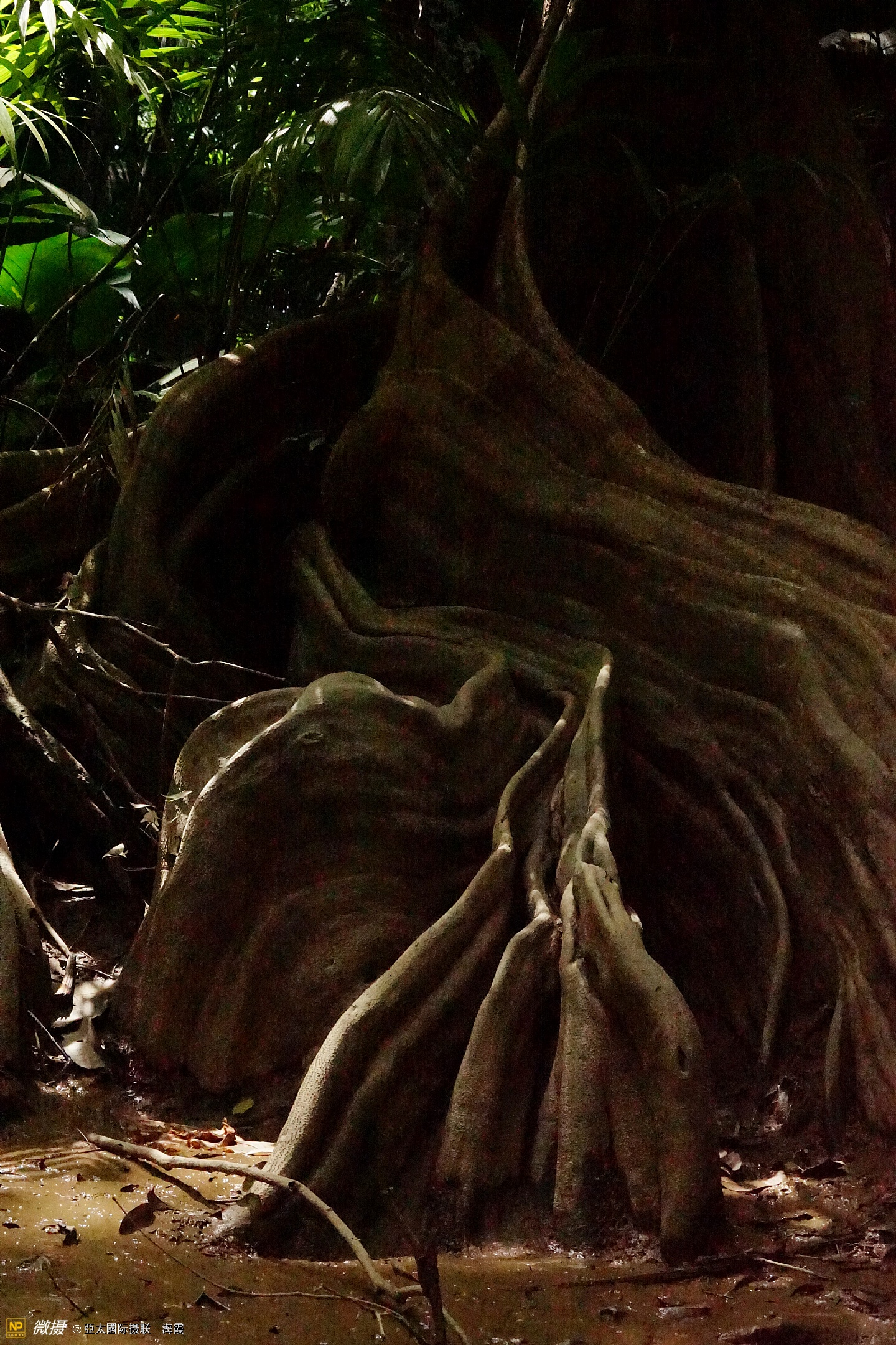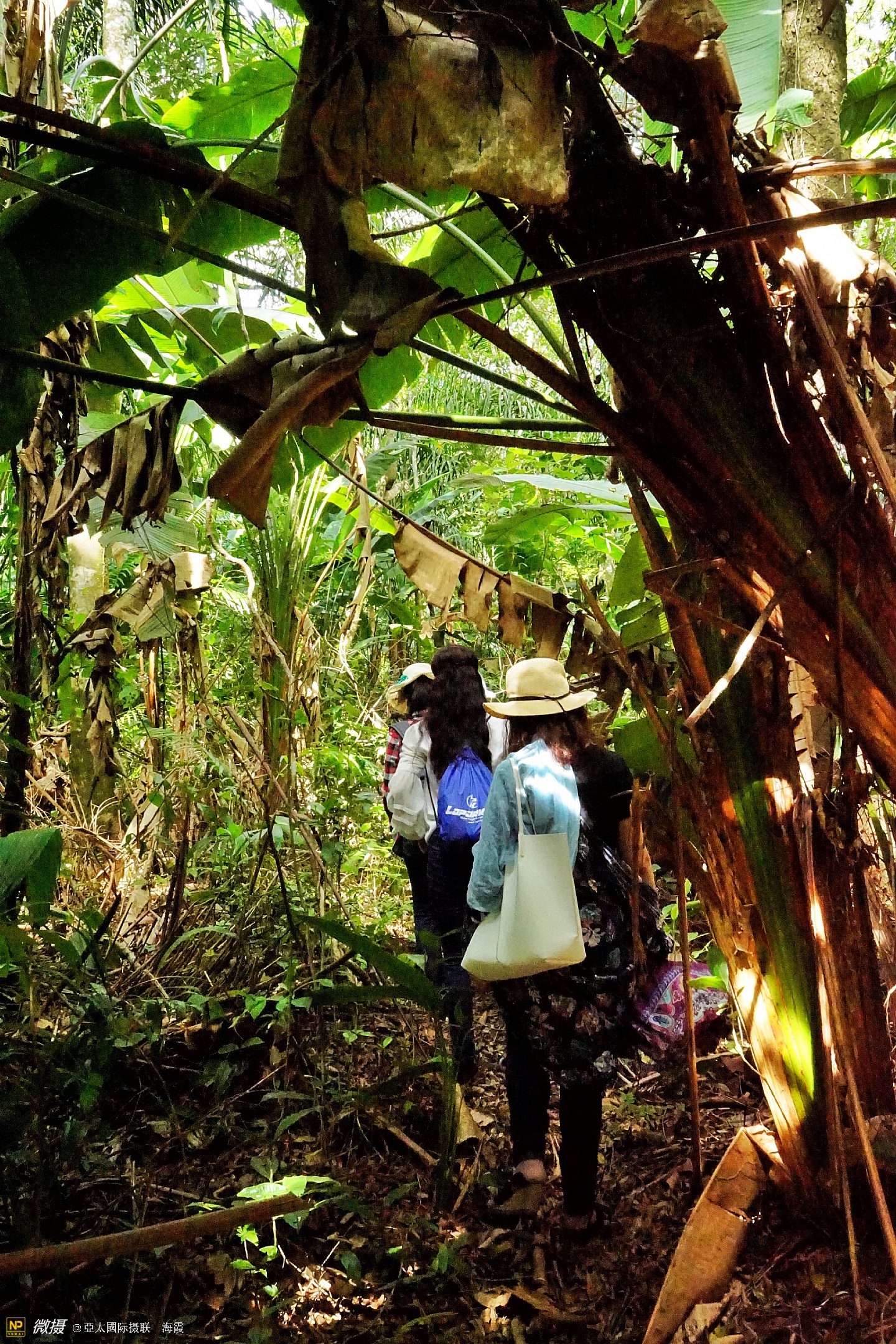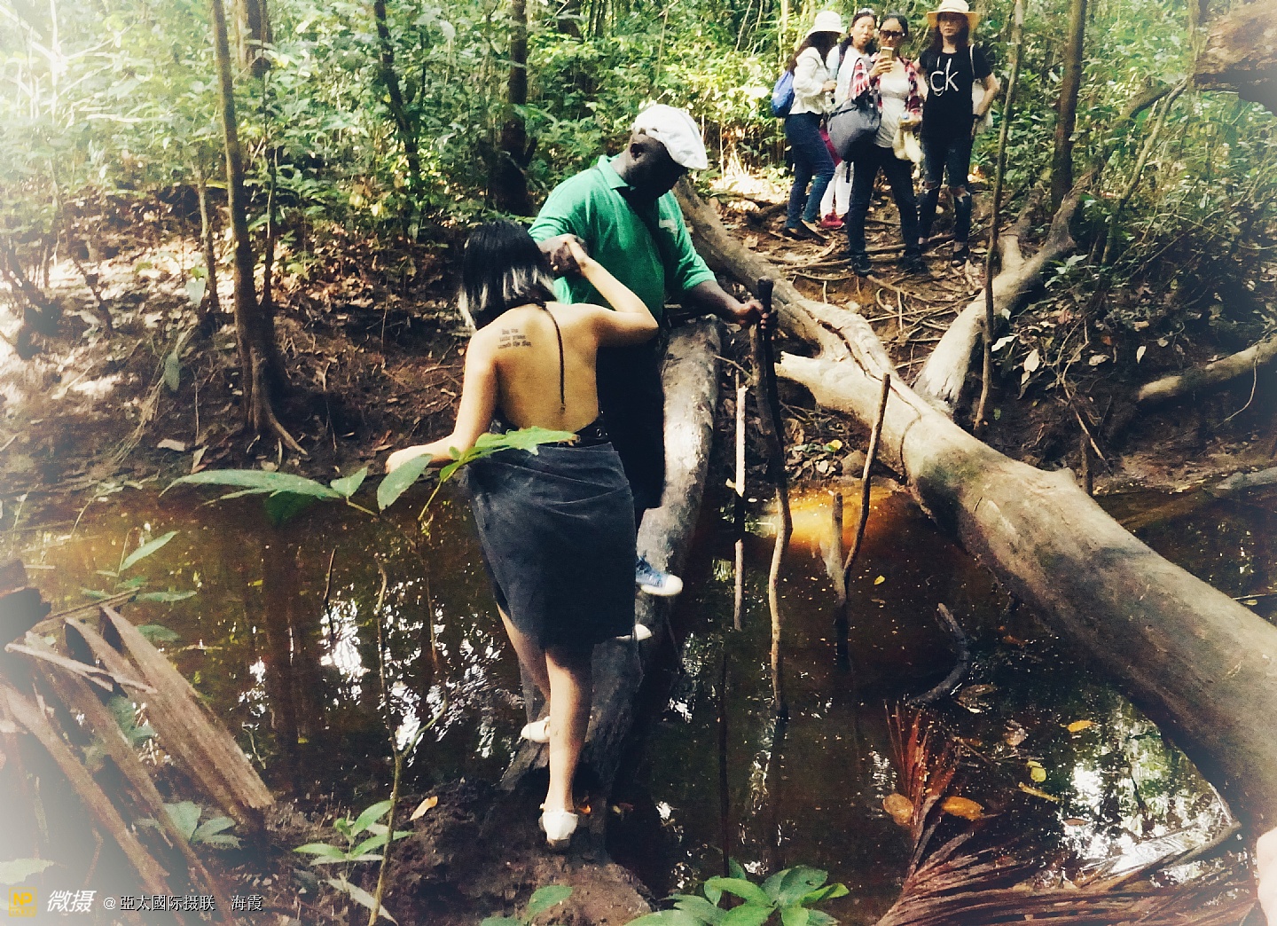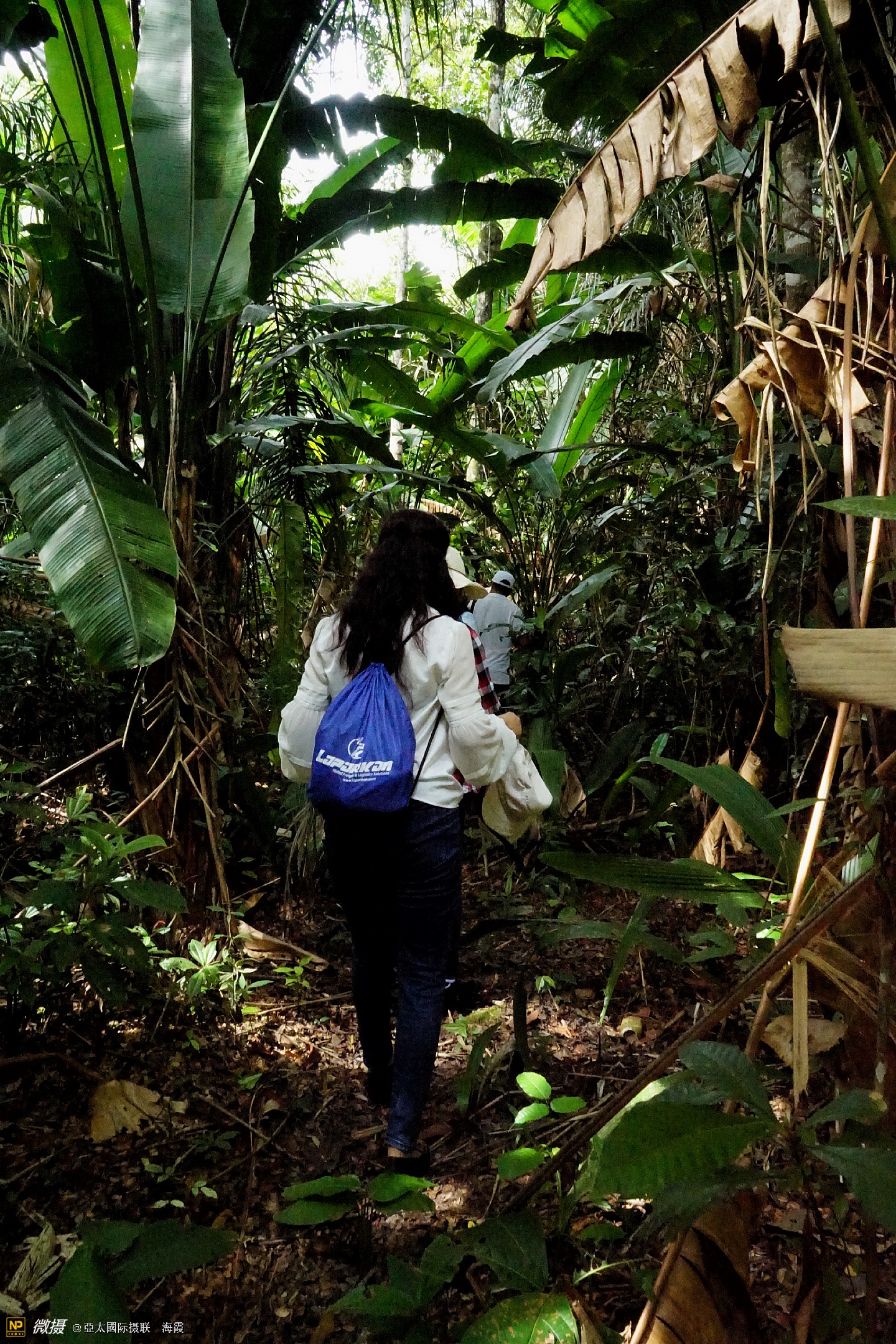 接下來就要去原始森林「散步」了,哈哈!這那是散步呀!就是去探險那,當地導遊說要走一個多小時,啊?本有點不太想去,大熱天的,后經導遊的劝说,我們就上路了。這真是一個原始的不能夠再原始的森林,里面只有一條狭窄的小路,甚至還要用刀一邊走一邊砍树枝,導遊帶着槍和刀,這時我有點害怕,心想為什麼要來這個鬼地方呢?萬一......不敢想了