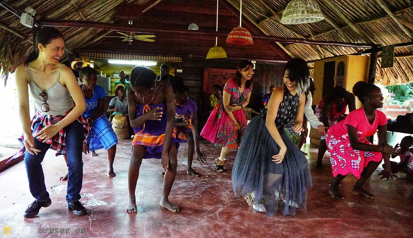 從原始森林散步回來後,我們又和當地Apintie鼓组成的文化舞蹈藝術團一起歡樂的跳起了當地舞蹈,他們所有乐器手和舞者都来自Santigron原住民。我們在歡樂的氣氛中圓滿結束了此次旅行。