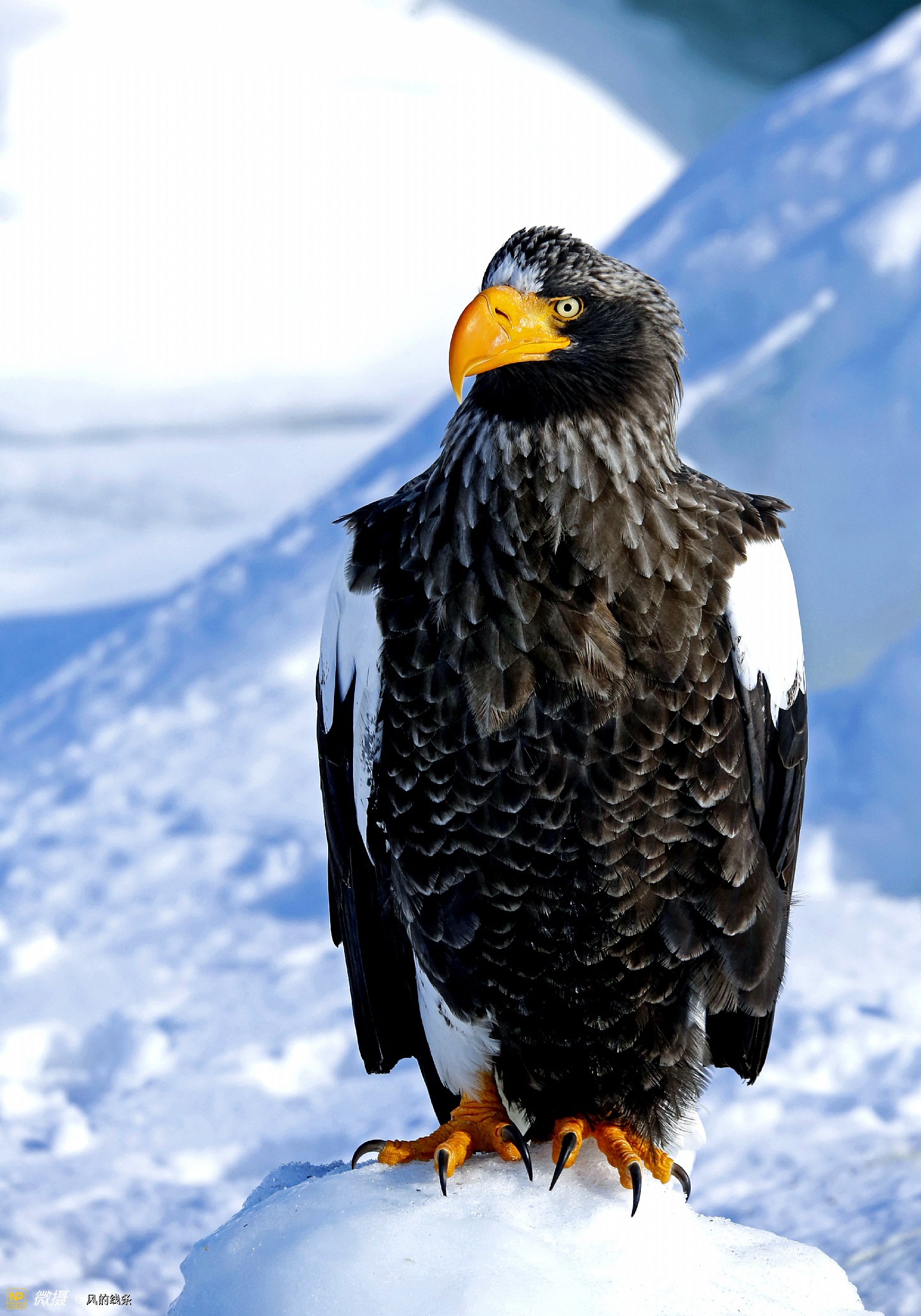 据百度:虎头海雕,特征为黄色的特大鸟喙,体型一般90-100厘米,翼展200-250厘米,体重在5-10千克之间。因鸟体有似虎斑的灰色纵纹因而得名虎头海雕