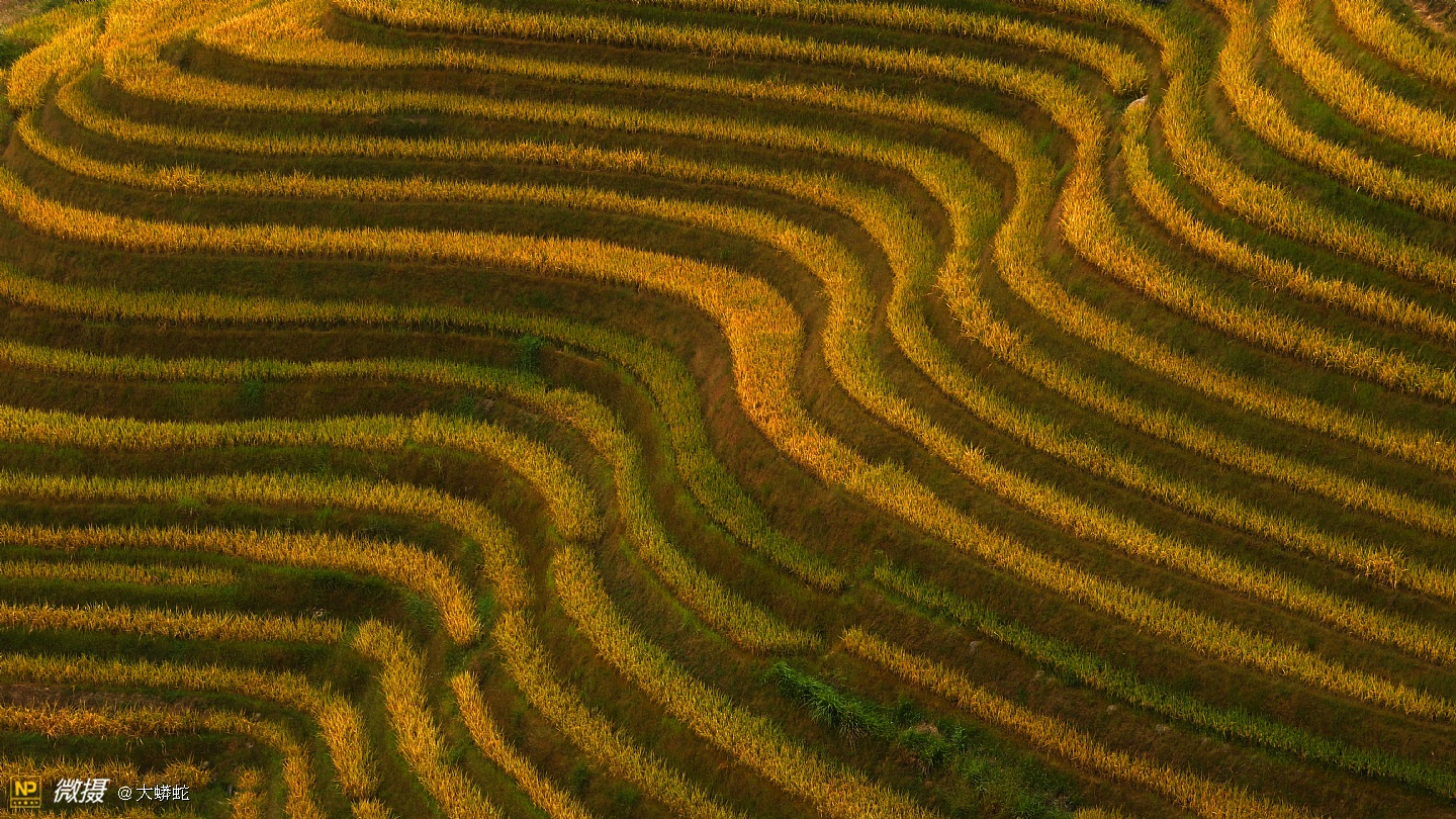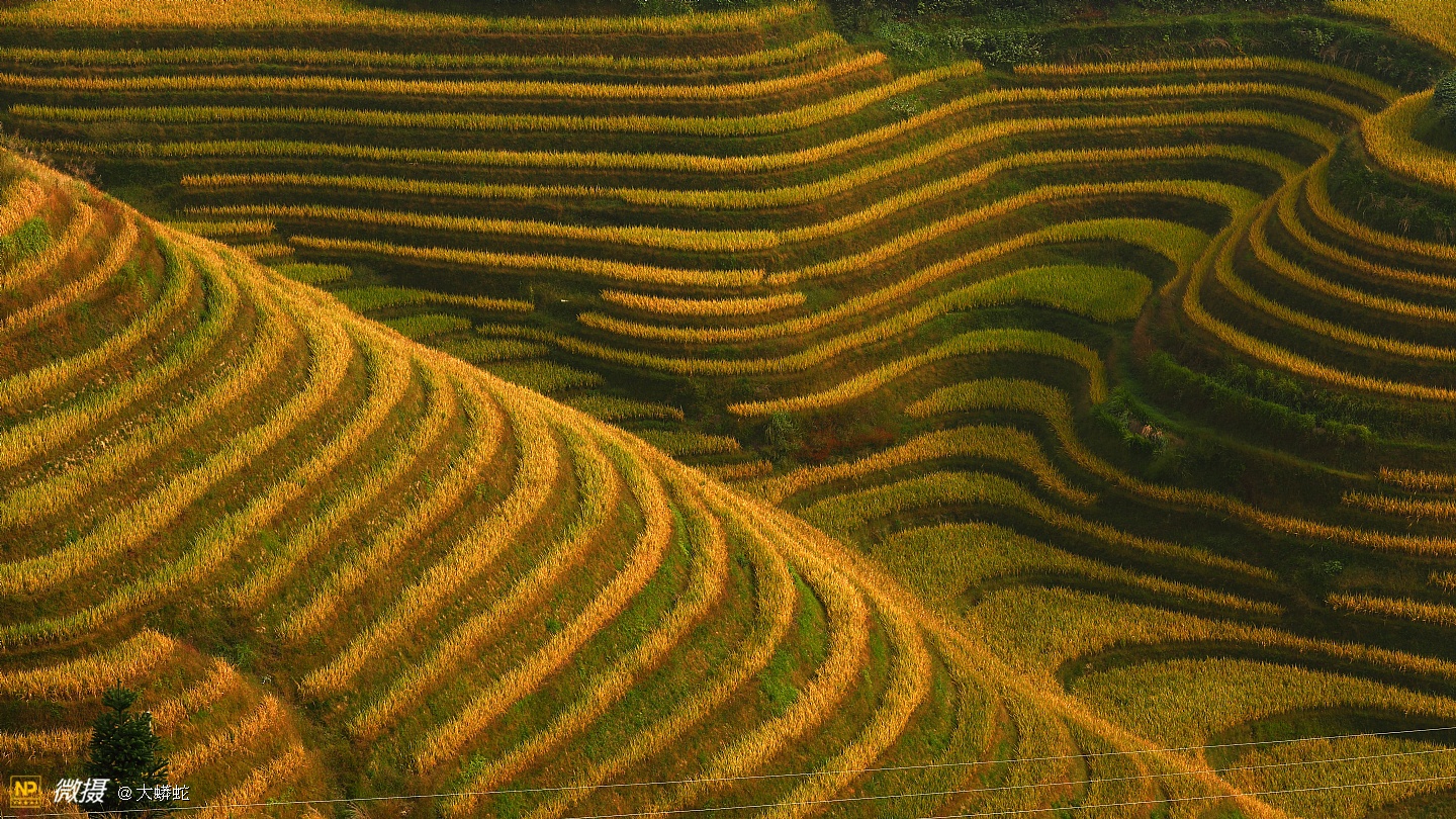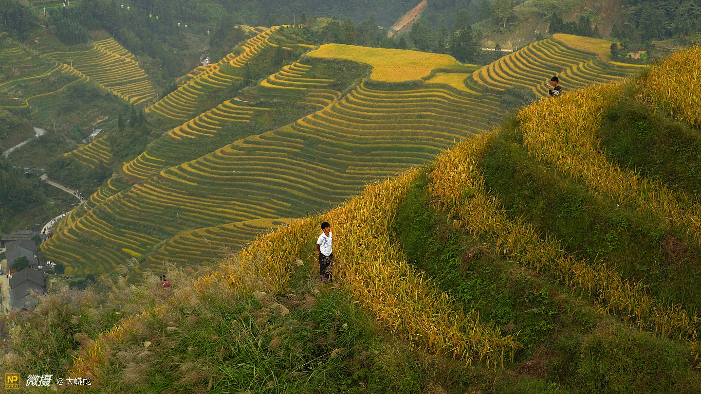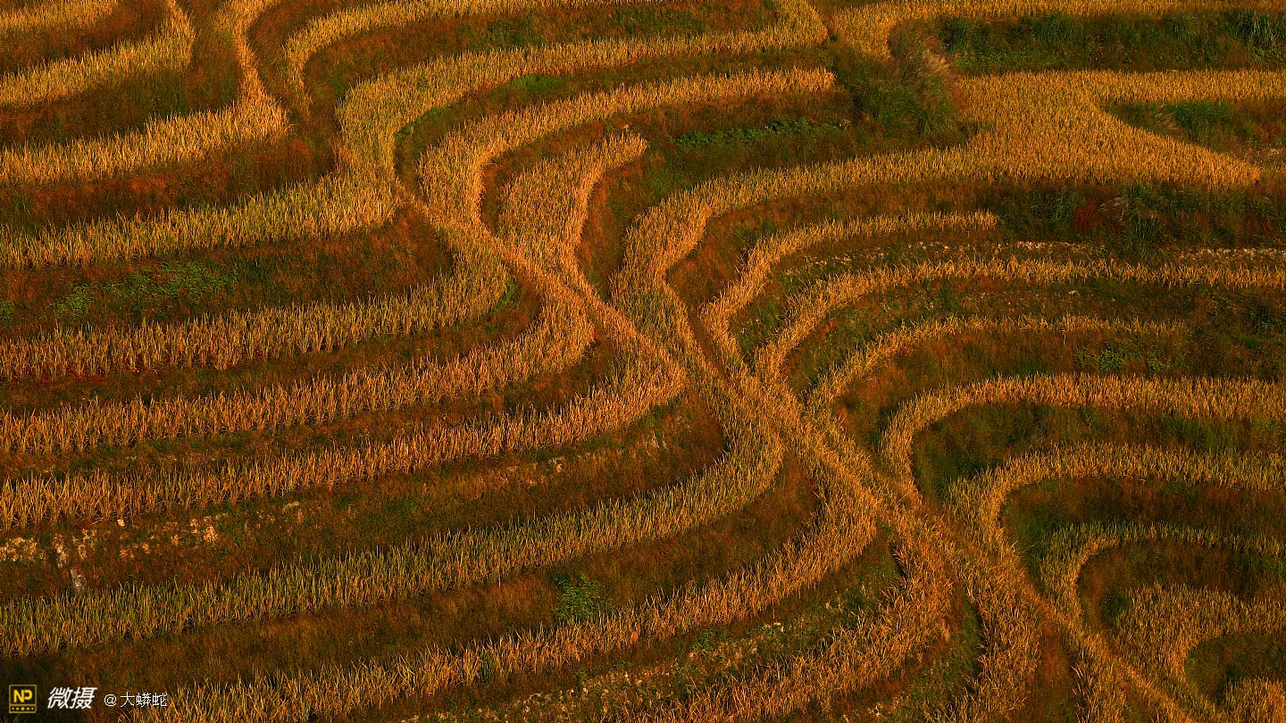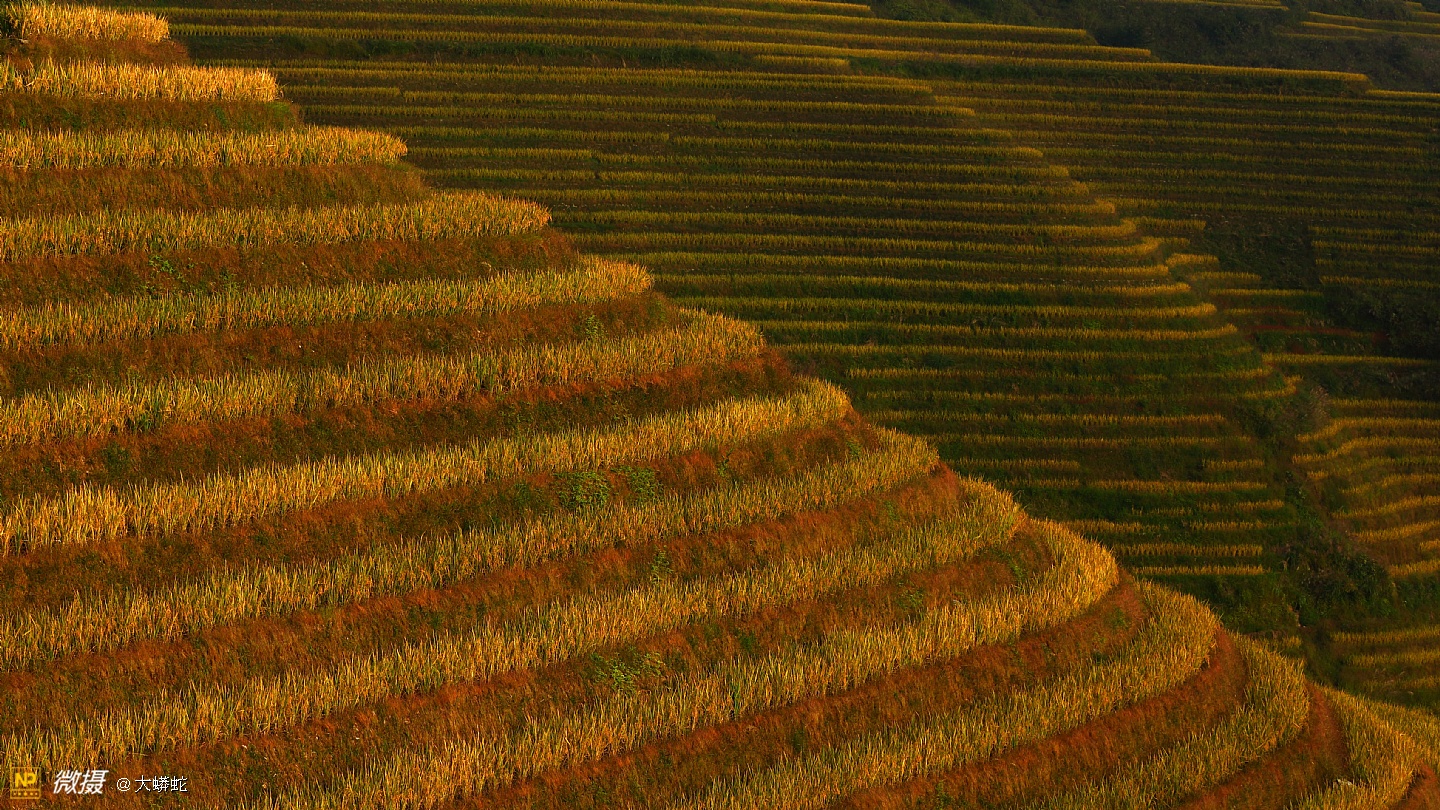 站在梯田的最高处放眼望去,只感觉到脚下层层叠叠的梯田如潮水般涨起,以排山倒海之势奔涌而来,组成一个纵横开阖、酣畅淋漓的梯田群体,形成一个张扬着力与美的梯田世界,呈现出一种粗犷的美,令人震撼。