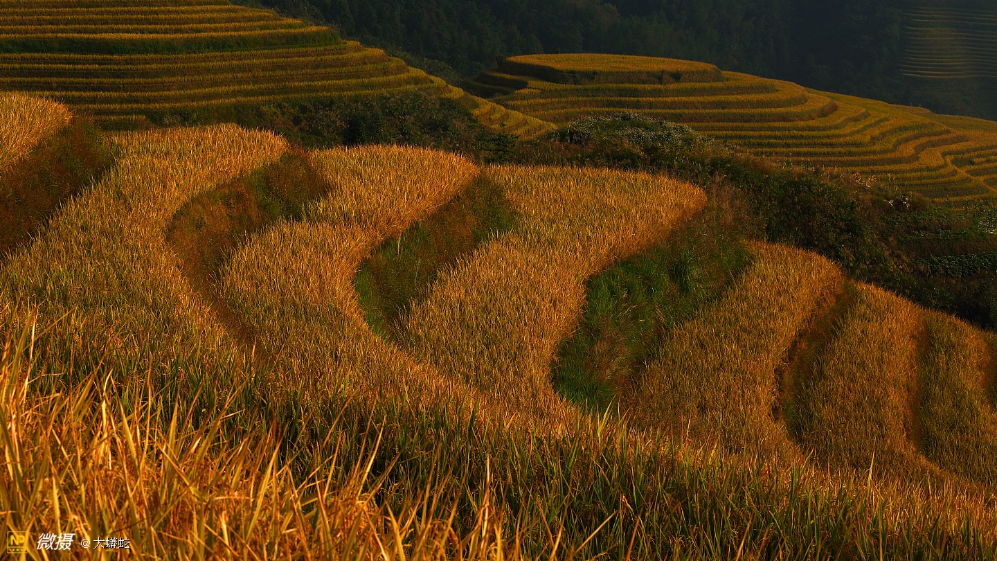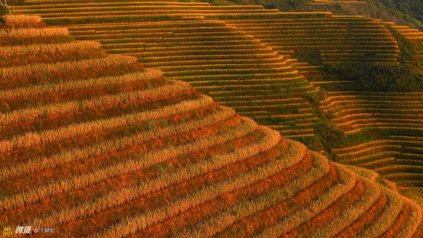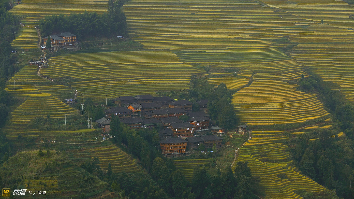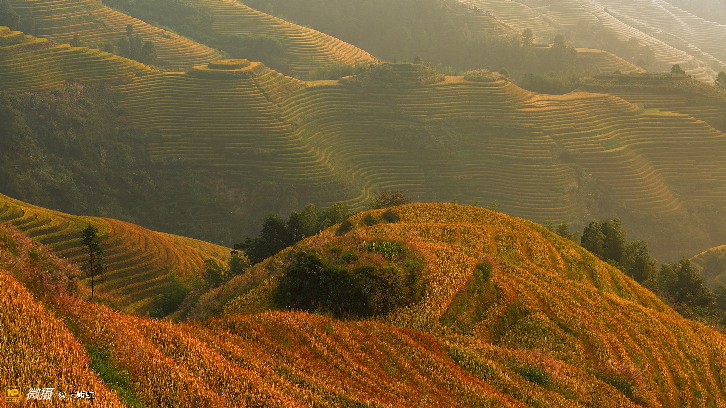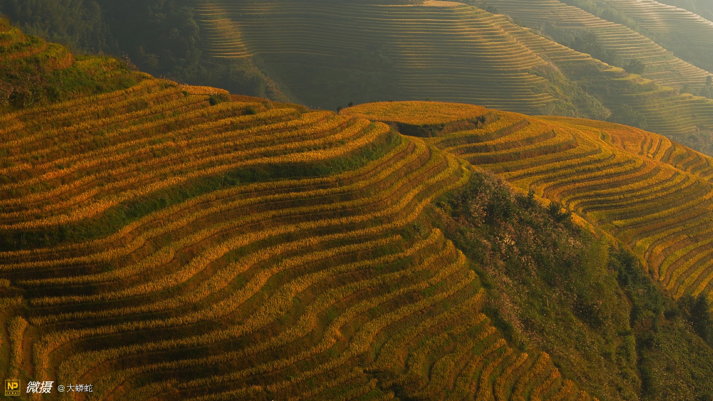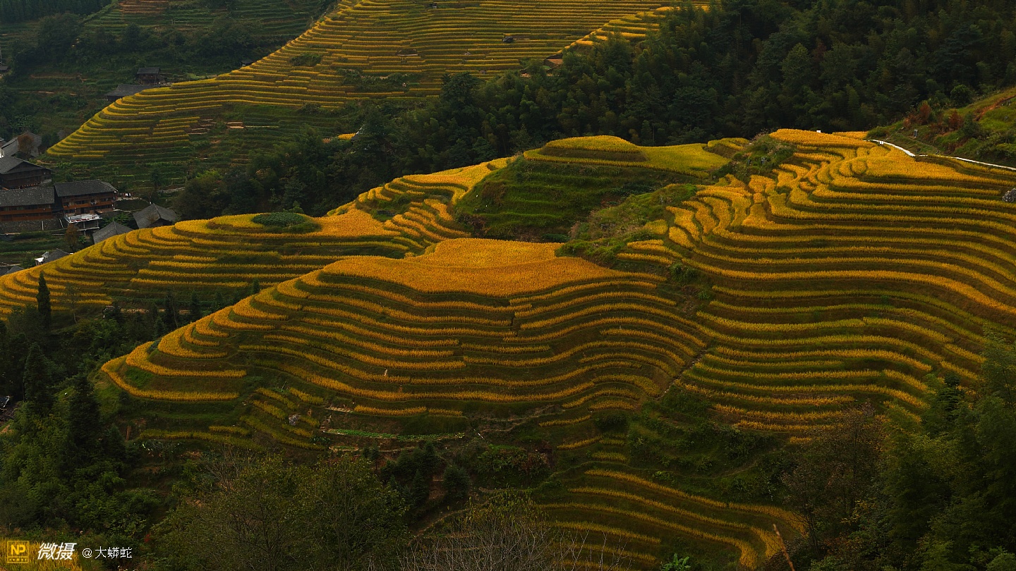 站在梯田的最高处放眼望去,只感觉到脚下层层叠叠的梯田如潮水般涨起,以排山倒海之势奔涌而来,组成一个纵横开阖、酣畅淋漓的梯田群体,形成一个张扬着力与美的梯田世界,呈现出一种粗犷的美,令人震撼。