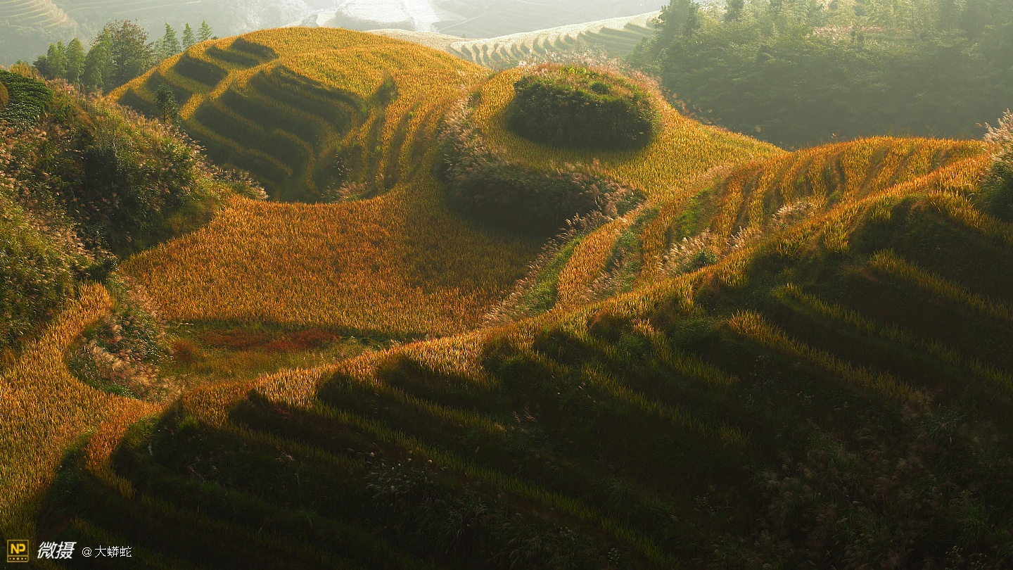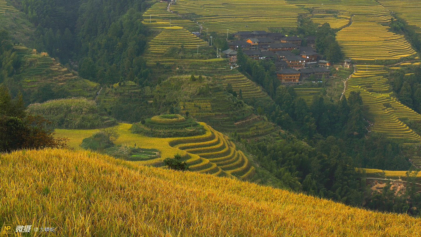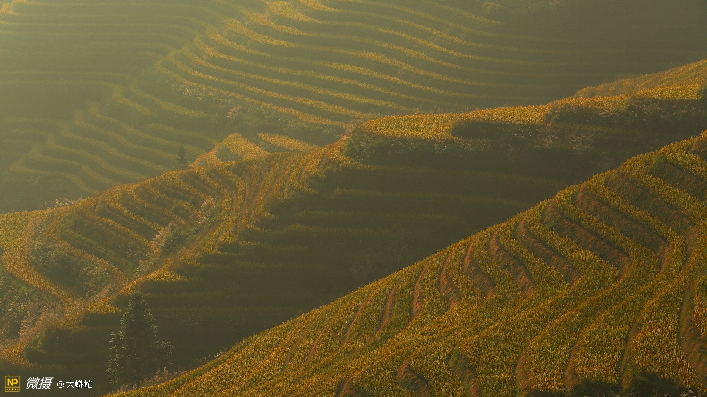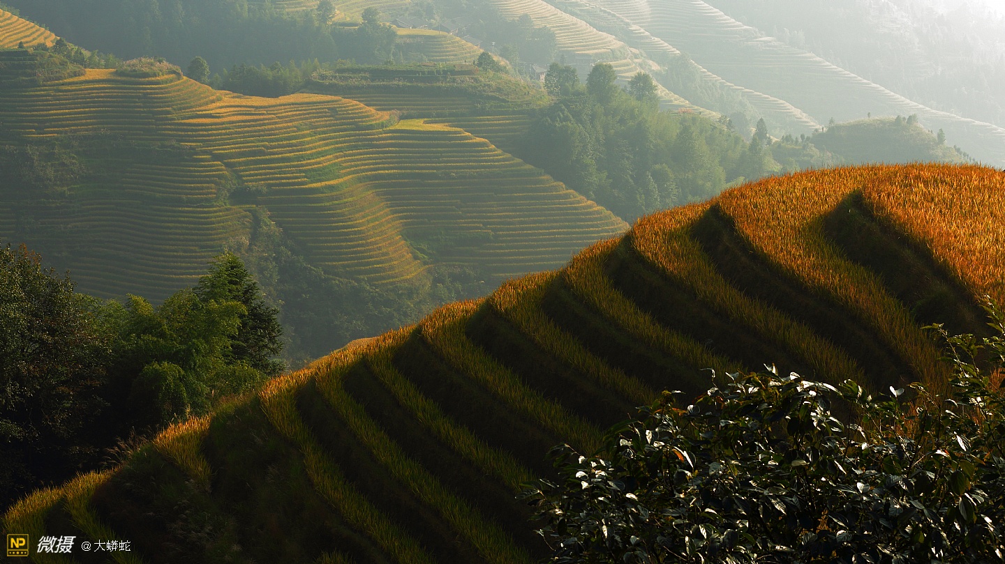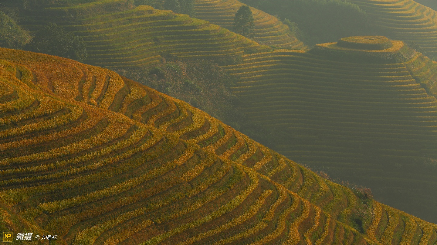 站在梯田的最高处放眼望去,只感觉到脚下层层叠叠的梯田如潮水般涨起,以排山倒海之势奔涌而来,组成一个纵横开阖、酣畅淋漓的梯田群体,形成一个张扬着力与美的梯田世界,呈现出一种粗犷的美,令人震撼。