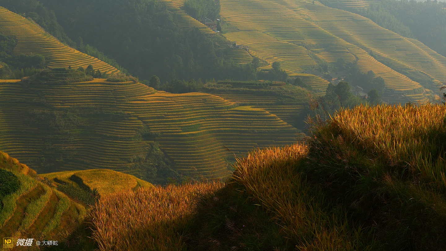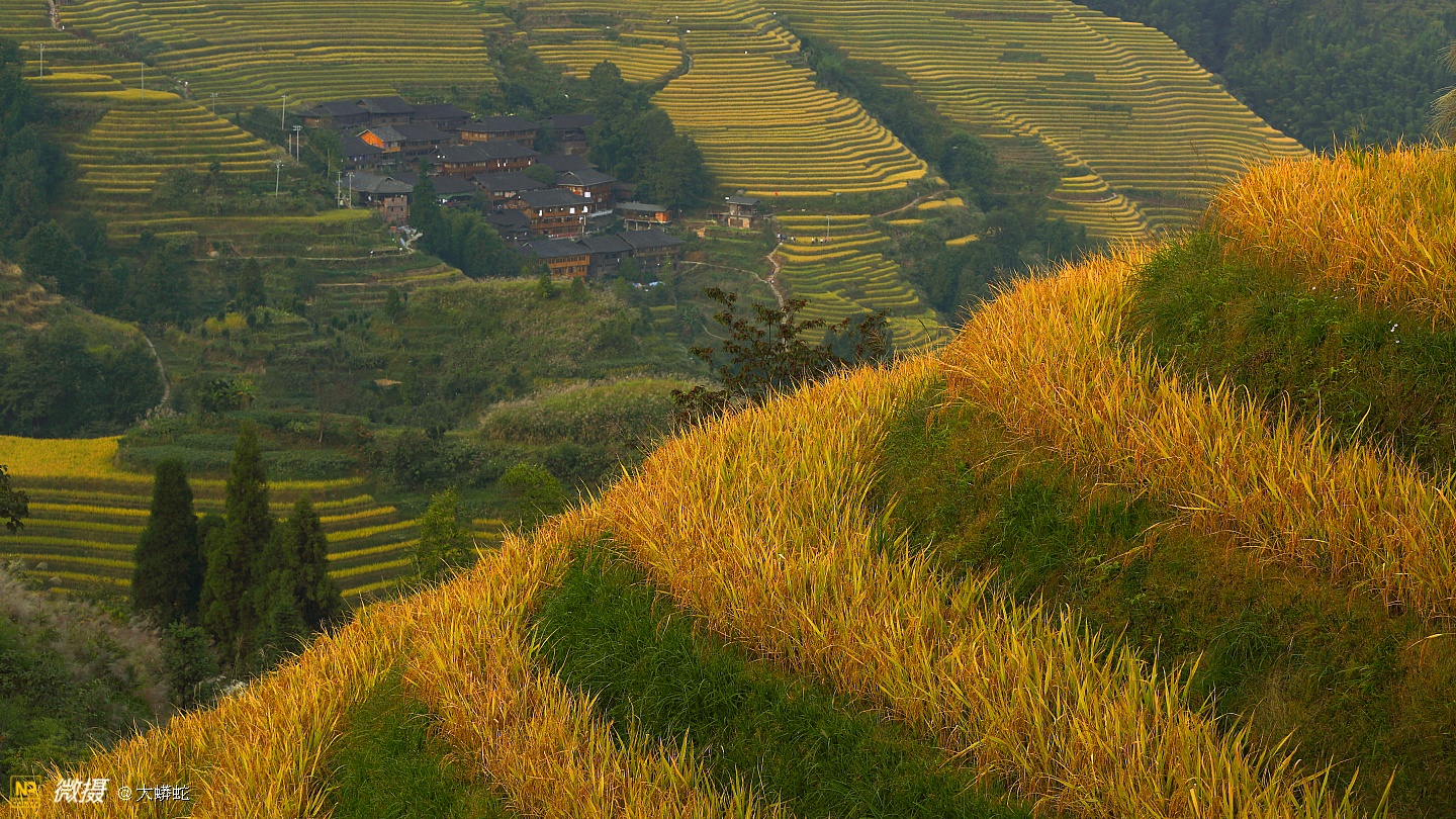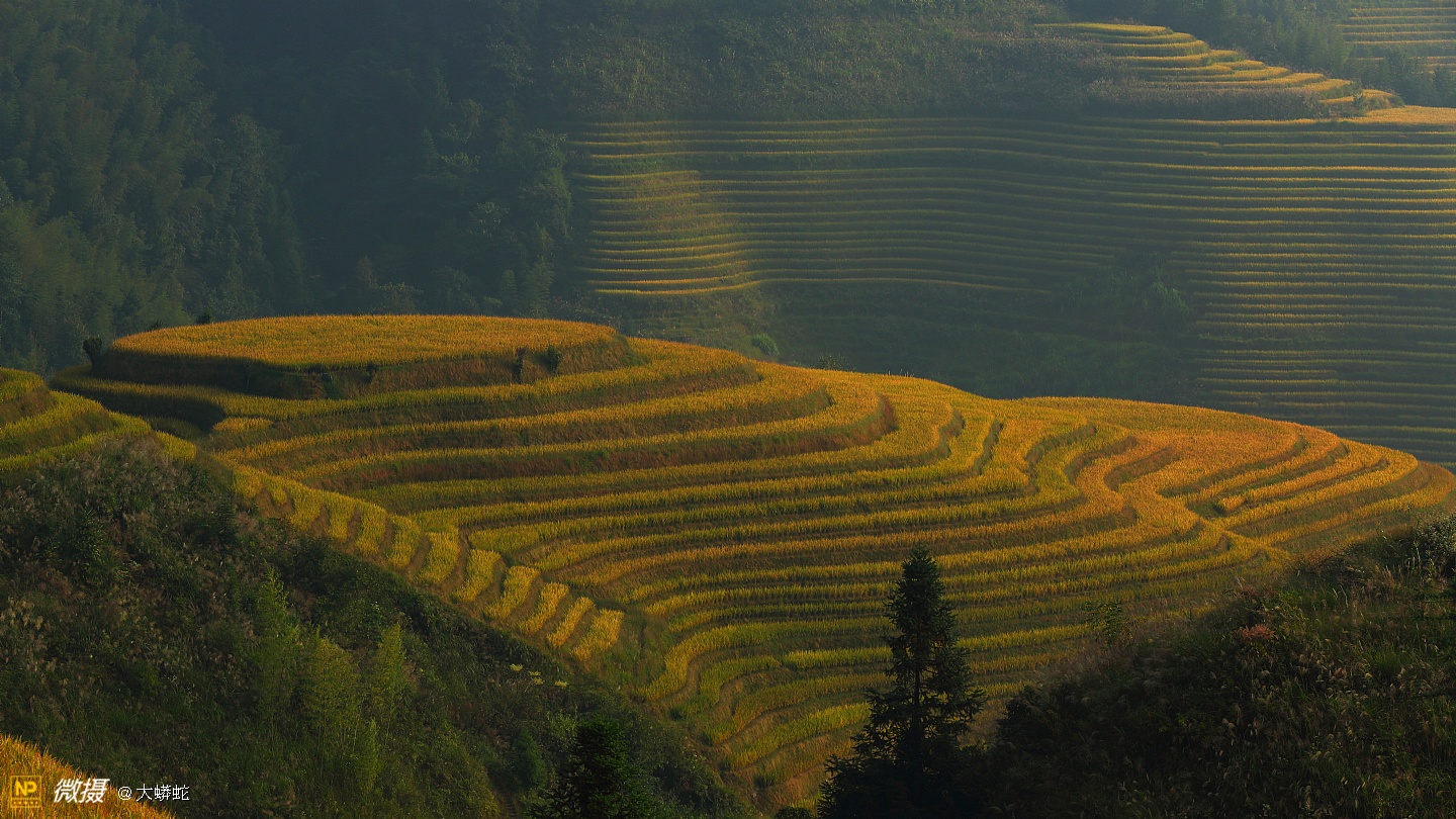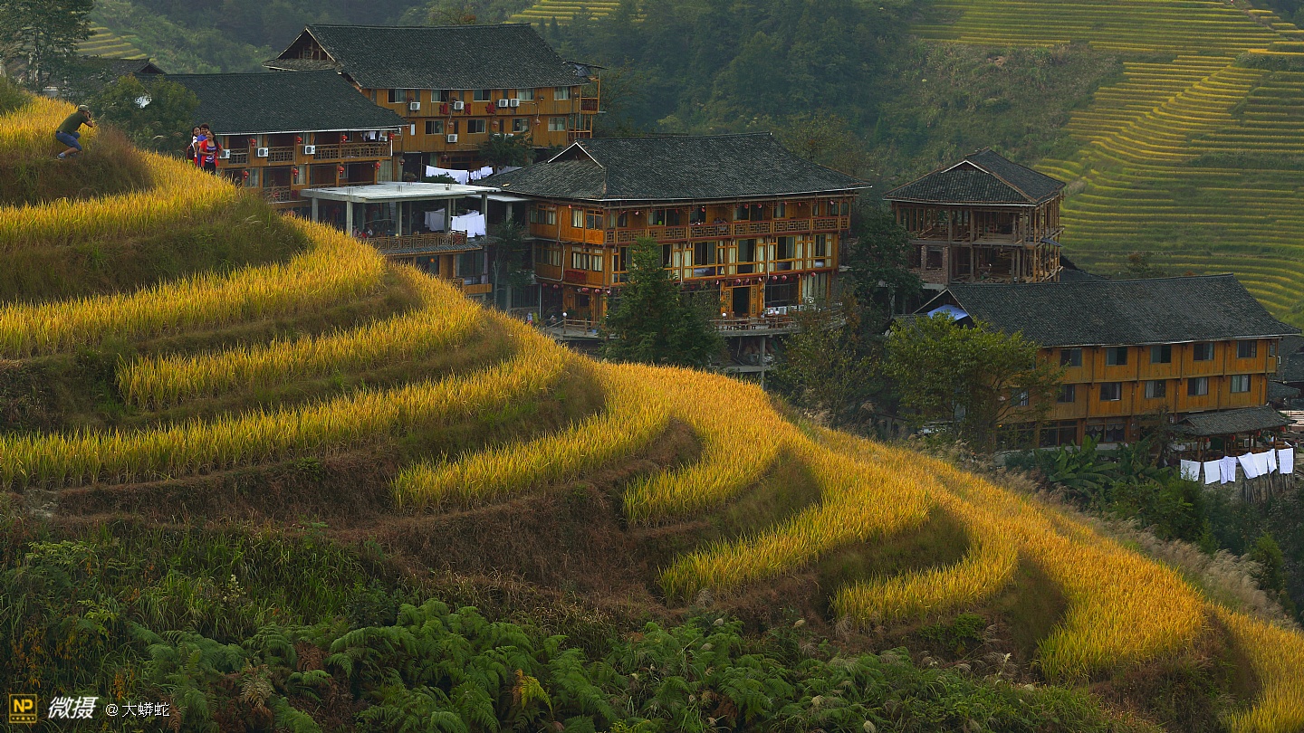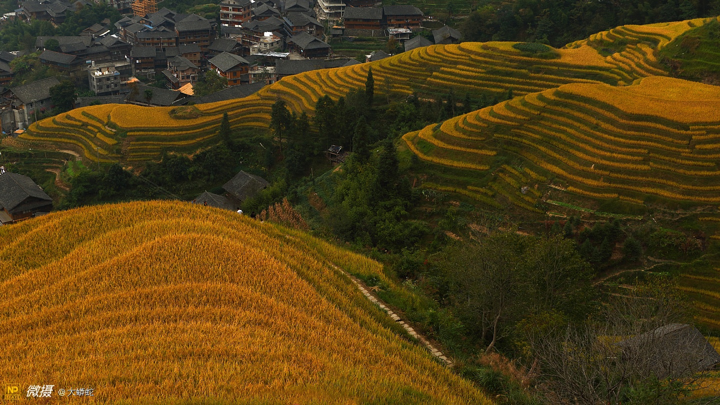 站在梯田的最高处放眼望去,只感觉到脚下层层叠叠的梯田如潮水般涨起,以排山倒海之势奔涌而来,组成一个纵横开阖、酣畅淋漓的梯田群体,形成一个张扬着力与美的梯田世界,呈现出一种粗犷的美,令人震撼。