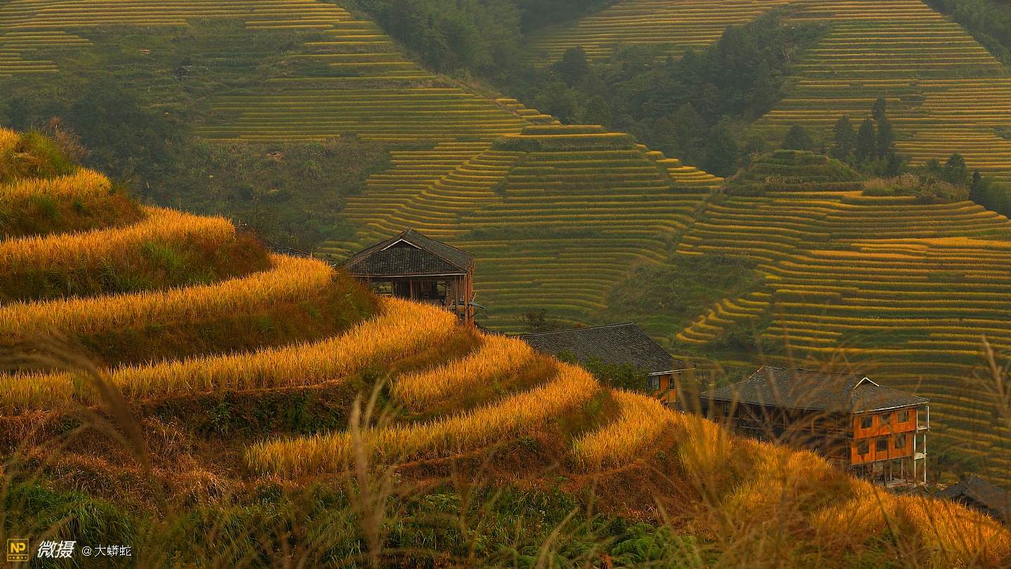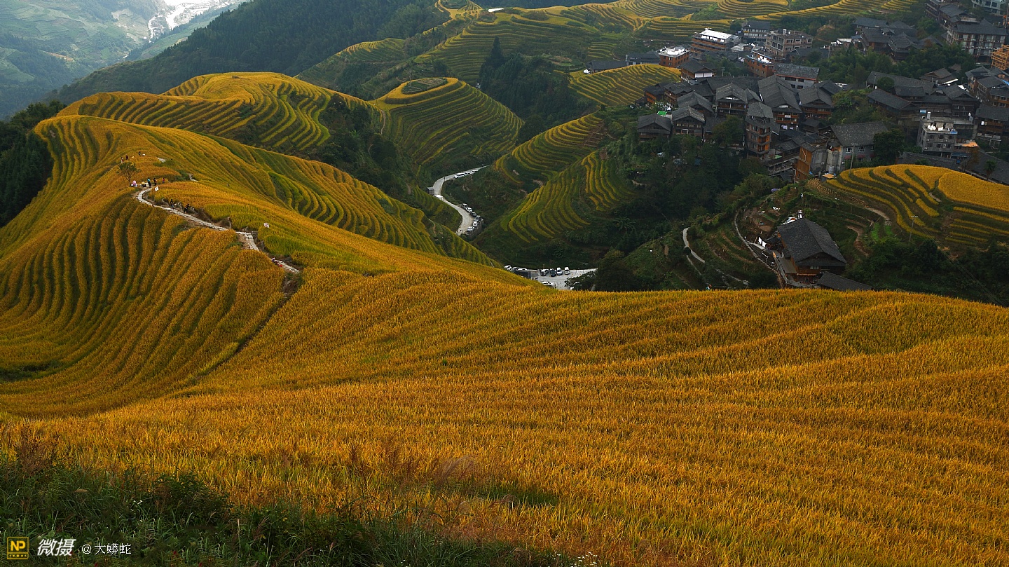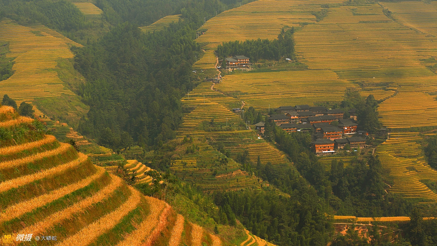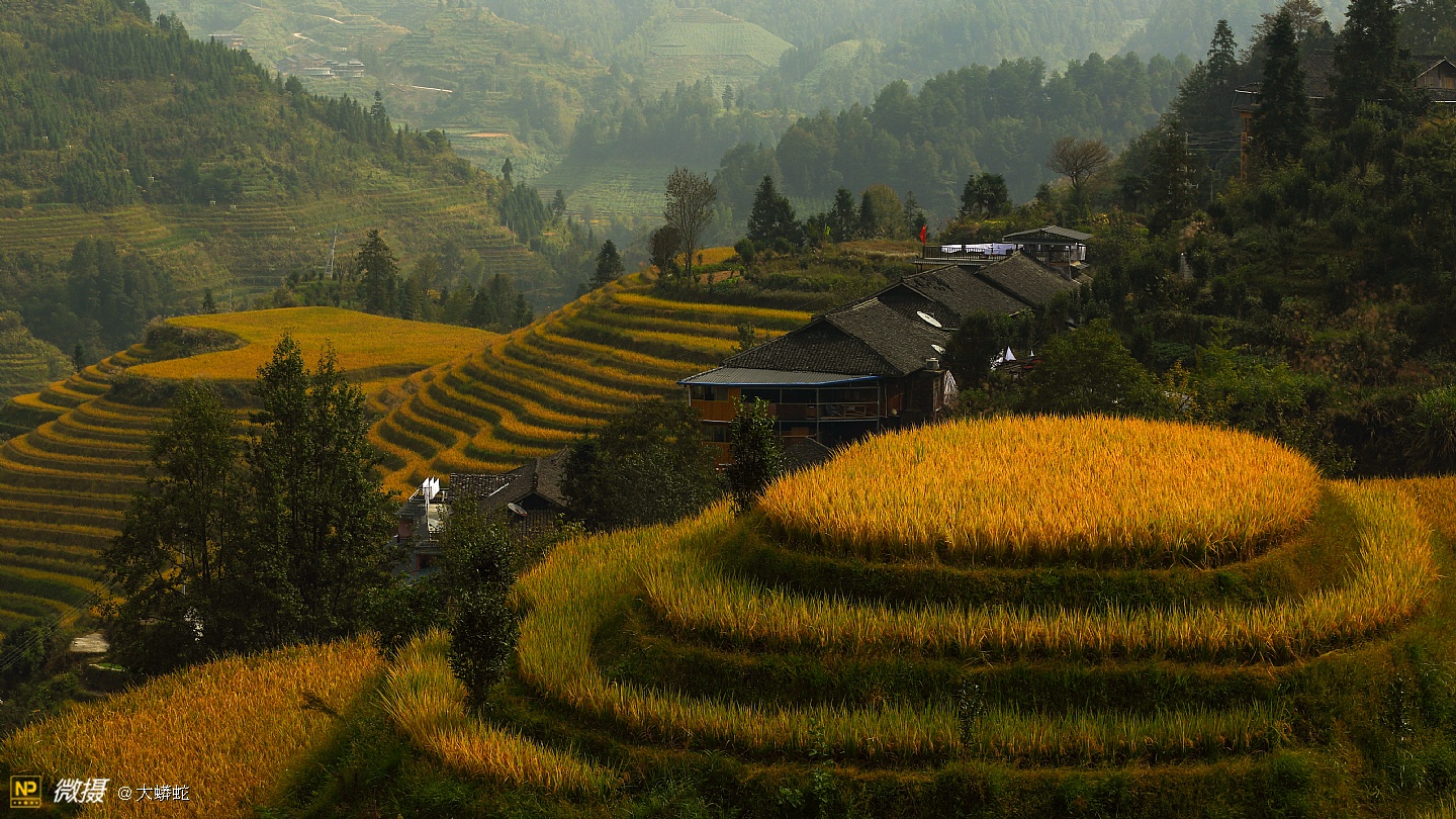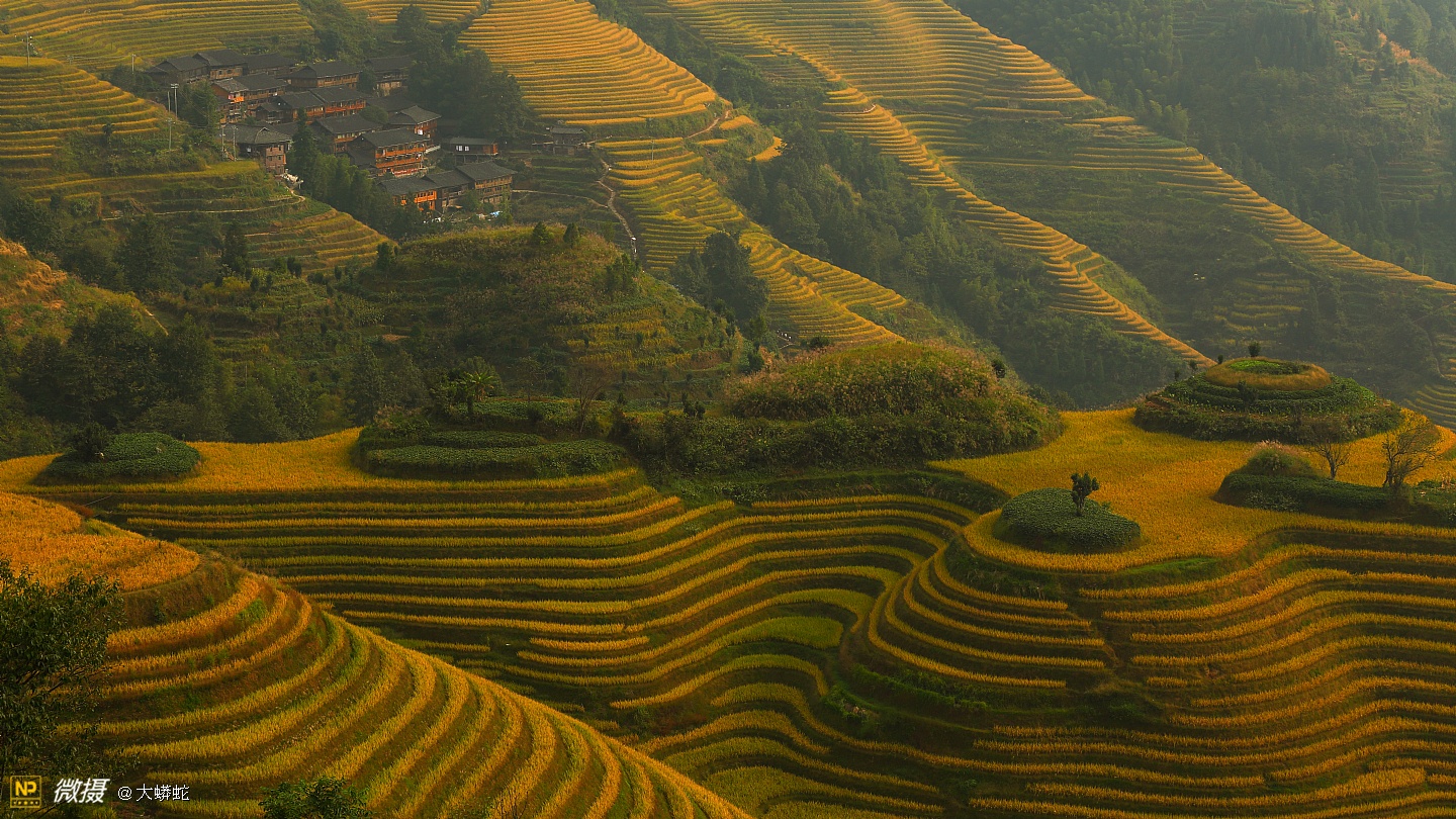 站在梯田的最高处放眼望去,只感觉到脚下层层叠叠的梯田如潮水般涨起,以排山倒海之势奔涌而来,组成一个纵横开阖、酣畅淋漓的梯田群体,形成一个张扬着力与美的梯田世界,呈现出一种粗犷的美,令人震撼。