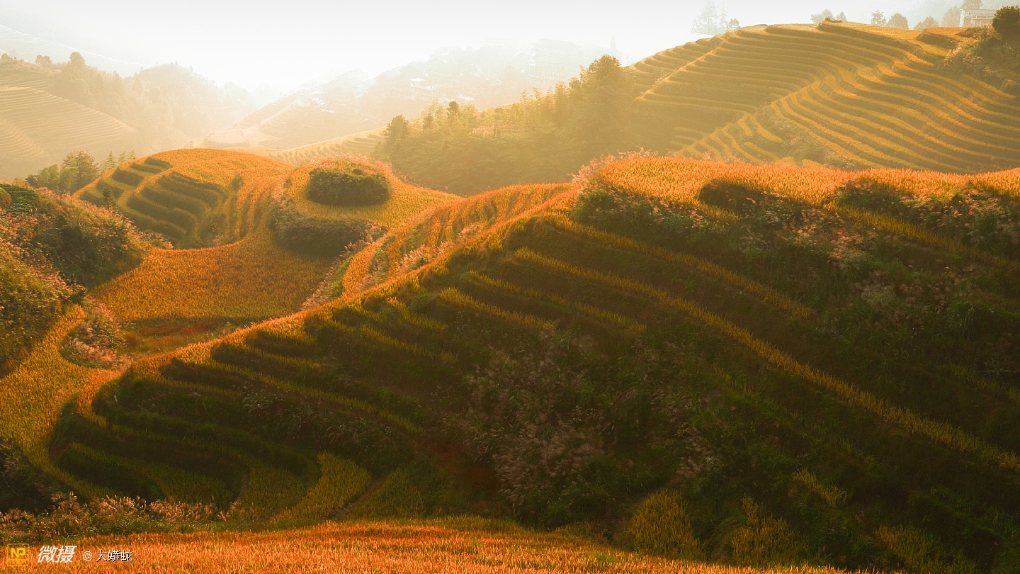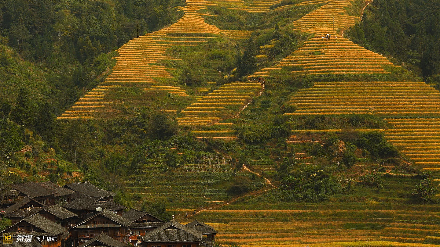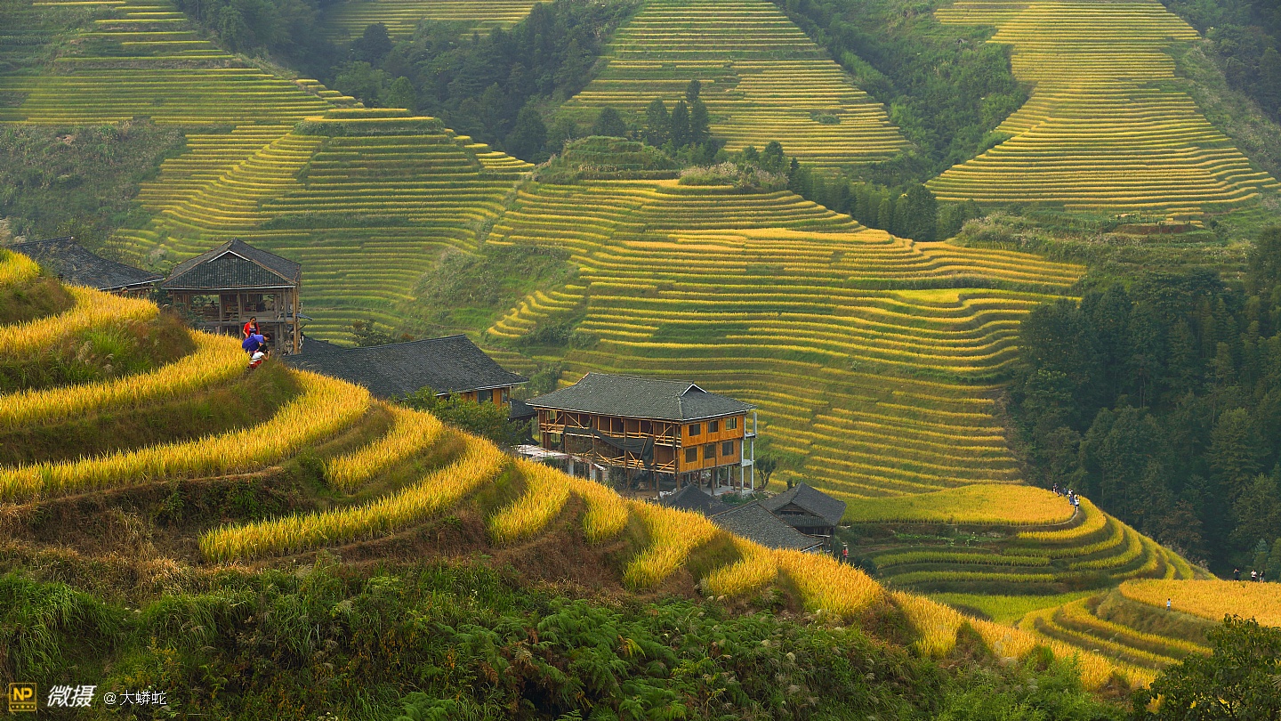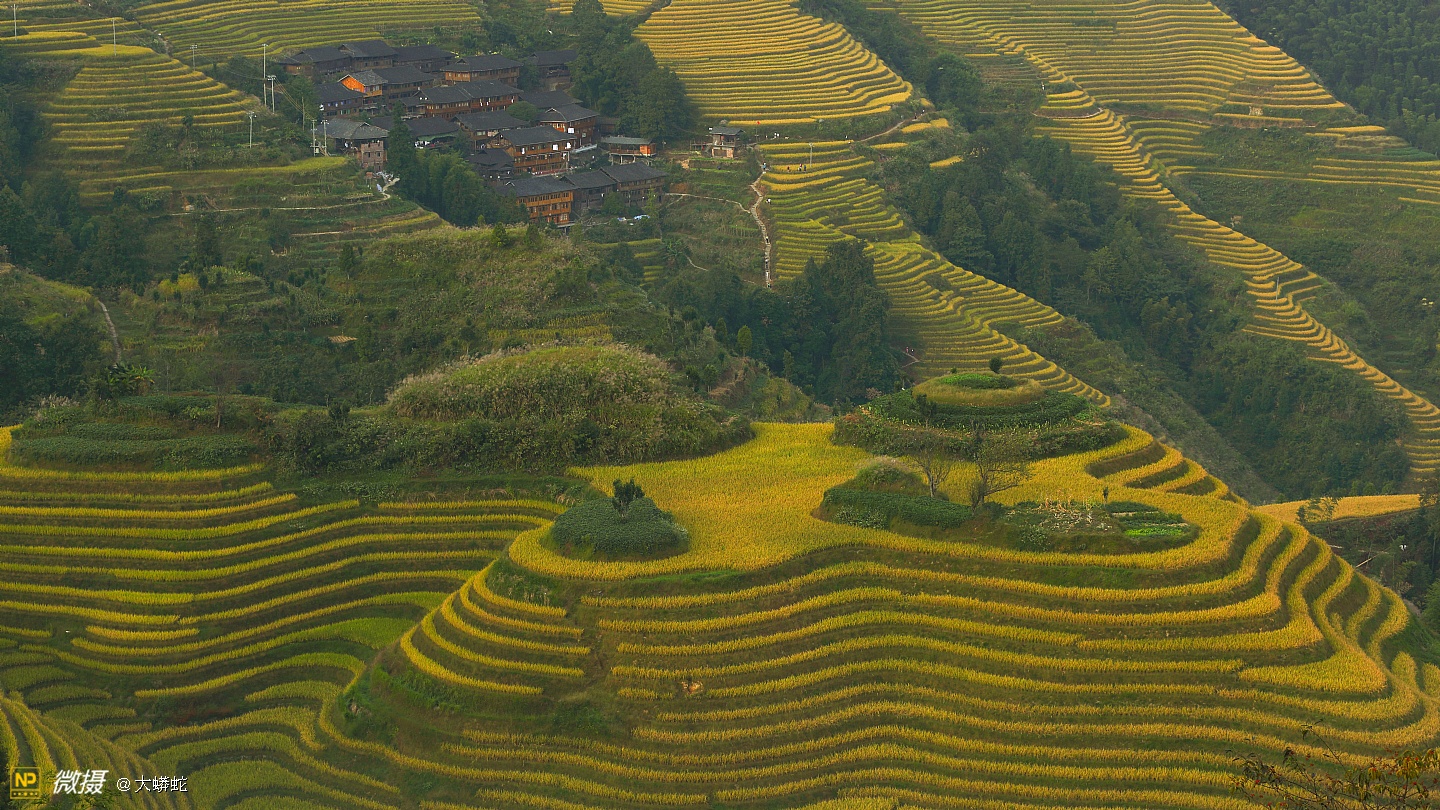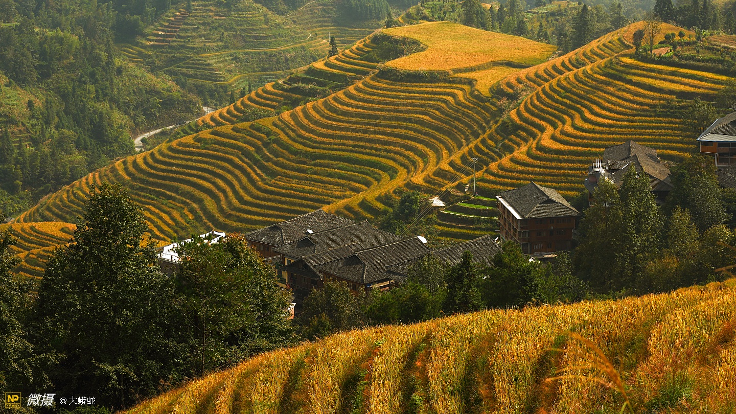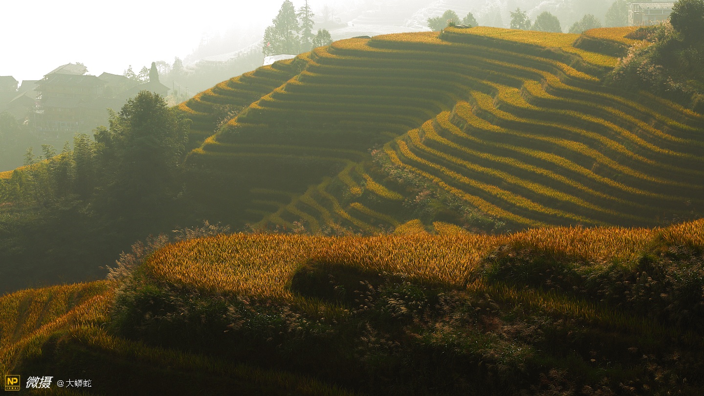站在梯田的最高处放眼望去,只感觉到脚下层层叠叠的梯田如潮水般涨起,以排山倒海之势奔涌而来,组成一个纵横开阖、酣畅淋漓的梯田群体,形成一个张扬着力与美的梯田世界,呈现出一种粗犷的美,令人震撼。