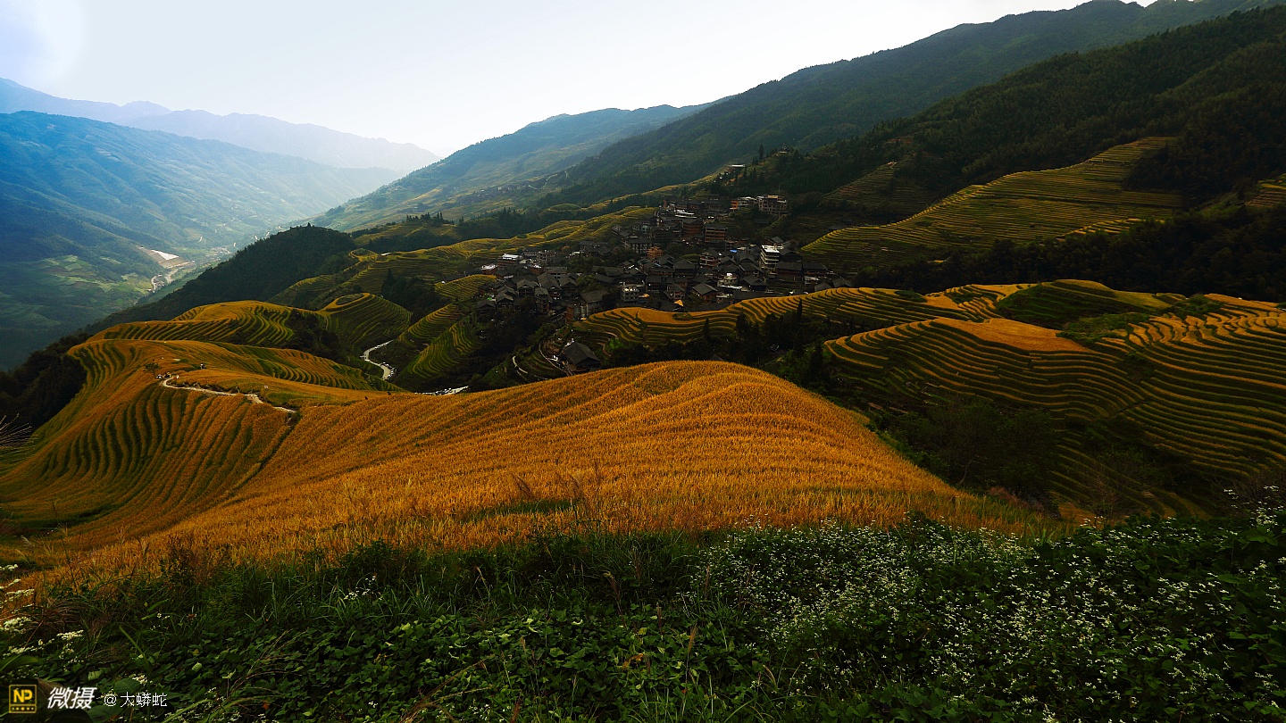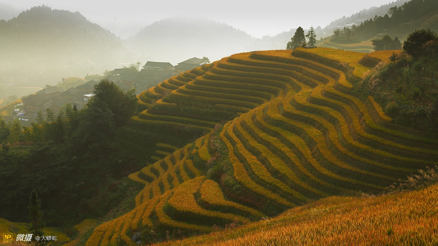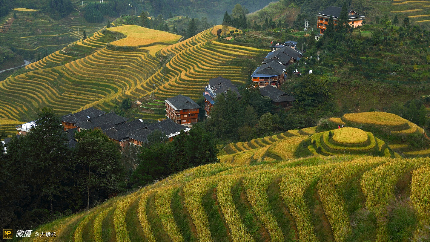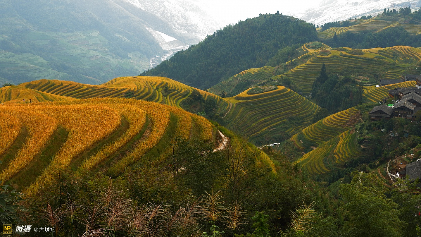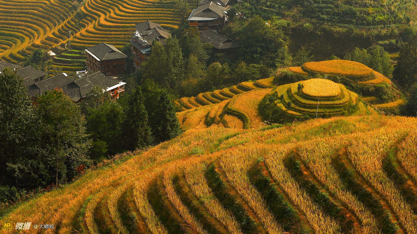 站在梯田的最高处放眼望去,只感觉到脚下层层叠叠的梯田如潮水般涨起,以排山倒海之势奔涌而来,组成一个纵横开阖、酣畅淋漓的梯田群体,形成一个张扬着力与美的梯田世界,呈现出一种粗犷的美,令人震撼。