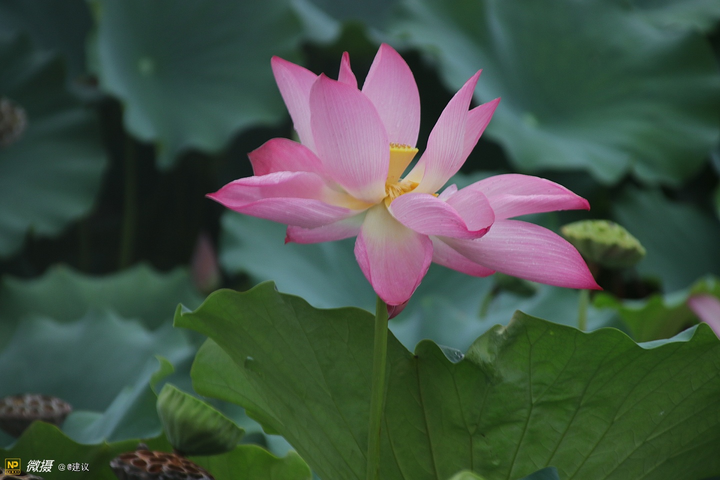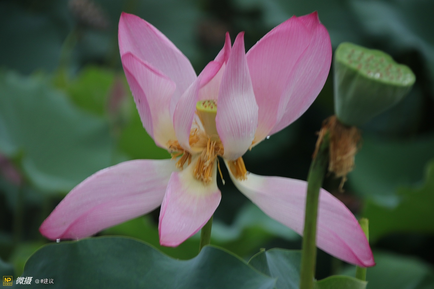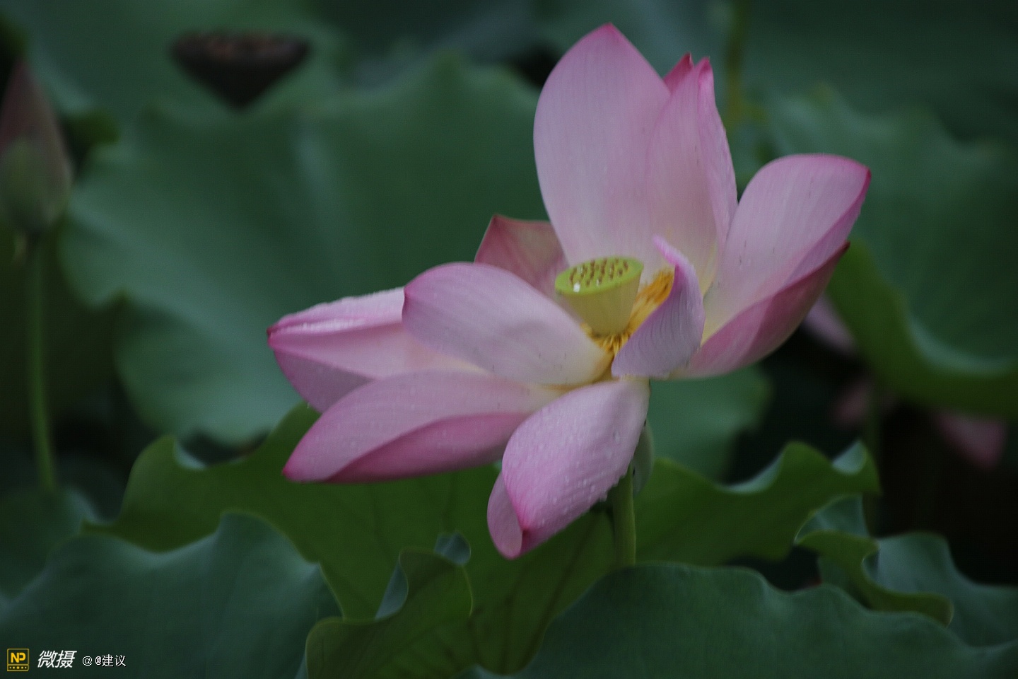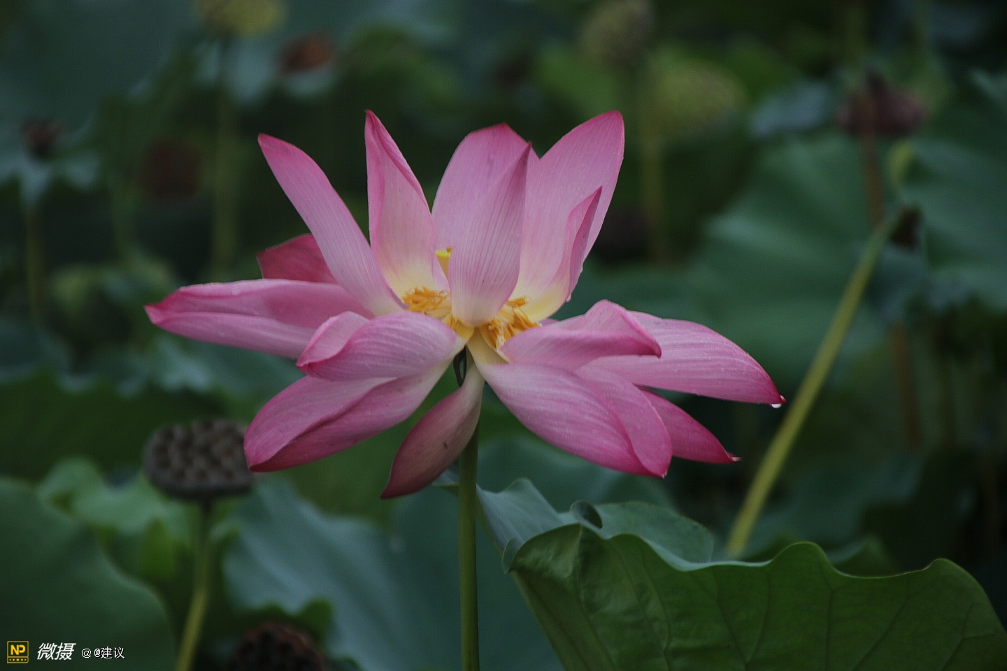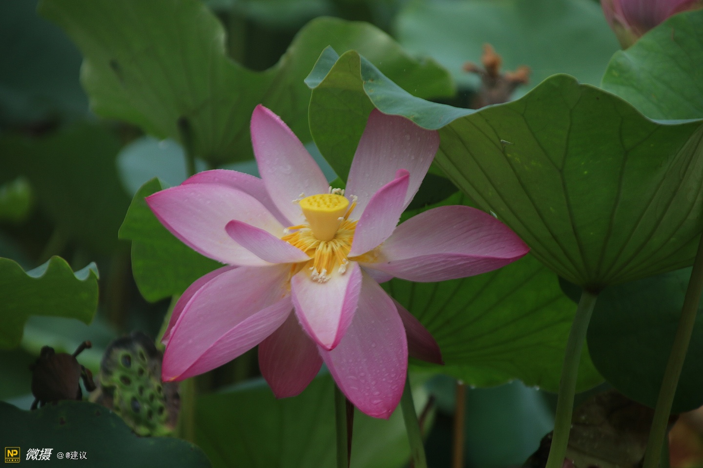 秋日的荷塘,水波漾漾,那铺满水面的荷尽管有点儿昏黄,而那缀满荷叶的露珠,在朝阳下你依然绽放着水晶宝气,绦绦绿波。如此美丽的山塘不敢说叹为观止,也足以令人流连忘返,久久难忘。