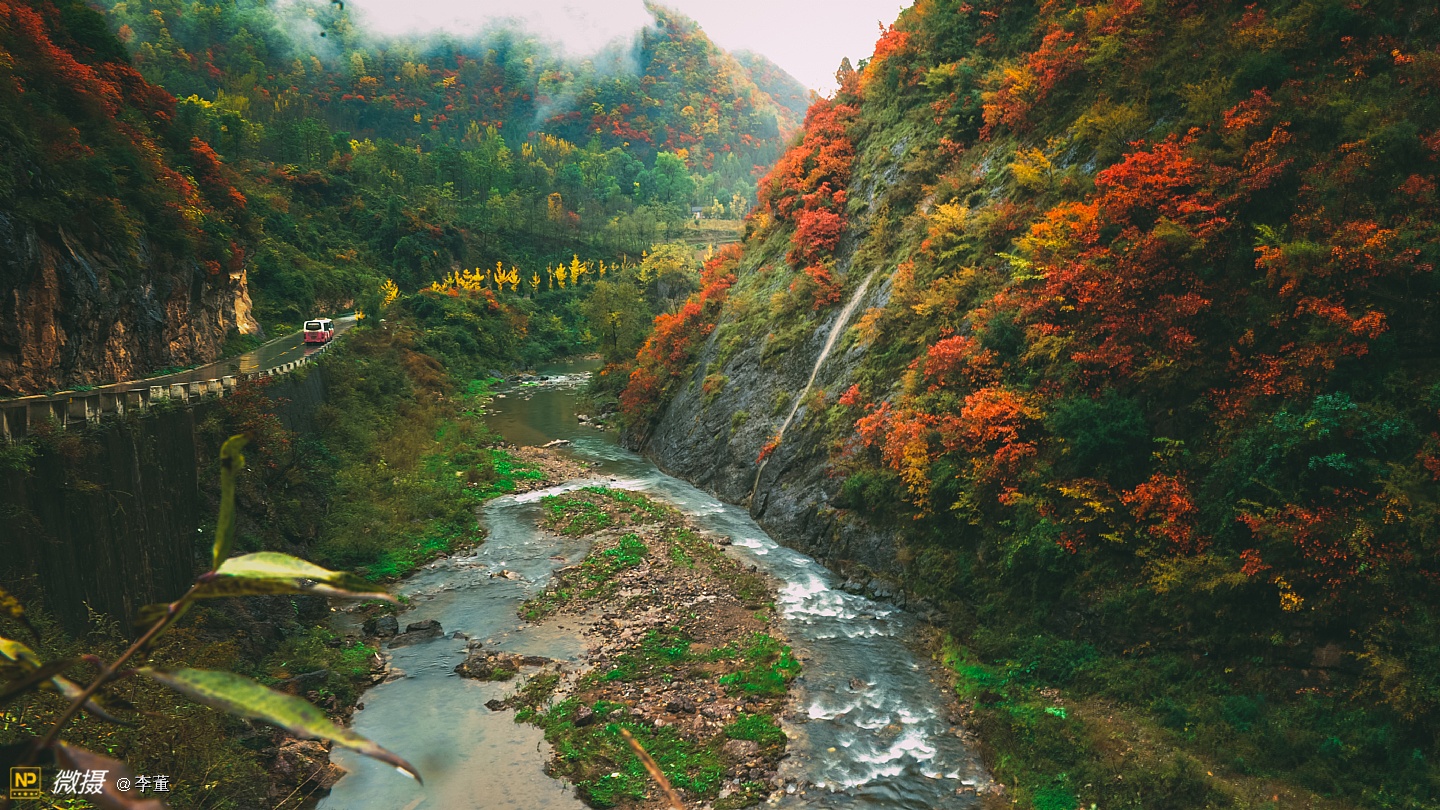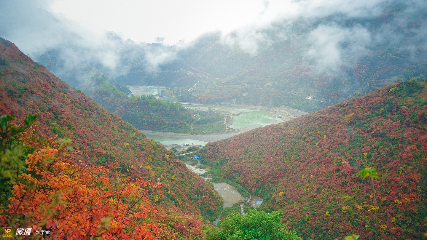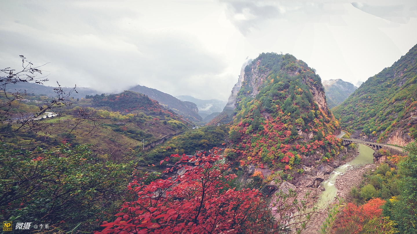 深秋季节的陇南两当,满山遍野都被绚丽的色彩包围着,层林尽染,色彩斑斓,清晨,薄雾还氤氲在淡彩的山间,当走在云屏深处,宁静悠远的乡村小路上,两边的山峦层叠交错,无尽蔓延,溪水随山根蜿蜒而下,轻柔缓淌,宛如一幅多彩水墨画韵味深长。绚丽的色彩,多情的目光和无垠的秋色,着实让人流连忘返。仰天高,俯水清,瞻山间缭绕的雾气,让人不禁感谢大自然的馈礼,陶醉于这美景之中,似乎忘了还在路上行走。