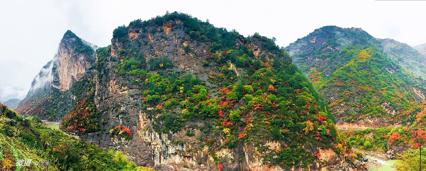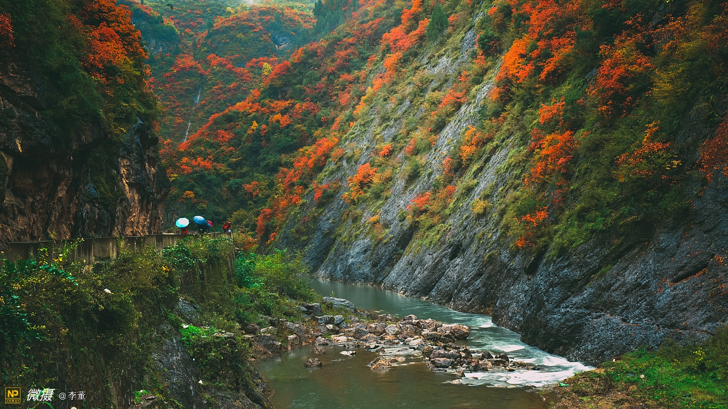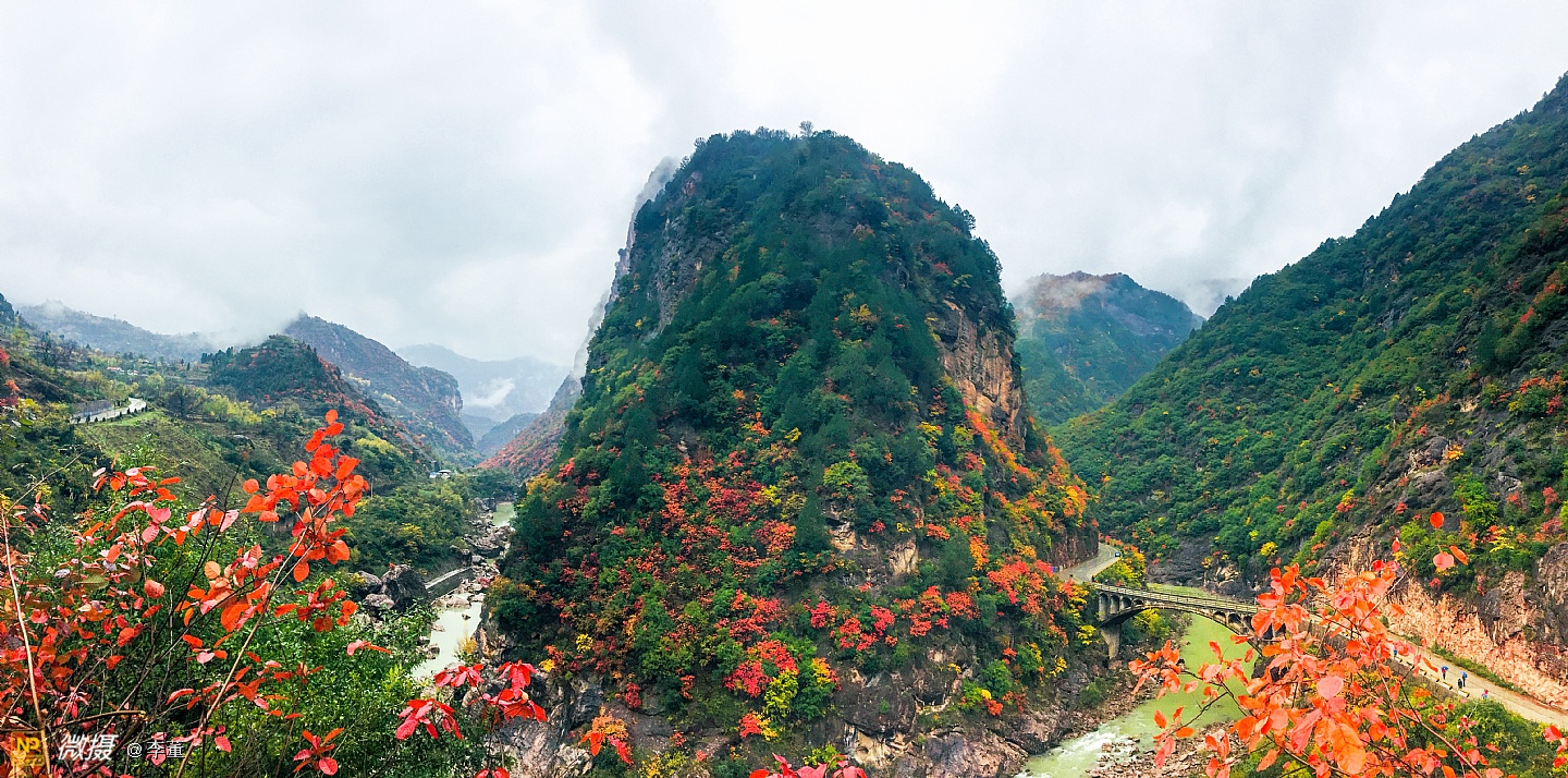 深秋季节的陇南两当,满山遍野都被绚丽的色彩包围着,层林尽染,色彩斑斓,清晨,薄雾还氤氲在淡彩的山间,当走在云屏深处,宁静悠远的乡村小路上,两边的山峦层叠交错,无尽蔓延,溪水随山根蜿蜒而下,轻柔缓淌,宛如一幅多彩水墨画韵味深长。绚丽的色彩,多情的目光和无垠的秋色,着实让人流连忘返。仰天高,俯水清,瞻山间缭绕的雾气,让人不禁感谢大自然的馈礼,陶醉于这美景之中,似乎忘了还在路上行走。