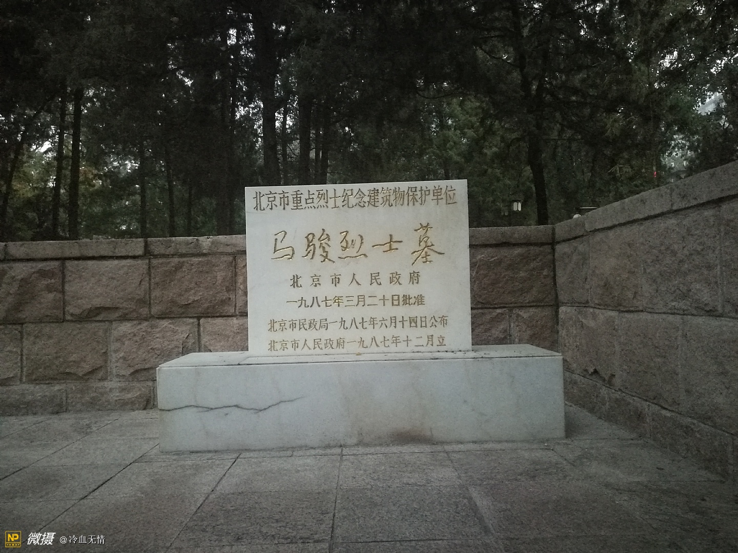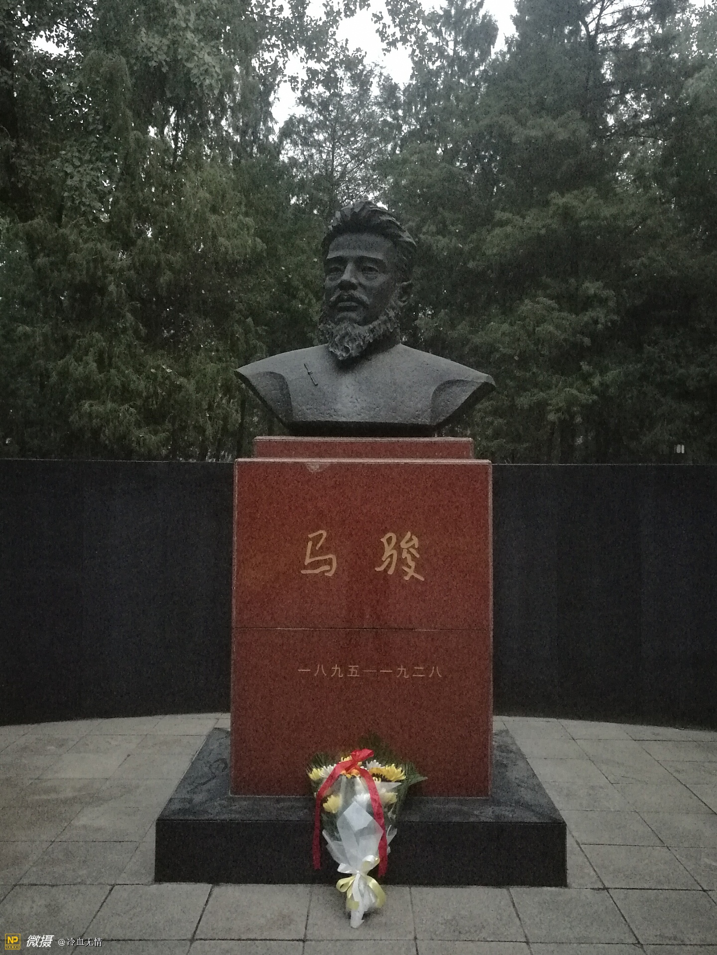 墓体是汉白玉的,这也是邓颖超同志的意见,他说汉白玉可以体现烈士品格的高敬,在这之后,咱们北京市又在这儿树了一个马骏的铜像,建了马骏纪念馆,这样成了名约马骏墓的北京市爱国主义基地。