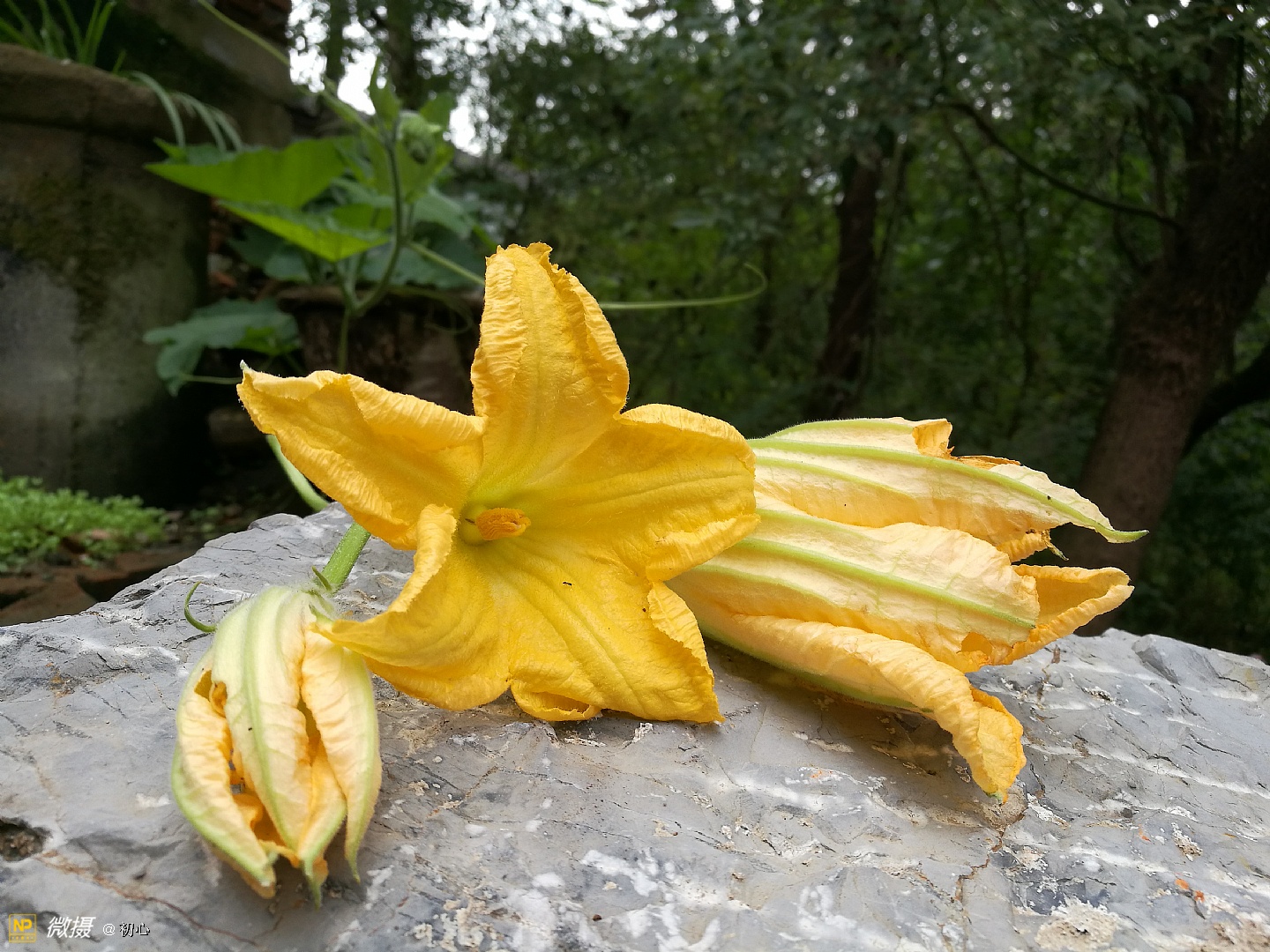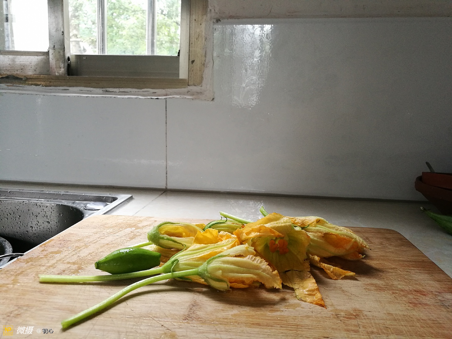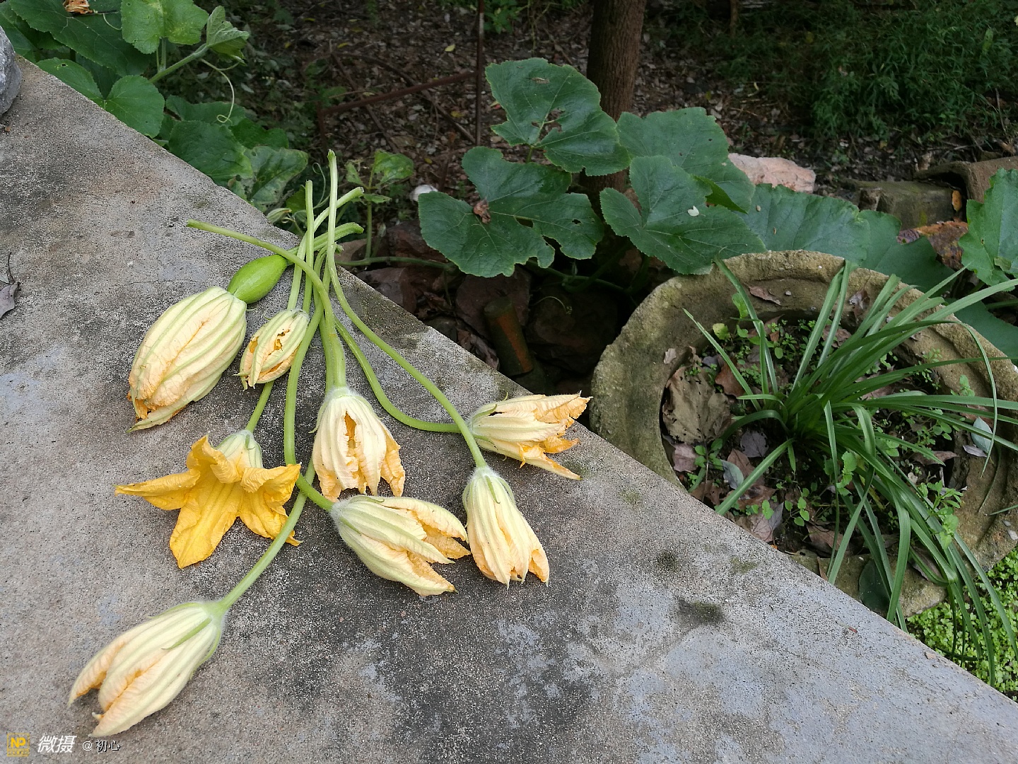 快做中午饭了,采一把南瓜花回来。