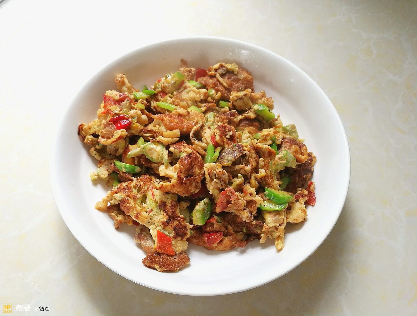 生活在农村也有农村的好,吃菜不花钱还新鲜,摘一把园子里的南瓜花再从鸡窝里拾几个鸡蛋 配上自己种的红辣椒(剁碎腌好的),南瓜花洗净切碎,鸡蛋搅匀放入切碎的南瓜花和碎红辣椒,加适量的盐,倒入烧热了的油锅翻炒至熟装盘。今天中午吃的一道菜,美味新鲜不花钱。