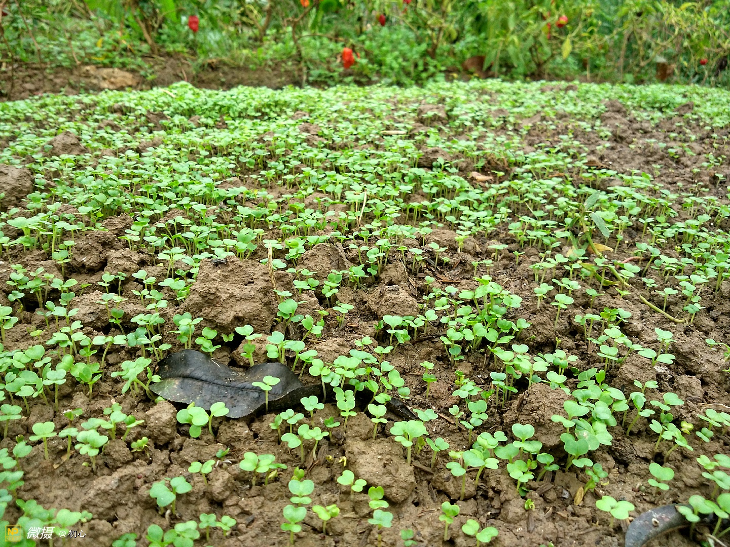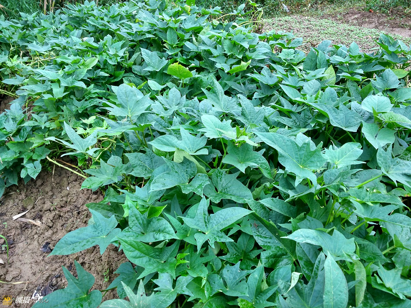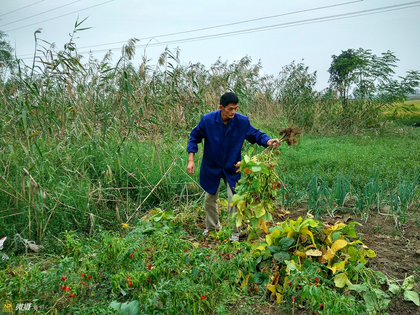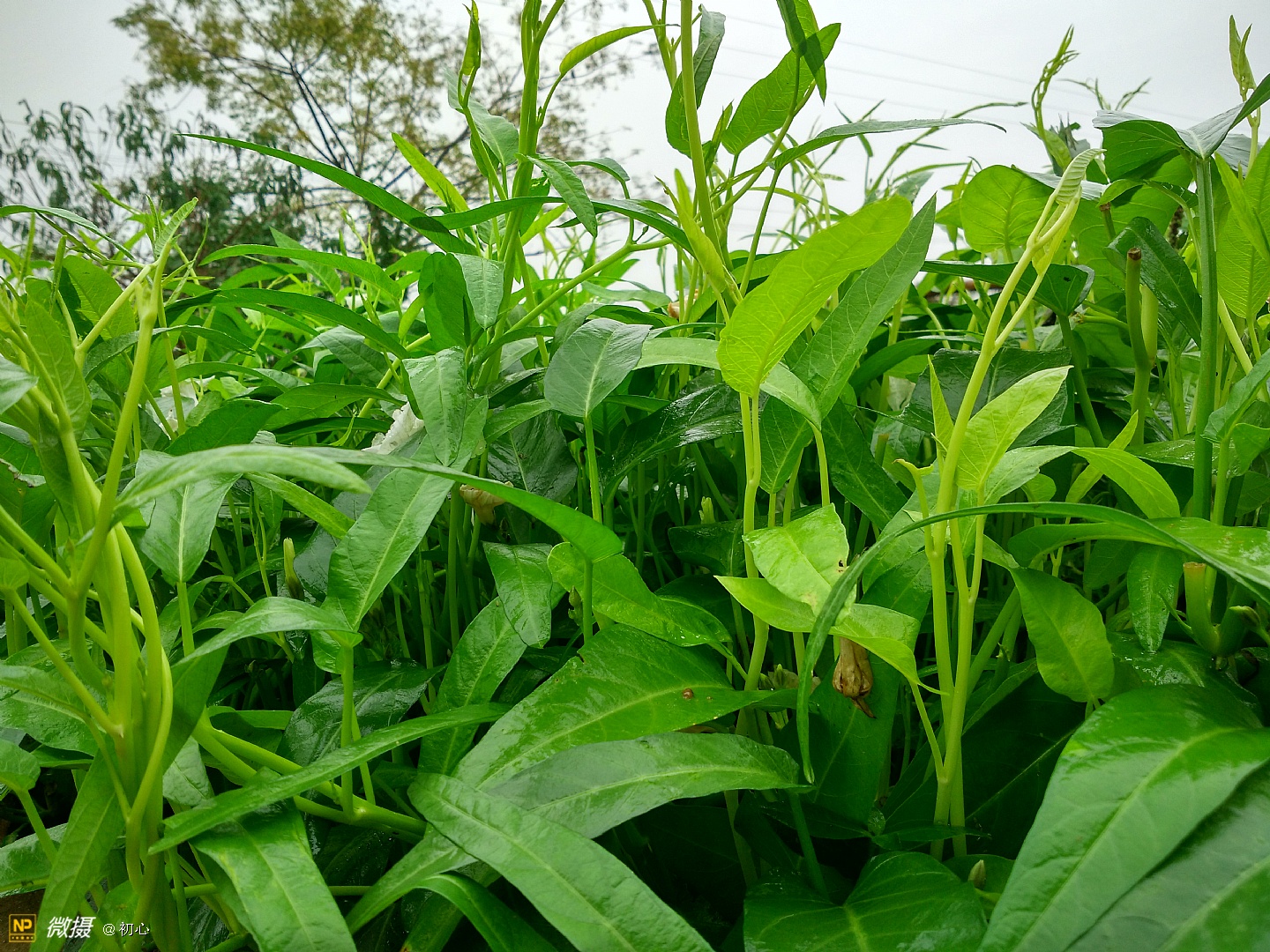 菜地边角种的一颗扁豆,扁豆藤攀上了树,上面挂了好多扁豆够不着。