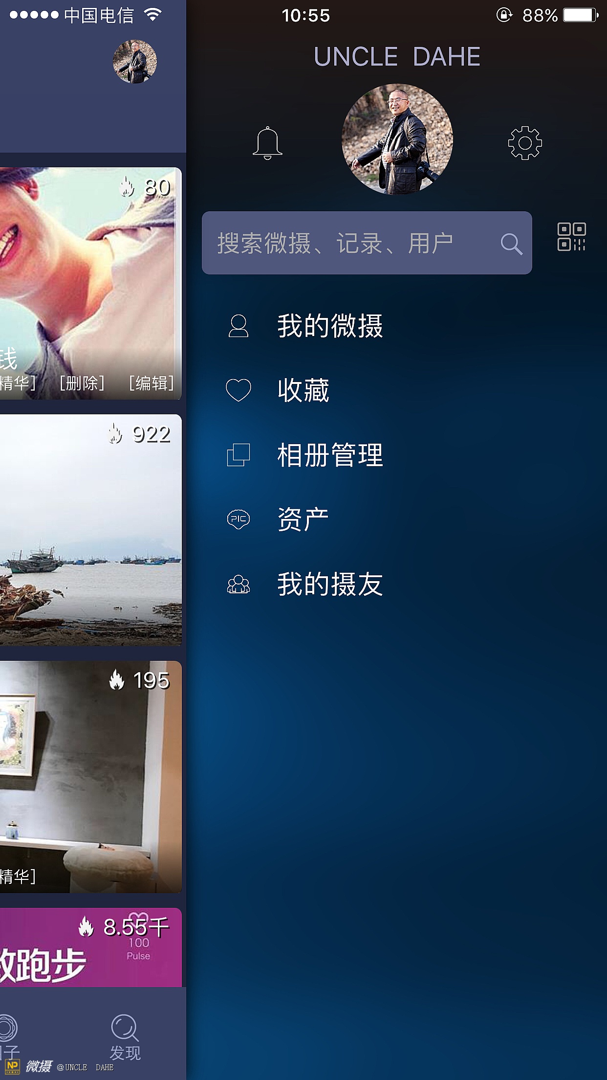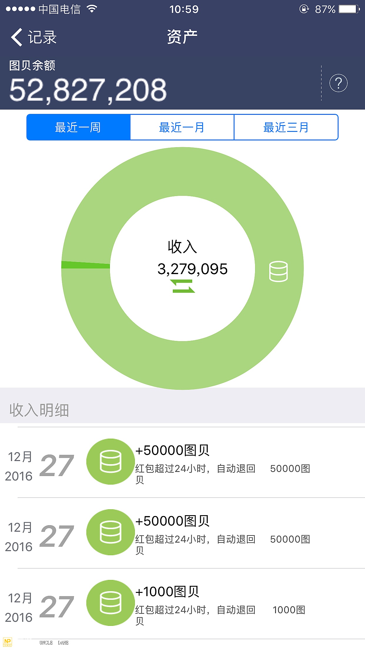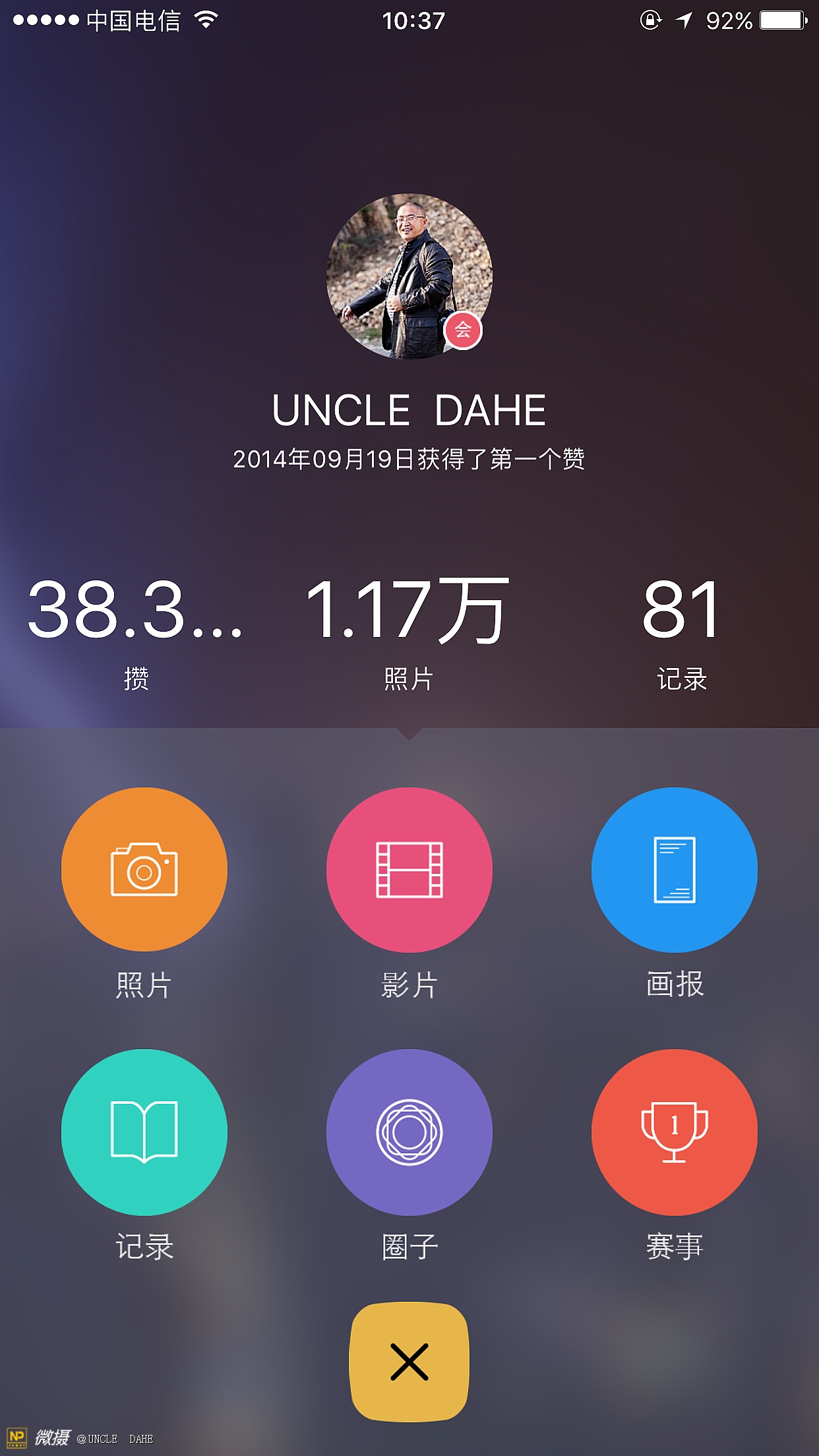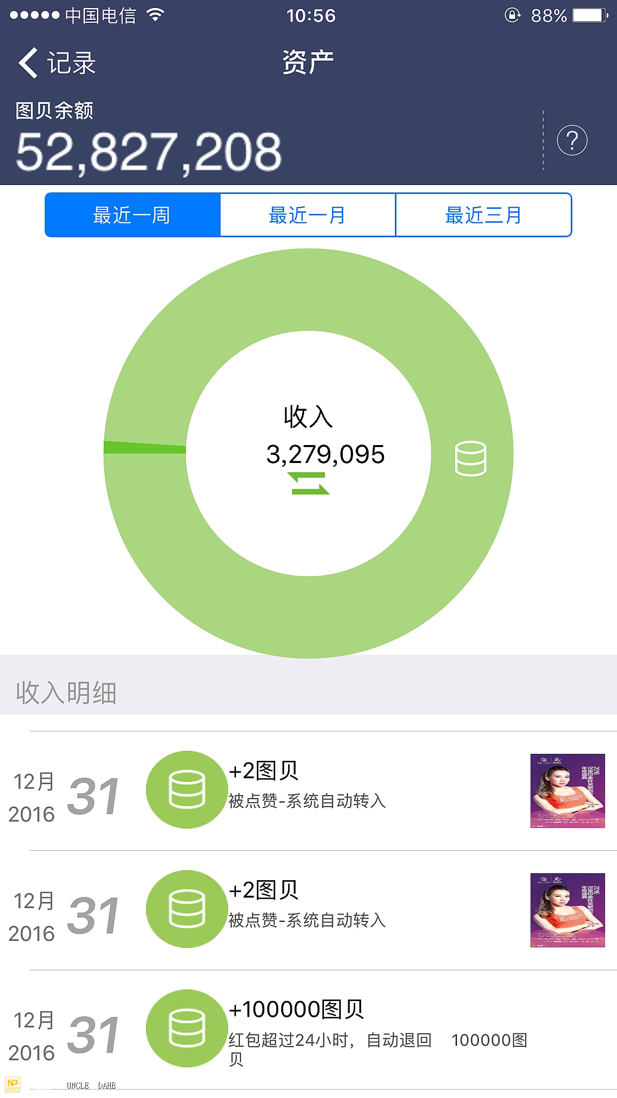 上传照片,点赞、评论、分享……点击右上角的个人头像,在这个个人管理中心查看自己的每日资产。