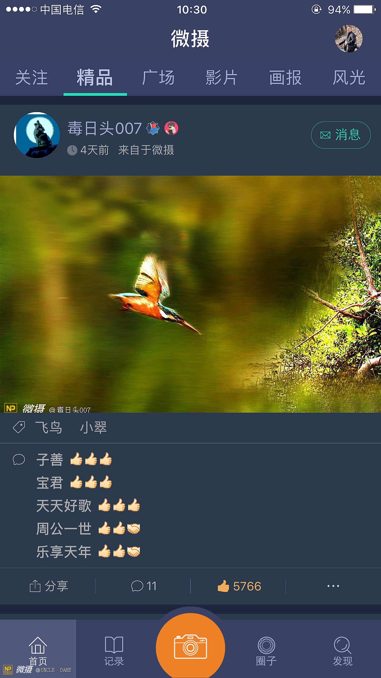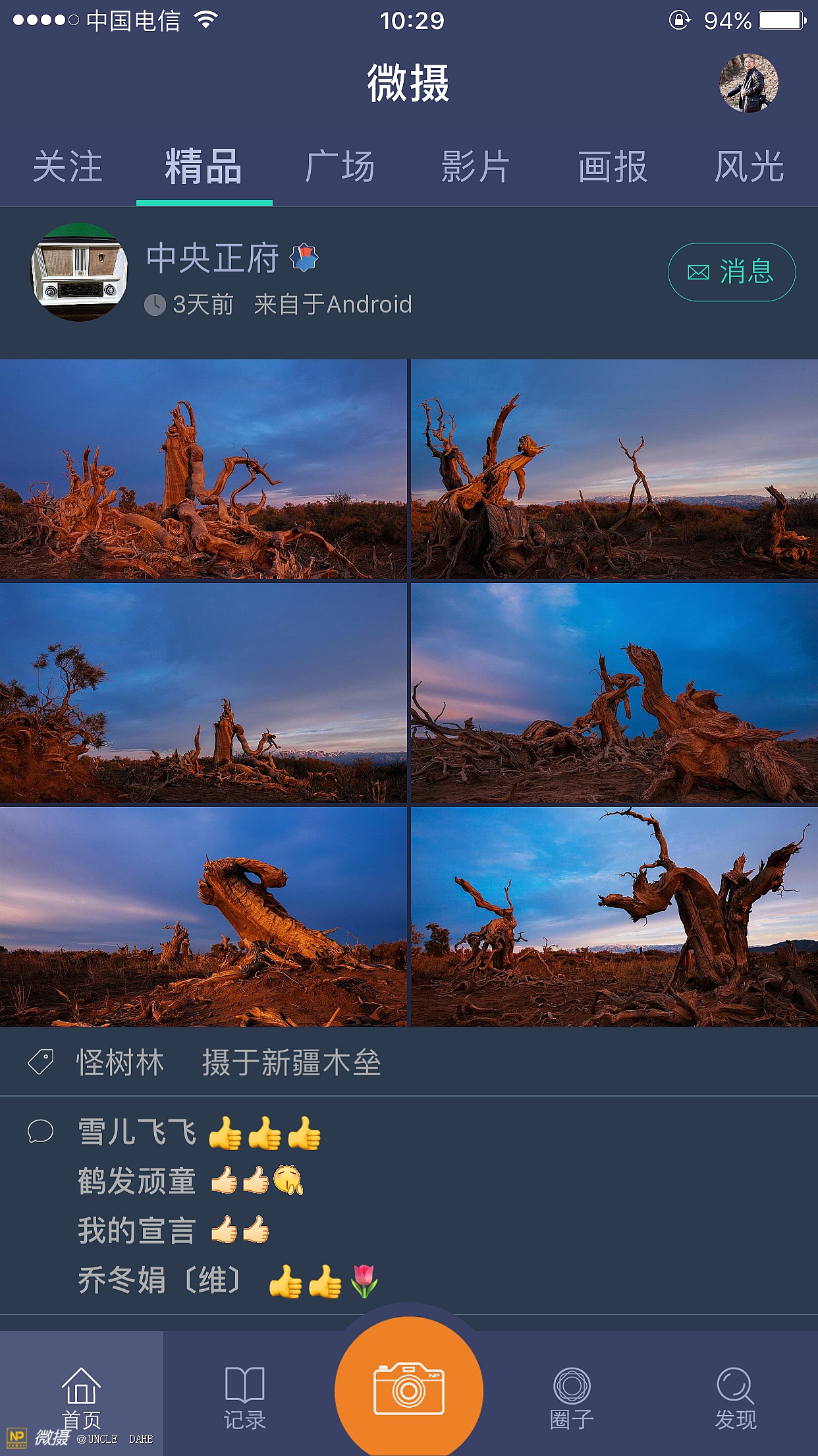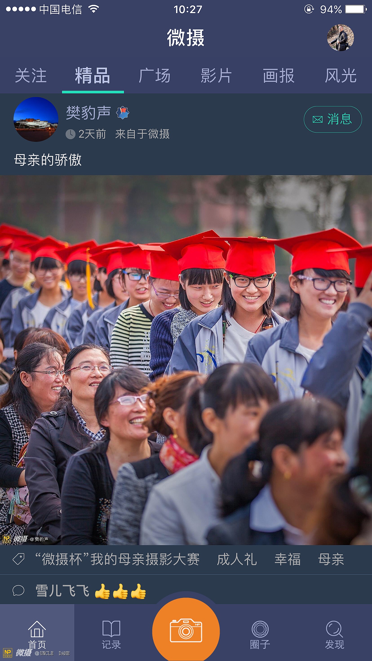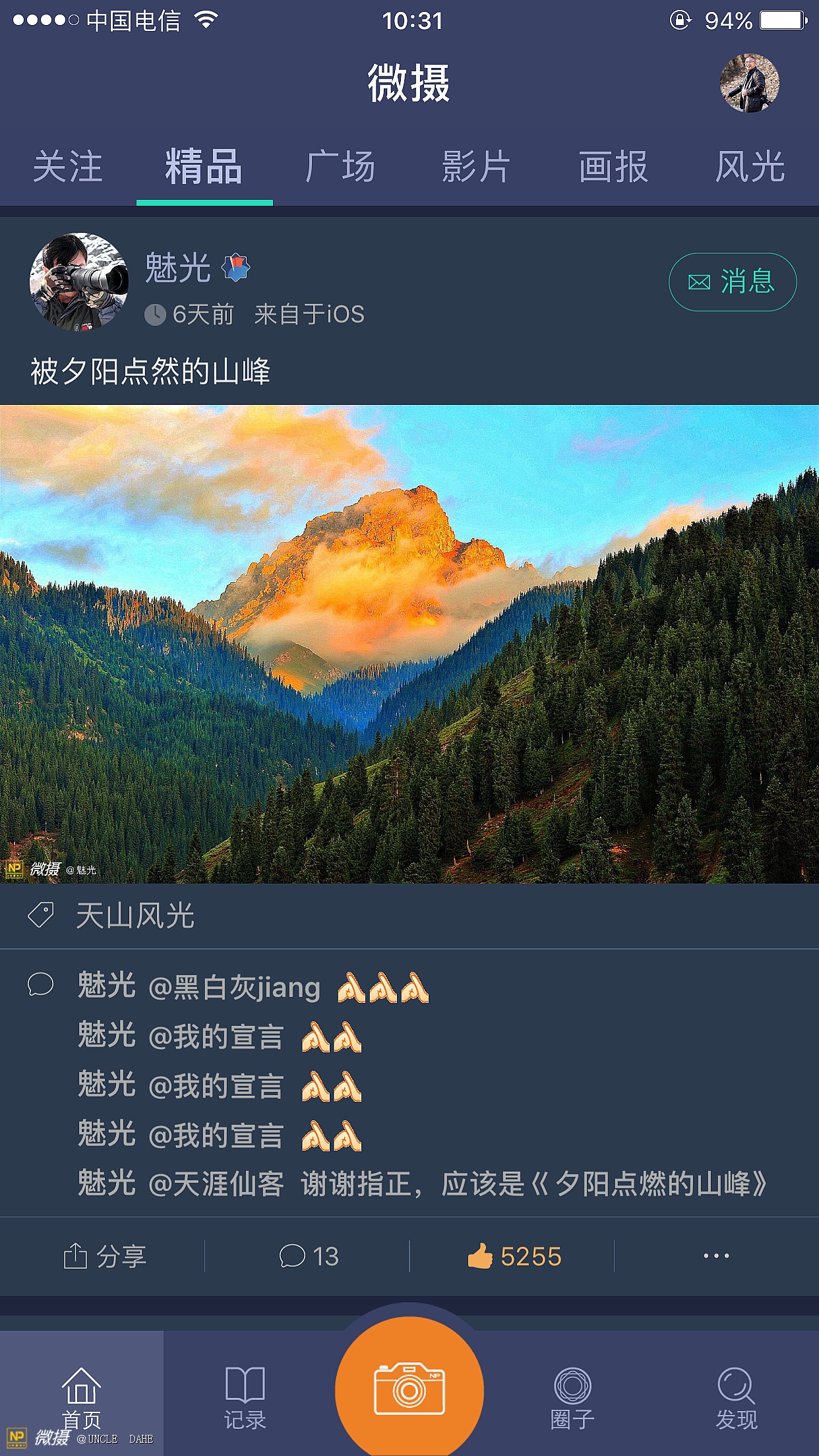 上传照片,点赞、评论、分享……点击右上角的个人头像,在这个个人管理中心查看自己的每日资产。