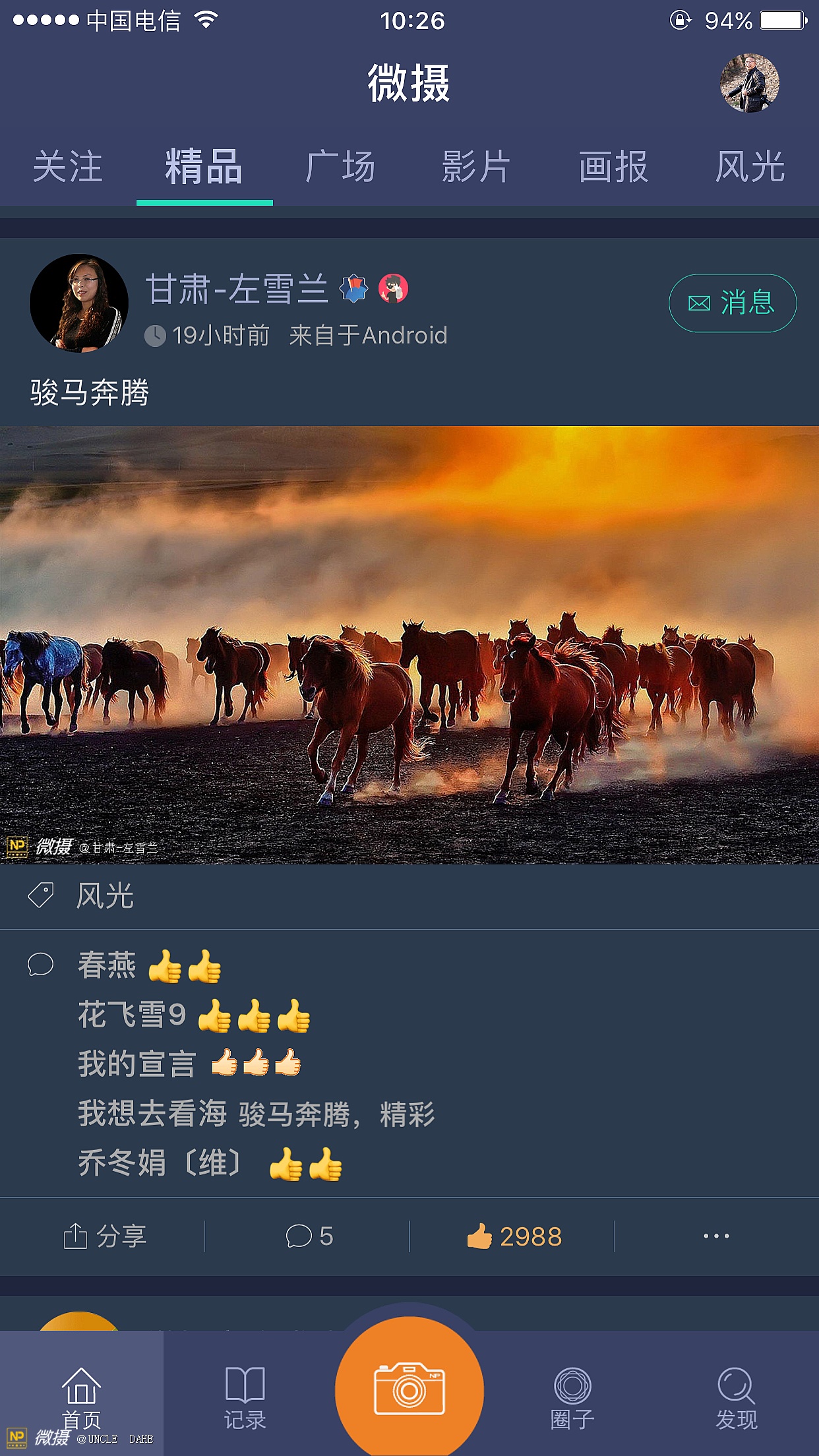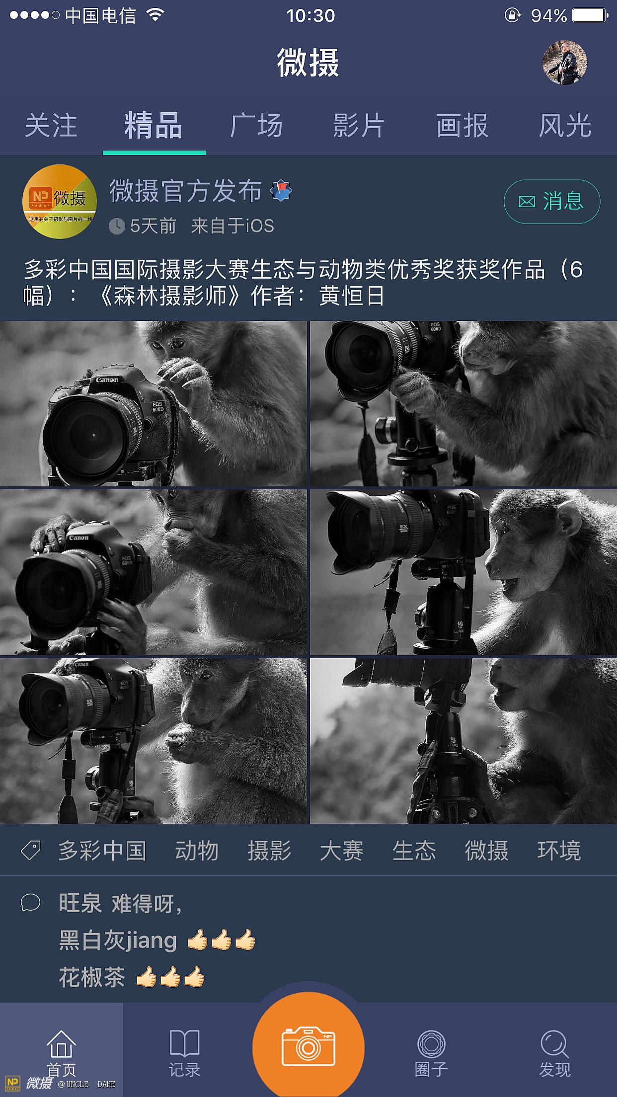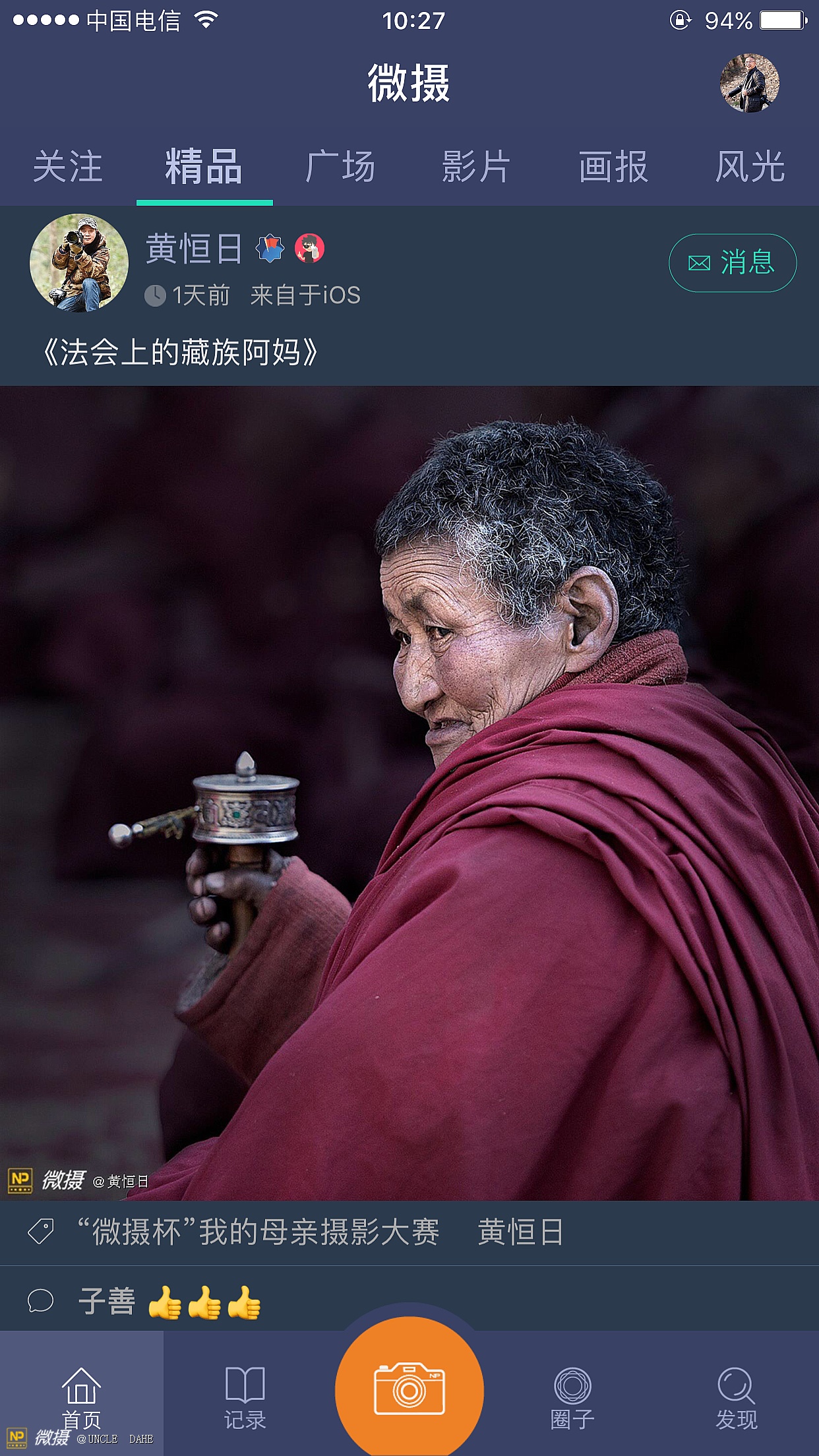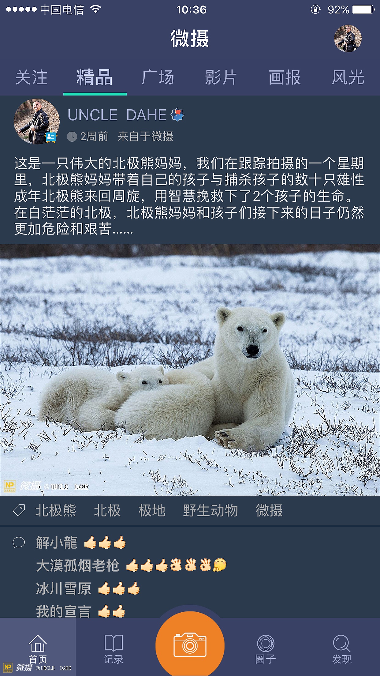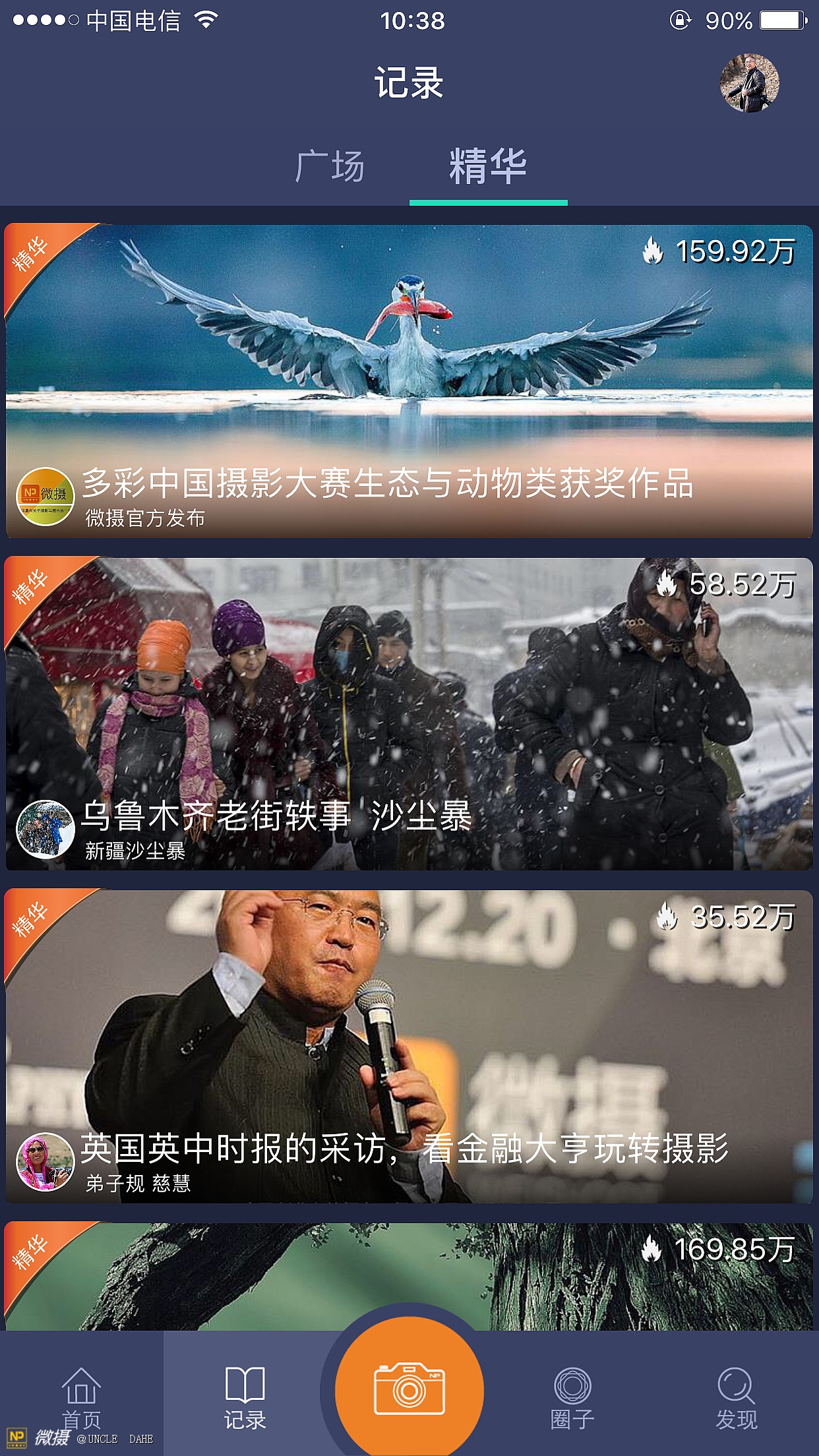 上传照片,点赞、评论、分享……点击右上角的个人头像,在这个个人管理中心查看自己的每日资产。