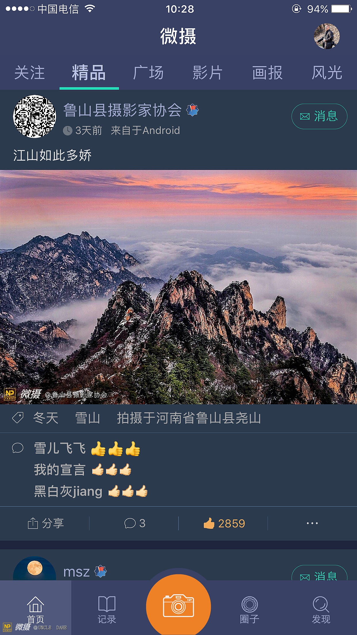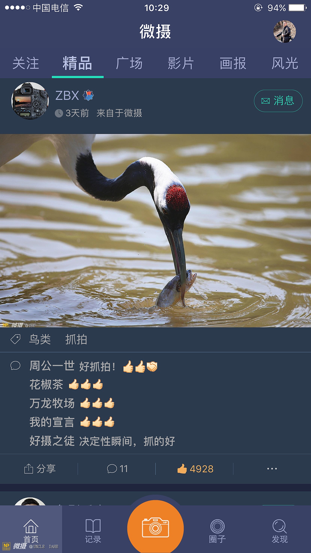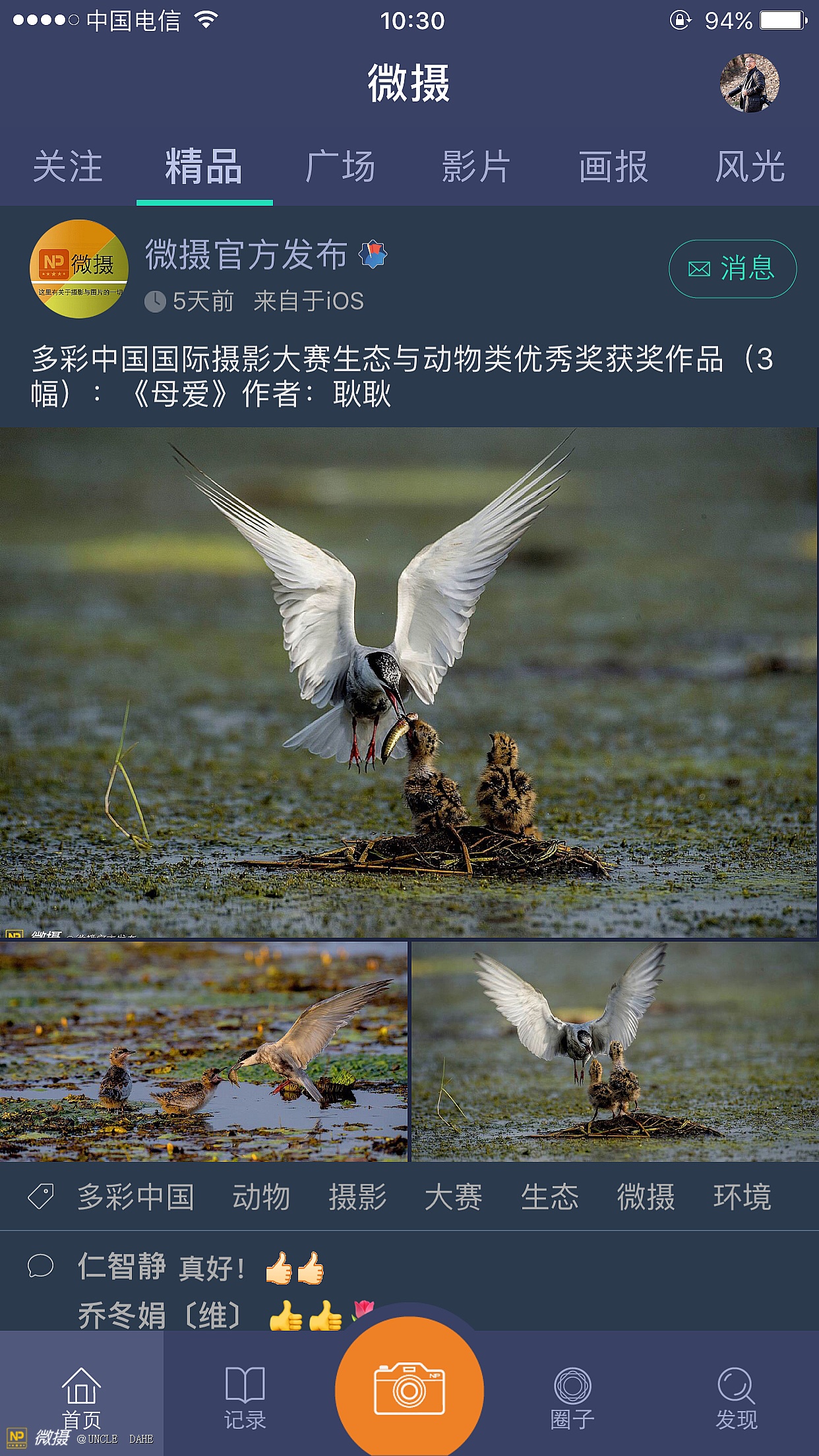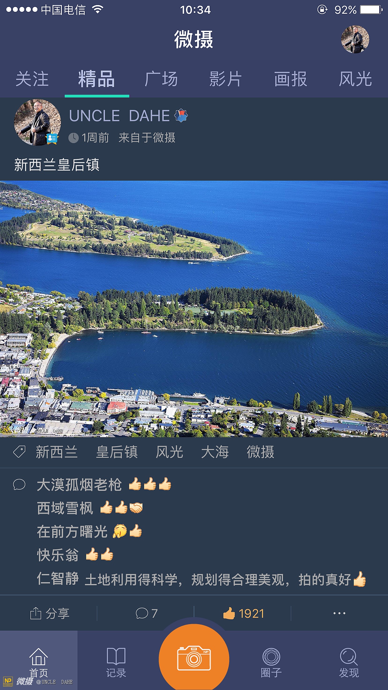 上传照片,点赞、评论、分享……点击右上角的个人头像,在这个个人管理中心查看自己的每日资产。