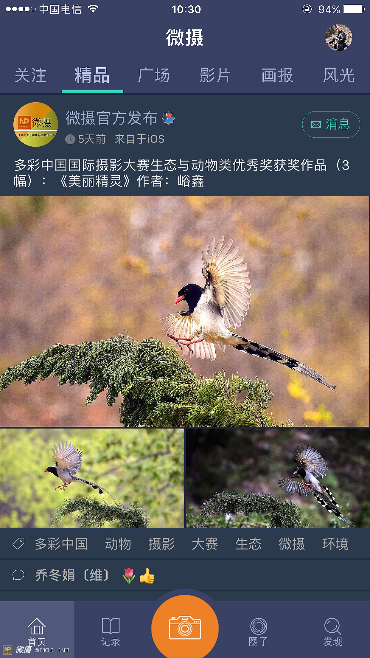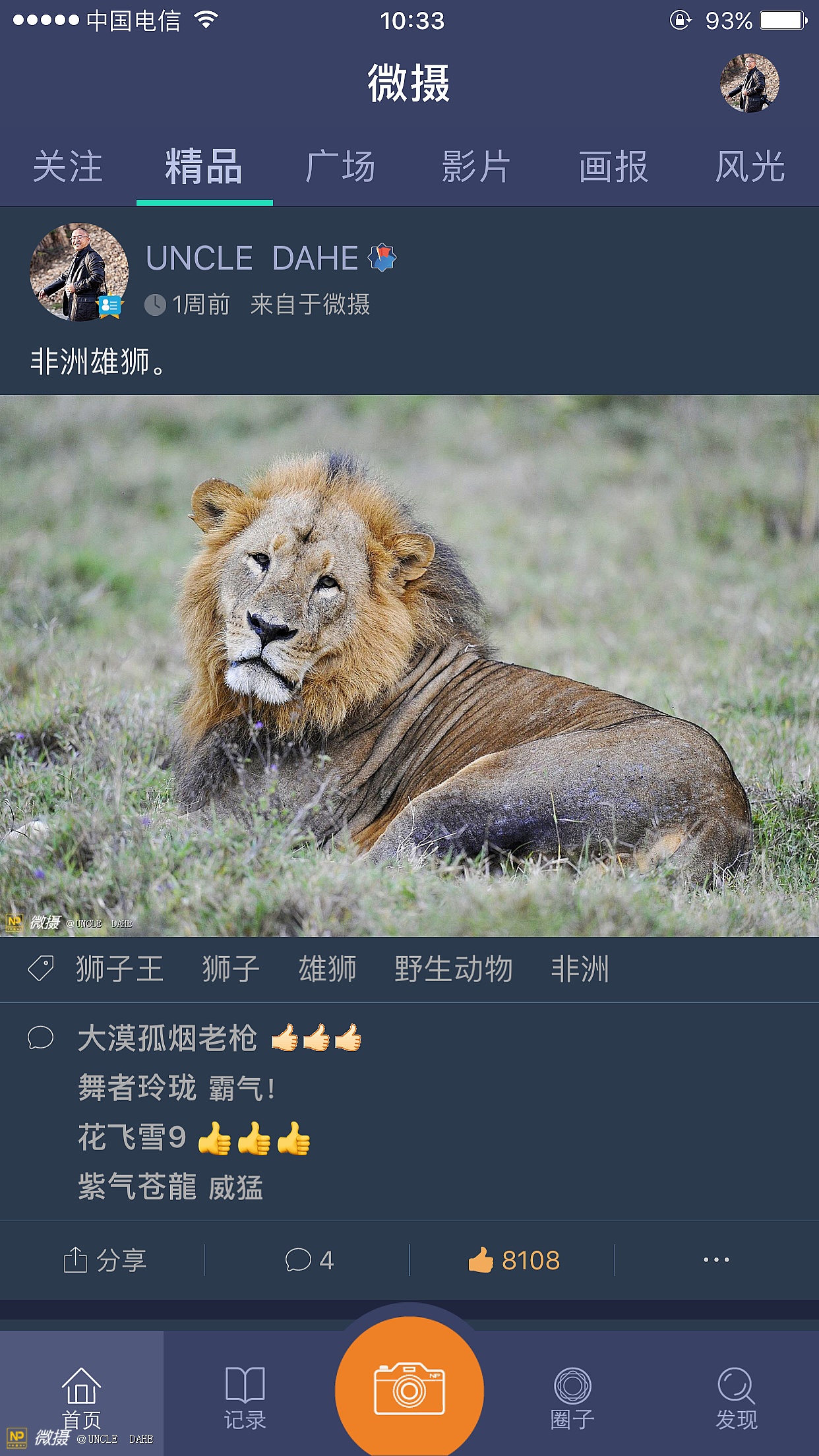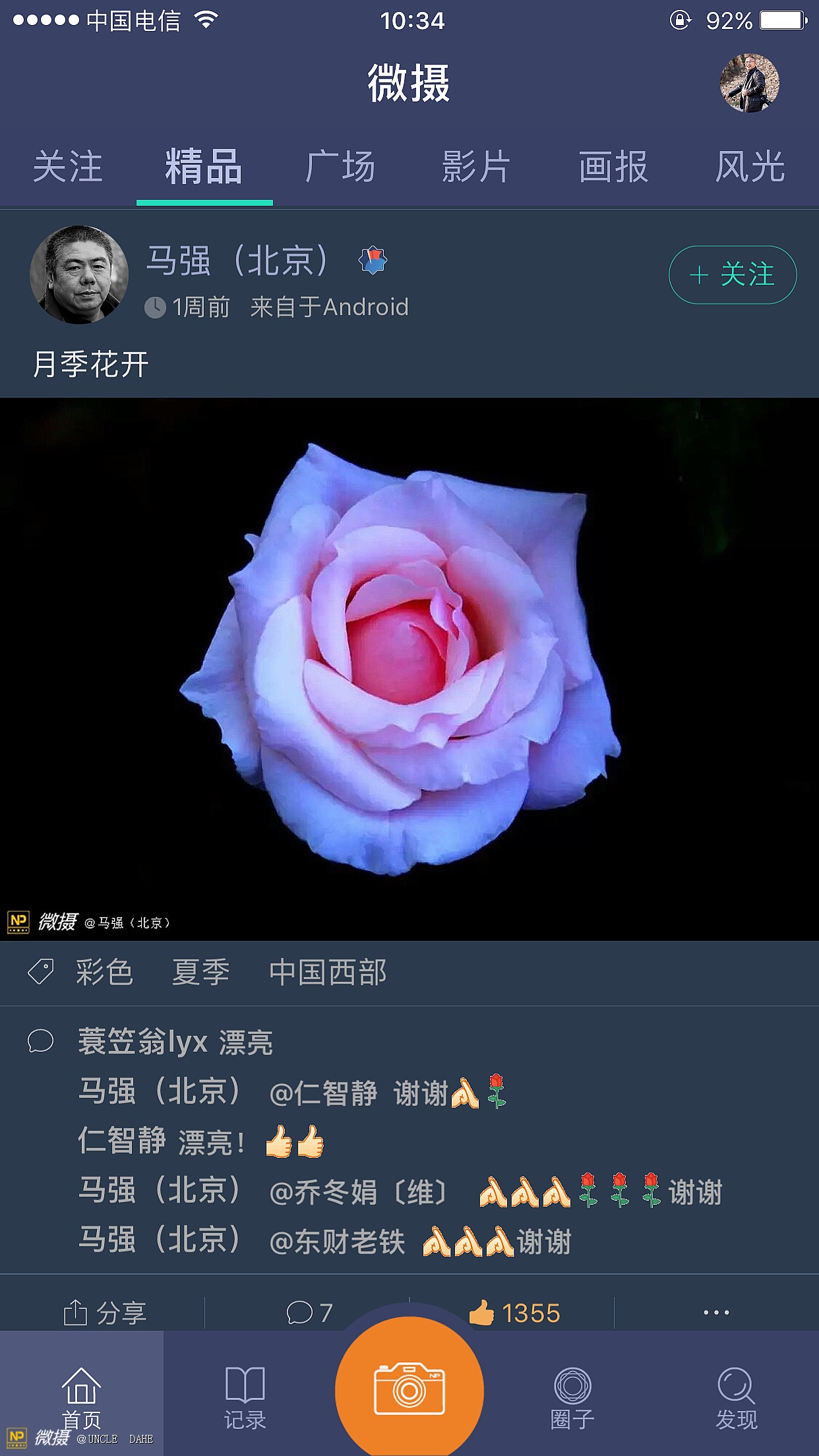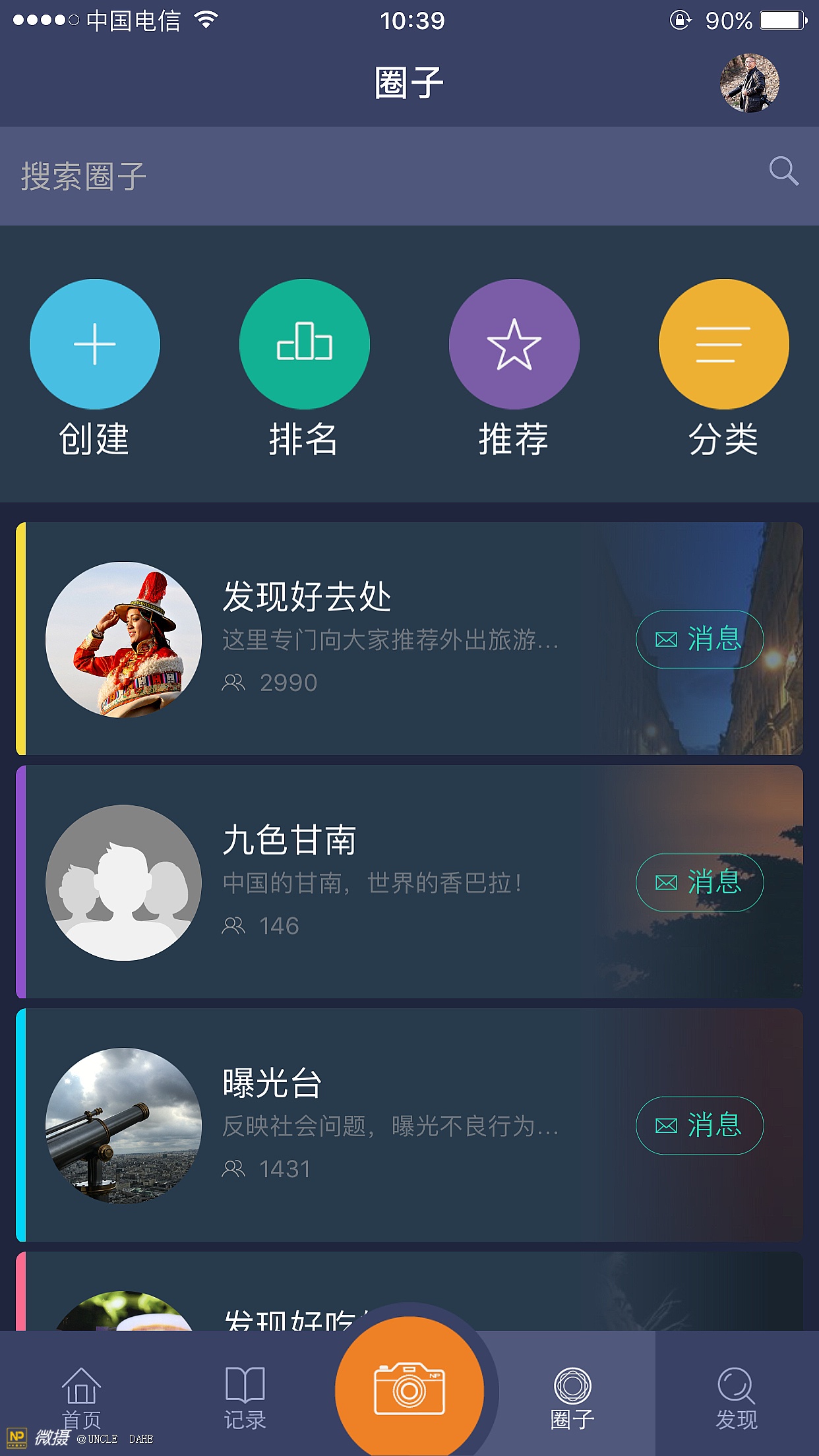 上传照片,点赞、评论、分享……点击右上角的个人头像,在这个个人管理中心查看自己的每日资产。