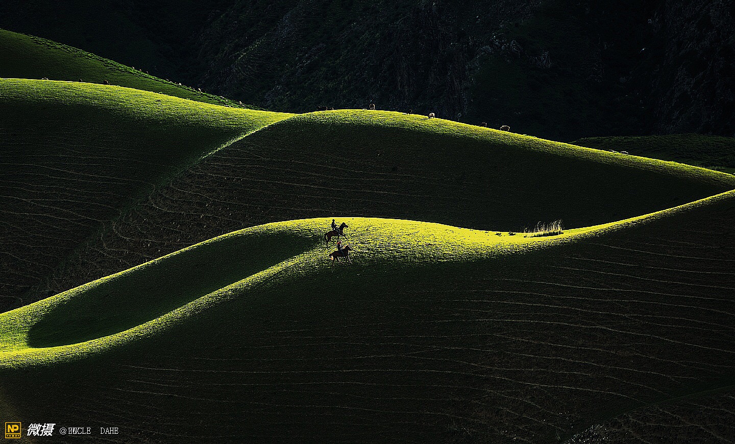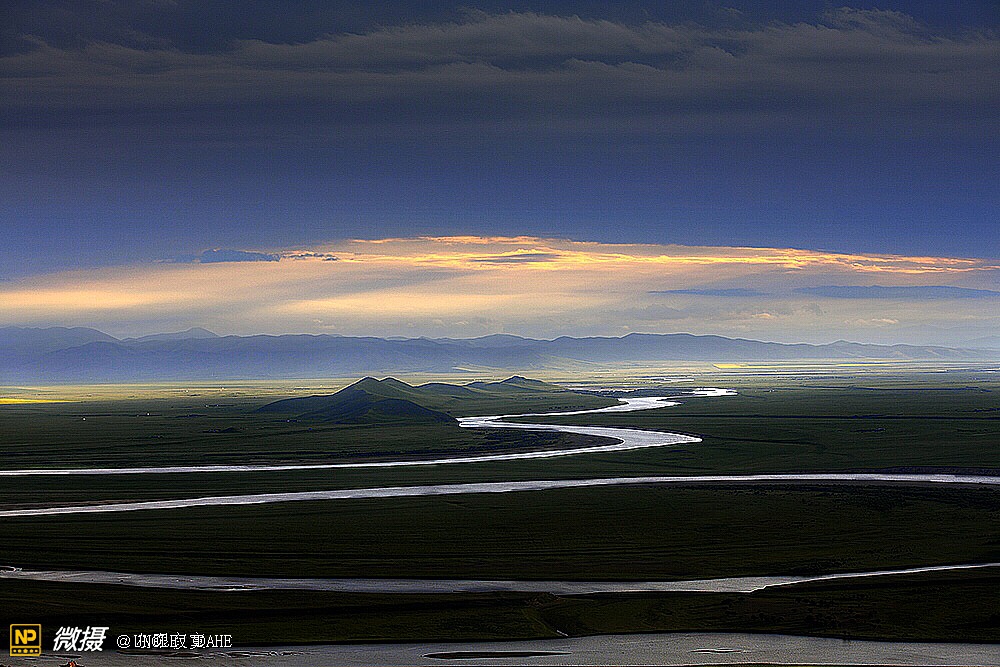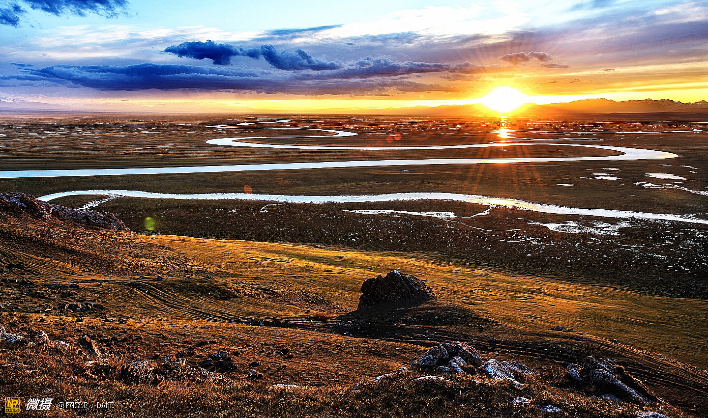 《巴音布鲁克草原九曲十八弯夕阳1》 作者:影由心生