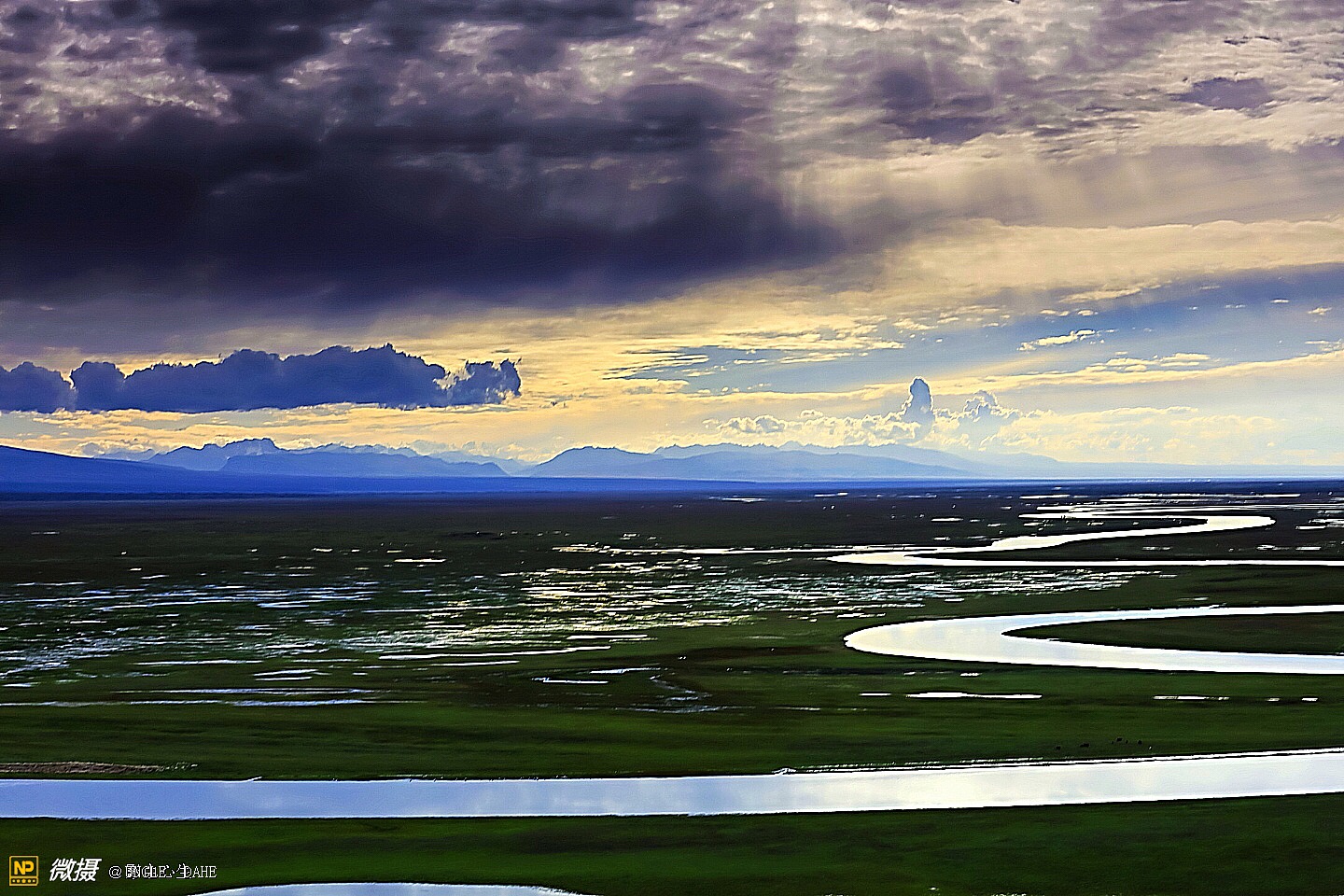 《巴音布鲁克草原九曲十八弯夕阳3》 作者:影由心生